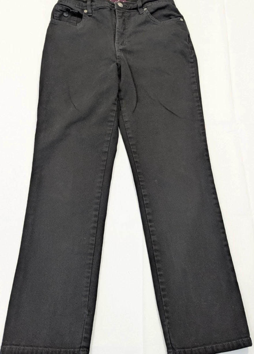 Gloria Vanderbilt Women's Black Jeans Straight Leg Size 6 Average Stretch Very good pre-owned condition. No holes, tears, or stains. Freshly washed before listing. Plenty of wear left in this item. See pictures for measurements. Refer to pictures for additional details on condition, style, and color. Will be packed with care; smoke free home.