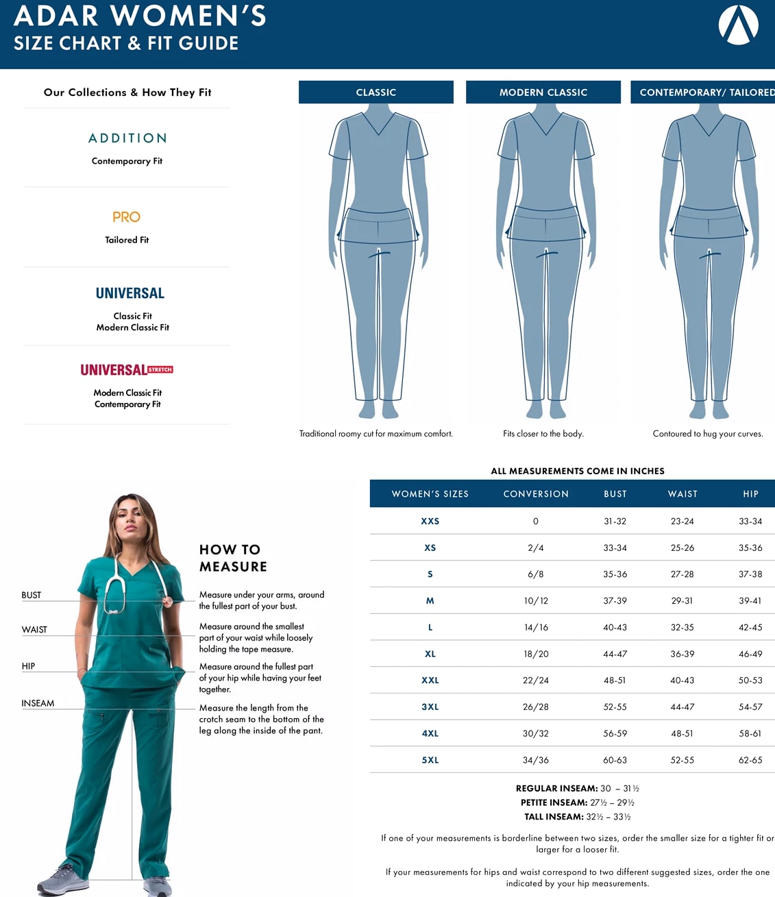 Mens Womens Kids Medical Uniforms Jewelry Adar Medical Uniform Low Rise Multi Pocket Drawstring Straight Leg Scrub Pants Item Description About Us: Adar has been in the Medical Uniforms industry since 1971. We have over 45 years of experience in providing top quality Medical Uniforms to medical professionals worldwide with a wide variety of fashionable, professional & high performance medical work wear. Our uniforms are known for their exceptional quality, comfort & stylish designs. Specifications: 2 Large Front Patch Pockets 1 Cargo Pocket 1 Scissor Pocket Jump Ring Detail on Left Leg 5 Belt Loops & Double Needle Top Stitching Fabric Content: 65% Polyester 35% Cotton Durable Poplin Accurate Size Chart: Please refer to our images for an accurate size chart. FIT & STYLE: Classic Fit, Low-Rise, Straight Leg Pants, Inseam 31". POCKETS: 2 Large Front Patch Pockets, 1 Cargo Pocket & 1 Scissors Pocket. FEATURES: These Scrub Pants Come With 5 Belt Loops & Double Needle Top Stitching. PROFESSIONAL: These Scrub Pants Are Perfect for any Nurse, Doctor & More! MATERIAL: Sturdy Material is Ideal for any Medical Work Environment. Size Chart Welcome to our online retail store, where we bring to you a wide range of quality products and affordable Uniforms for daily use. we are well known for the quality of our products and incredible prices Bringing to you a wide range of quality Uniforms with a large variety of colors and styles to suit everyones taste Returns We understand that not every purchase is a good one for every customer. We accept returns under the condition that the item must be in its complete and original packaging, folded properly, and unused with tags intact. Be sure item arrives with tags within 30 days of purchase date. Returns after 30 days will not be accepted