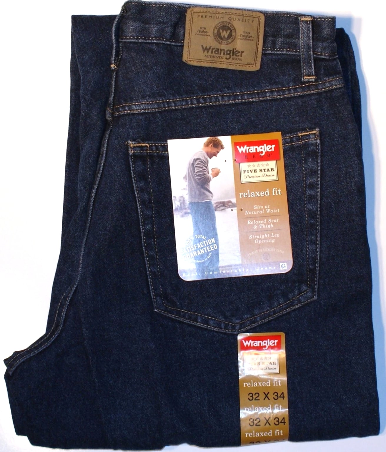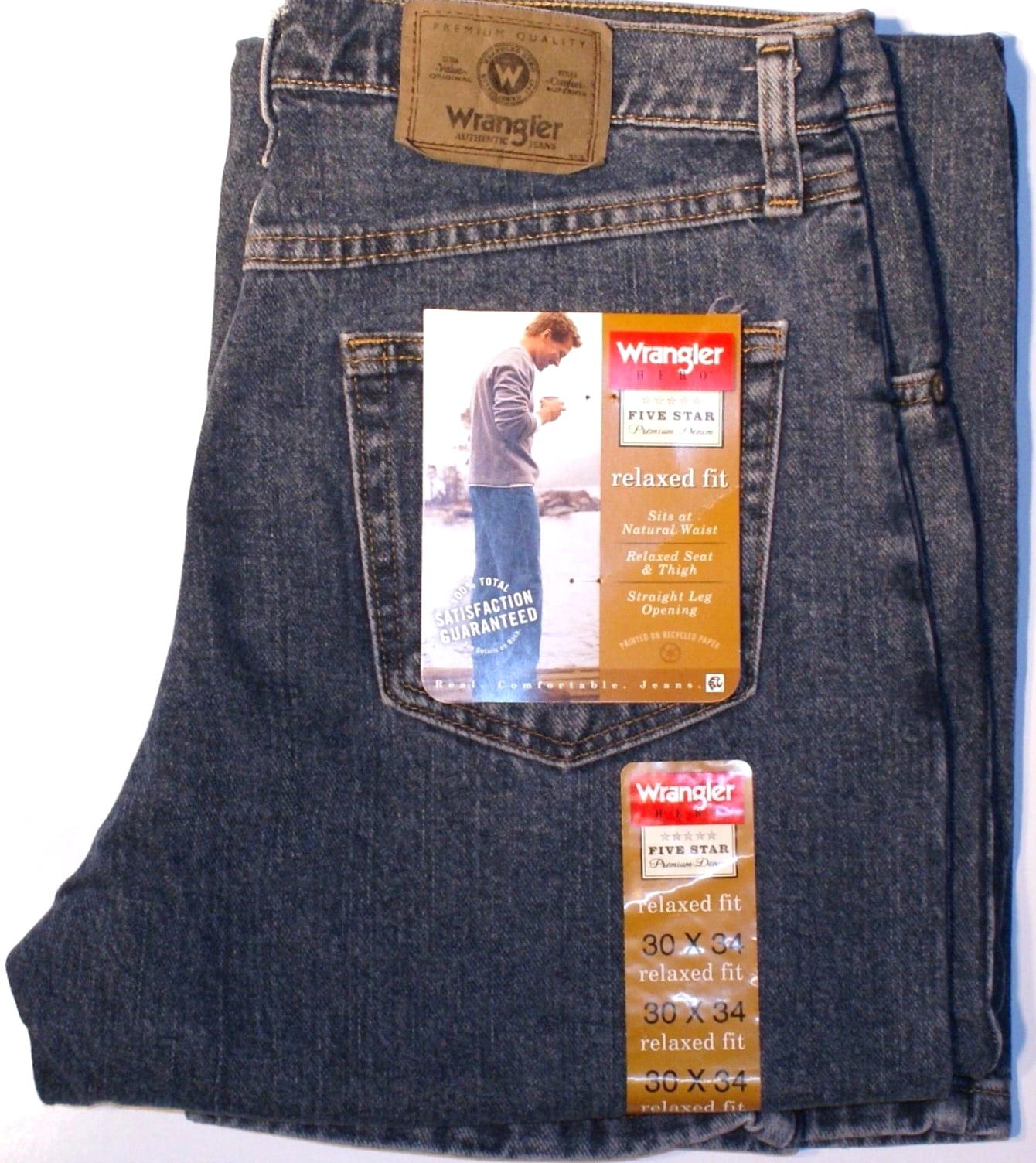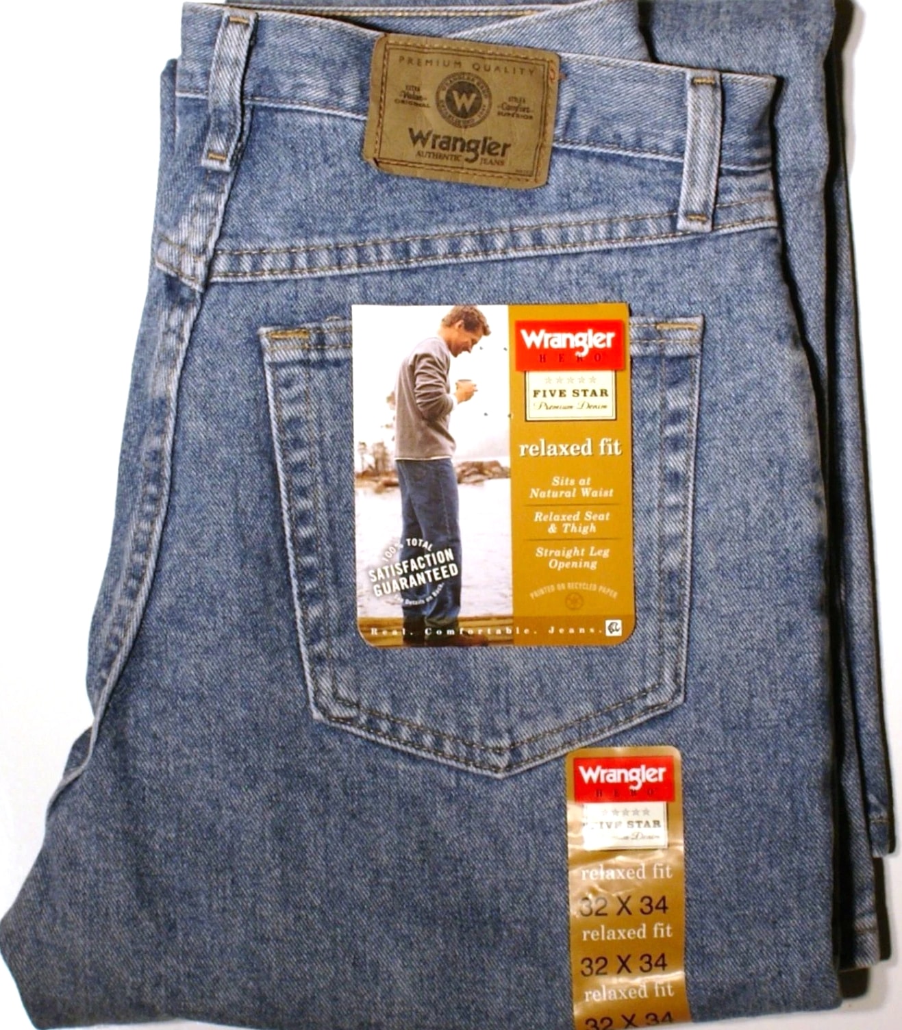 This listing is for one pair of New with Tags Wrangler Relaxed Fit Jeans in Big and Tall Sizes. Please choose your size and color. 100% Cotton denim Relaxed fit through the seat and thigh 5-pocket styling Belt loops 1-button closure with zipper fly Waist - sits at natural waist Seat - relaxed Thigh - relaxed Leg - straight Zip fly, 100% cotton denim Colors available: Light Stone, Indigo, Vintage Rinse, Black International Buyers – Please Note: Import duties, taxes, and charges are not included in the item price or shipping cost. These charges are the buyer's responsibility. Please check with your country's customs office to determine what these additional costs will be prior to bidding or buying.