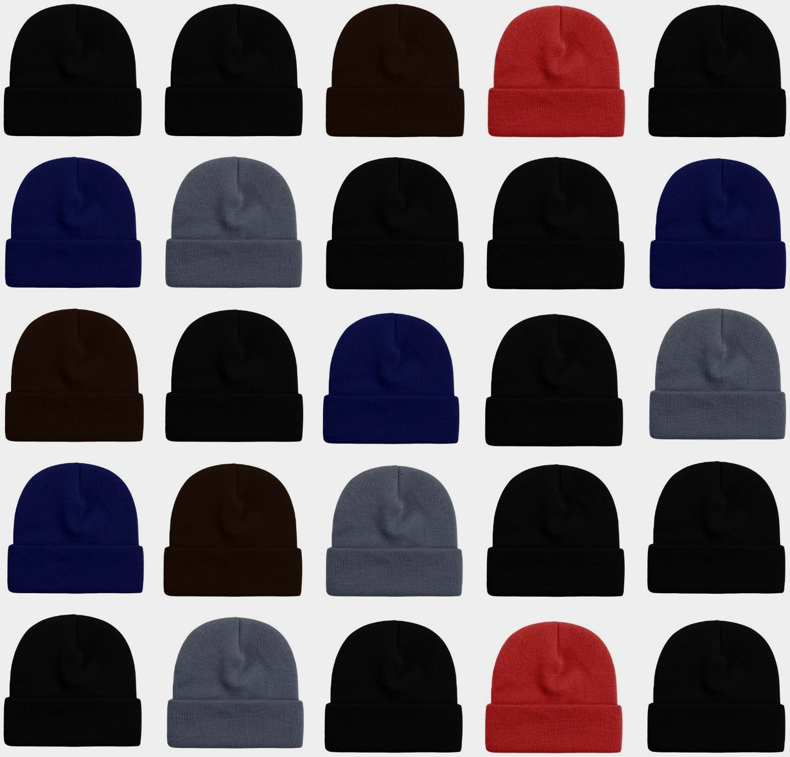 25 PACK BULK WINTER BEANIES (UNISEX) Get ready for ultimate winter coziness with our bundle of 25 winter beanies! These cuffed beanies are crafted to provide you and your loved ones with quality warmth throughout the chilly winter season. Not only are our beanies stylish, but they are designed for optimal comfort and thermal heat insulation. Experience superior thermal heat retention thanks to the extra thickness of the knit. This ensures that your body heat stays locked in, giving you a much-needed shield against the cold, even in the most severe winter conditions—all without compromising on comfort. Our acrylic toboggan skull caps are made from a high-quality acrylic blend, guaranteeing not only a perfect fit but also supreme comfort and durability. The stretchy design conforms to your head, making it a unisex one-size-fits-all solution. The cuffed design allows you to pull the beanie down for added coverage, protecting your ears and forehead. Stay comfortable and warm during your winter outdoor adventures with this essential skully cap. Perfect for a variety of activities such as snowboarding, ice skating, running, and cycling, it offers unparalleled warmth. Trust this hat to keep you snug and comfortable when the temperature drops, ensuring that your cold-weather outings are both enjoyable and safe. Beyond personal warmth, these winter caps make the perfect gift package. Ideal for gifts and charitable contributions, they can support disaster relief efforts, aid those in need, contribute to non-profit organizations, and be part of community outreach projects. Join us in making a positive impact on the lives of others.