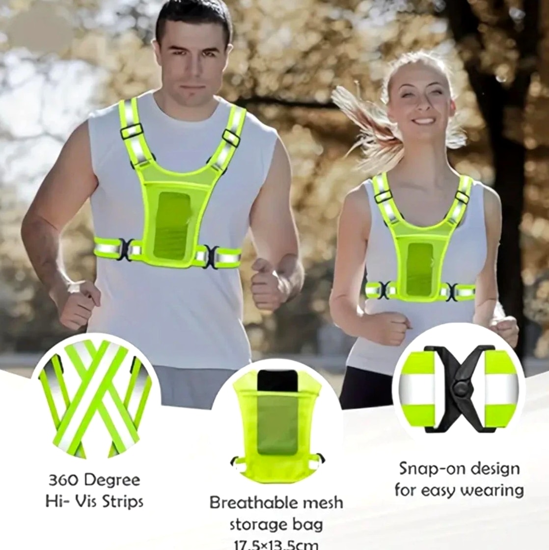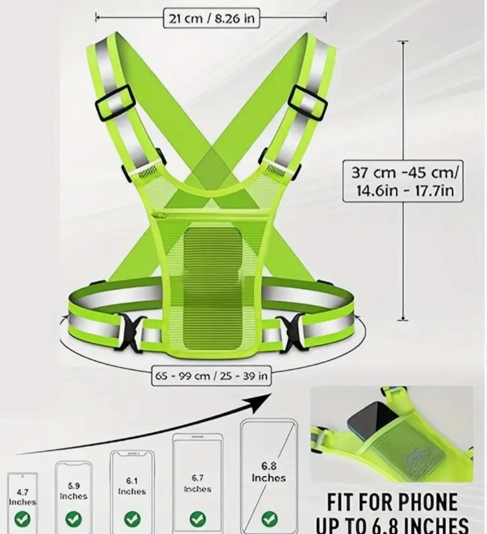 2-Pack Reflective Running Vest with Bracelets and Phone Holder Safety Gear