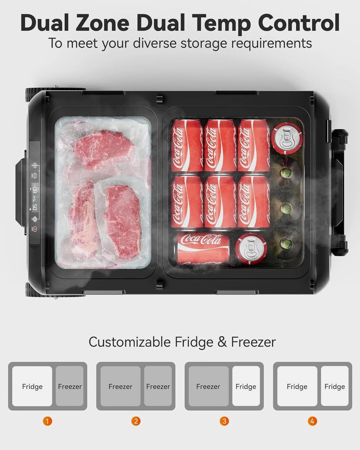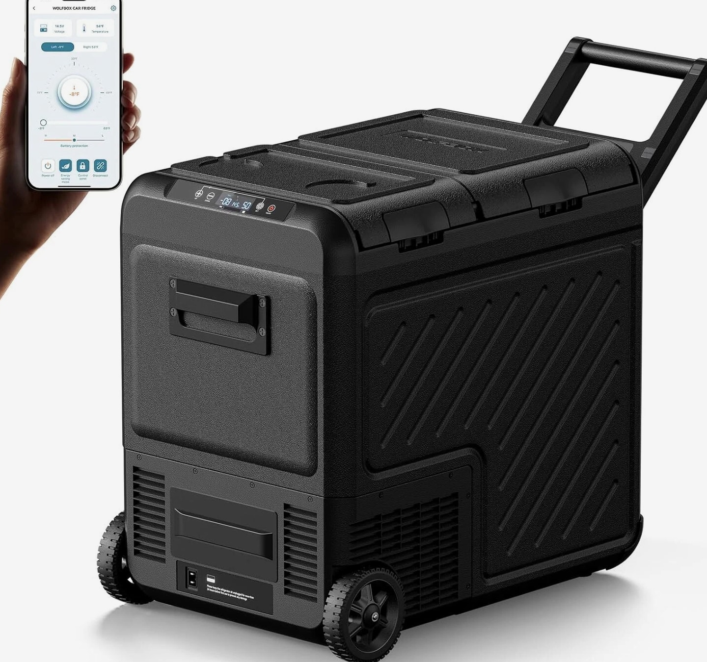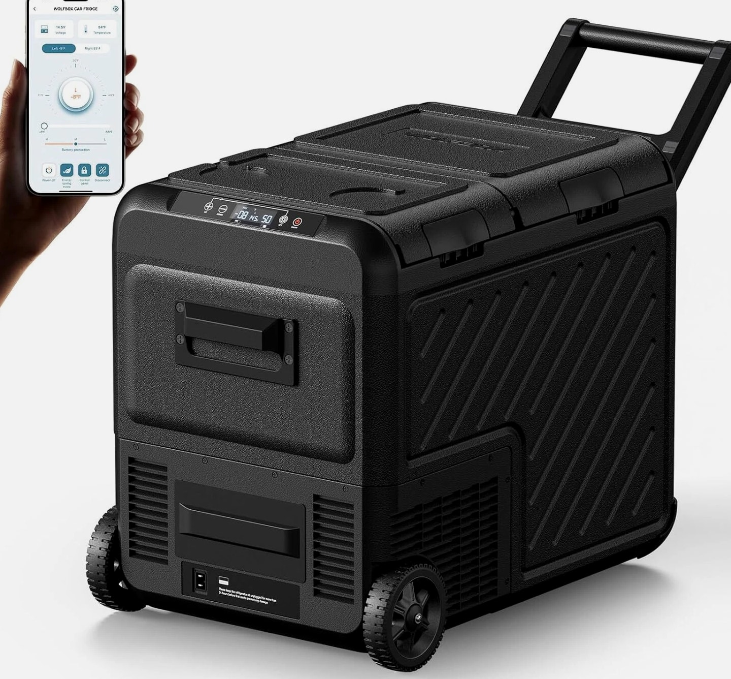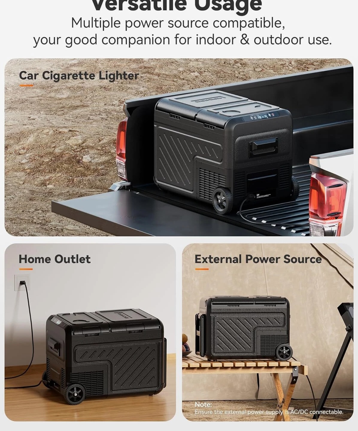 12V portable refrigerator offering advanced cooling technology for vehicle and RV use. Featuring adjustable temperature controls and smartphone app compatibility for remote monitoring. Key Features: - Multiple capacity options: 39, 48, or 58 Quart sizes available - 12 Volt DC power compatible with trucks, cars, and RVs - Wide temperature range for both refrigeration and freezing - APP control functionality for convenient remote access - Durable construction suitable for camping and travel - Multiple compartment options for organized storage - Energy-efficient operation Ideal for road trips, camping expeditions, tailgating, and long-haul transportation. Maintains consistent cooling performance in various driving conditions.