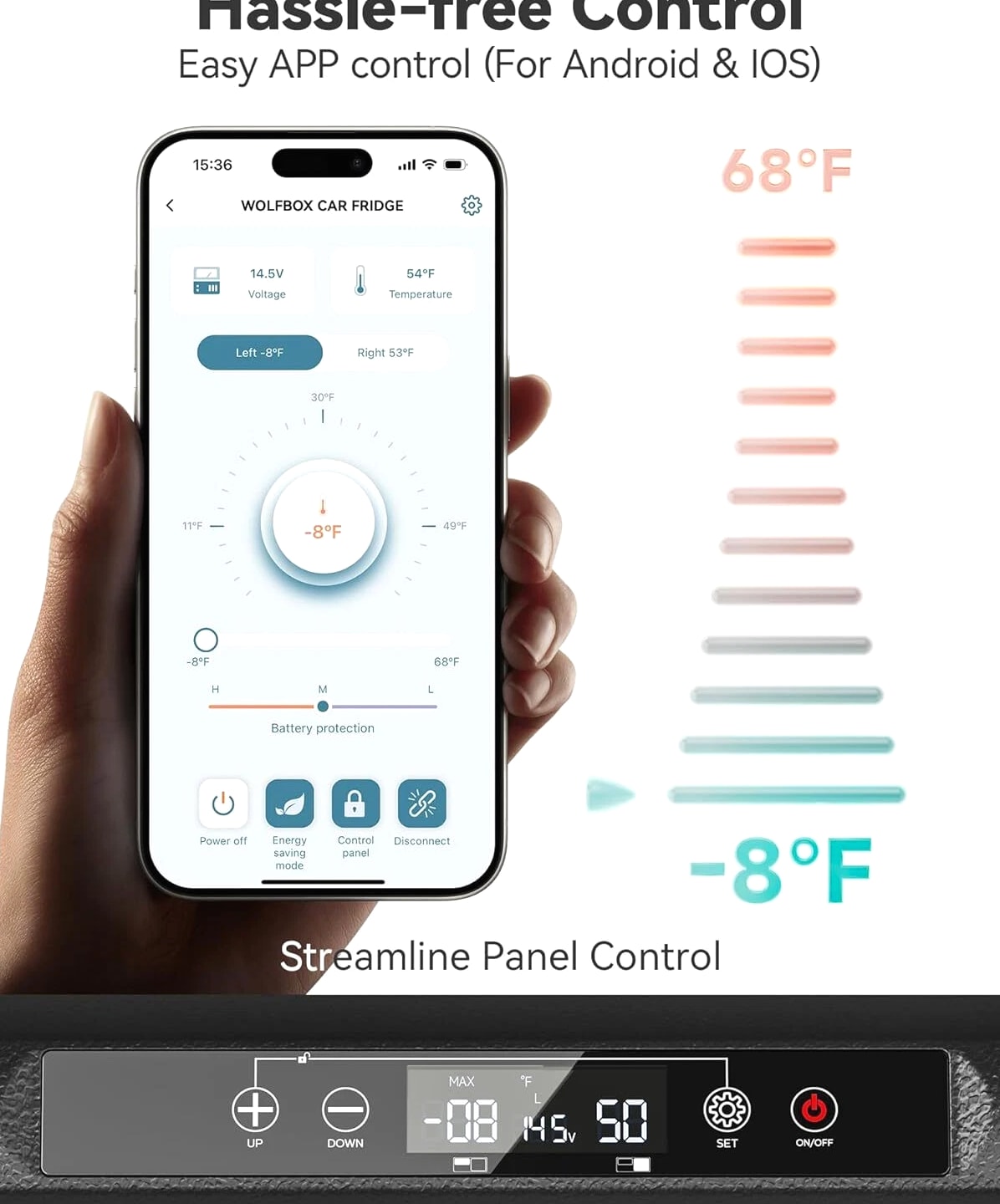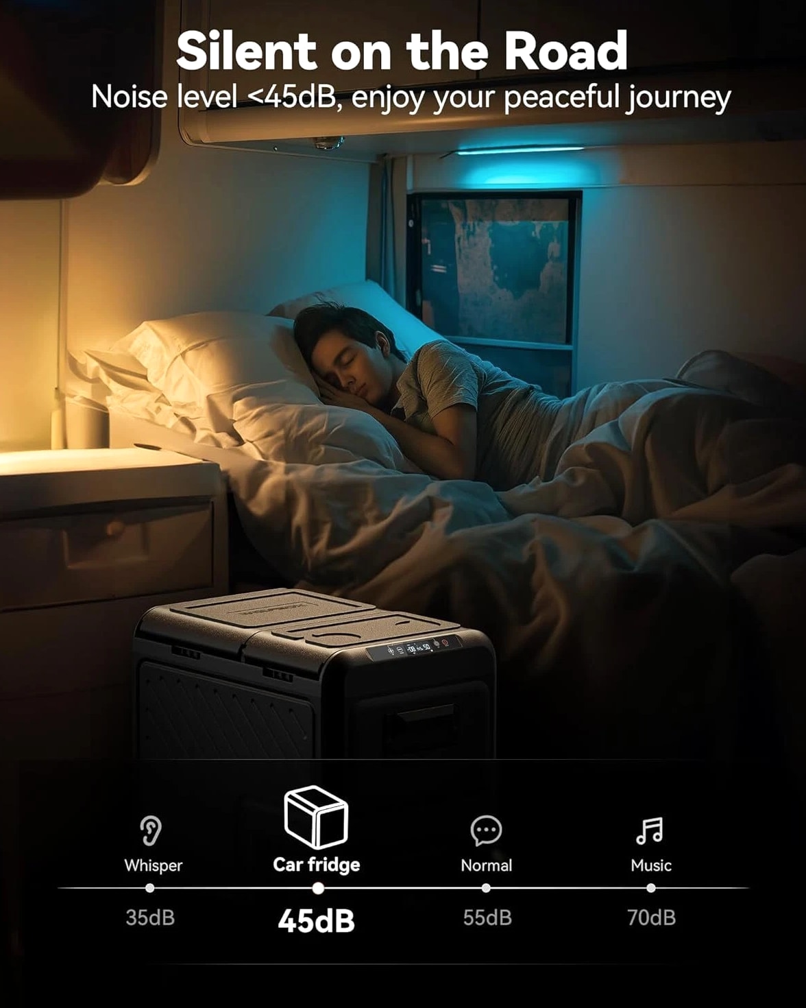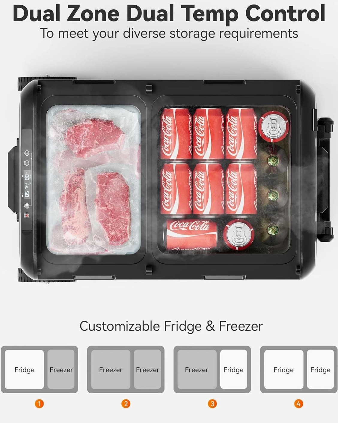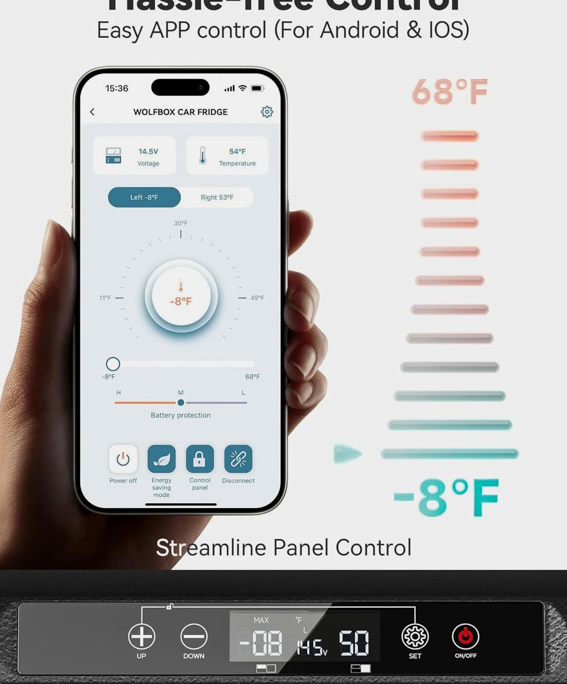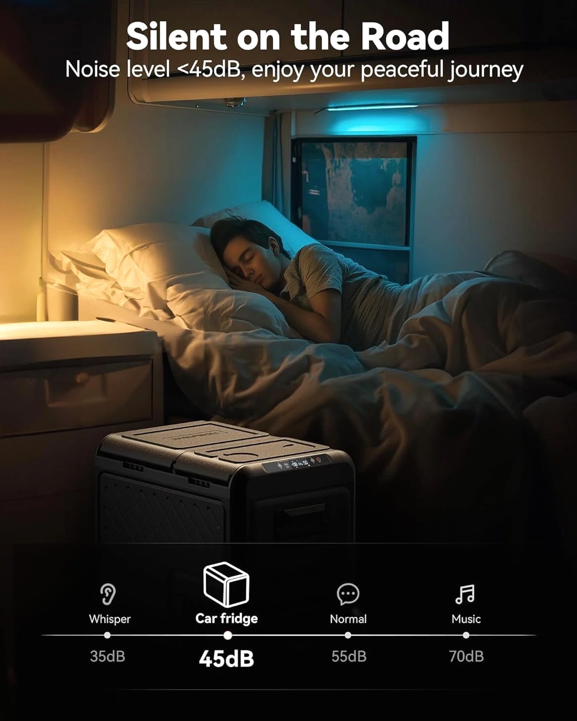 12V portable refrigerator offering advanced cooling technology for vehicle and RV use. Featuring adjustable temperature controls and smartphone app compatibility for remote monitoring. Key Features: - Multiple capacity options: 39, 48, or 58 Quart sizes available - 12 Volt DC power compatible with trucks, cars, and RVs - Wide temperature range for both refrigeration and freezing - APP control functionality for convenient remote access - Durable construction suitable for camping and travel - Multiple compartment options for organized storage - Energy-efficient operation Ideal for road trips, camping expeditions, tailgating, and long-haul transportation. Maintains consistent cooling performance in various driving conditions.