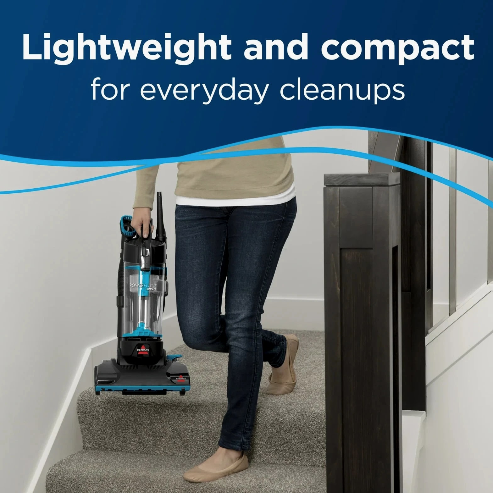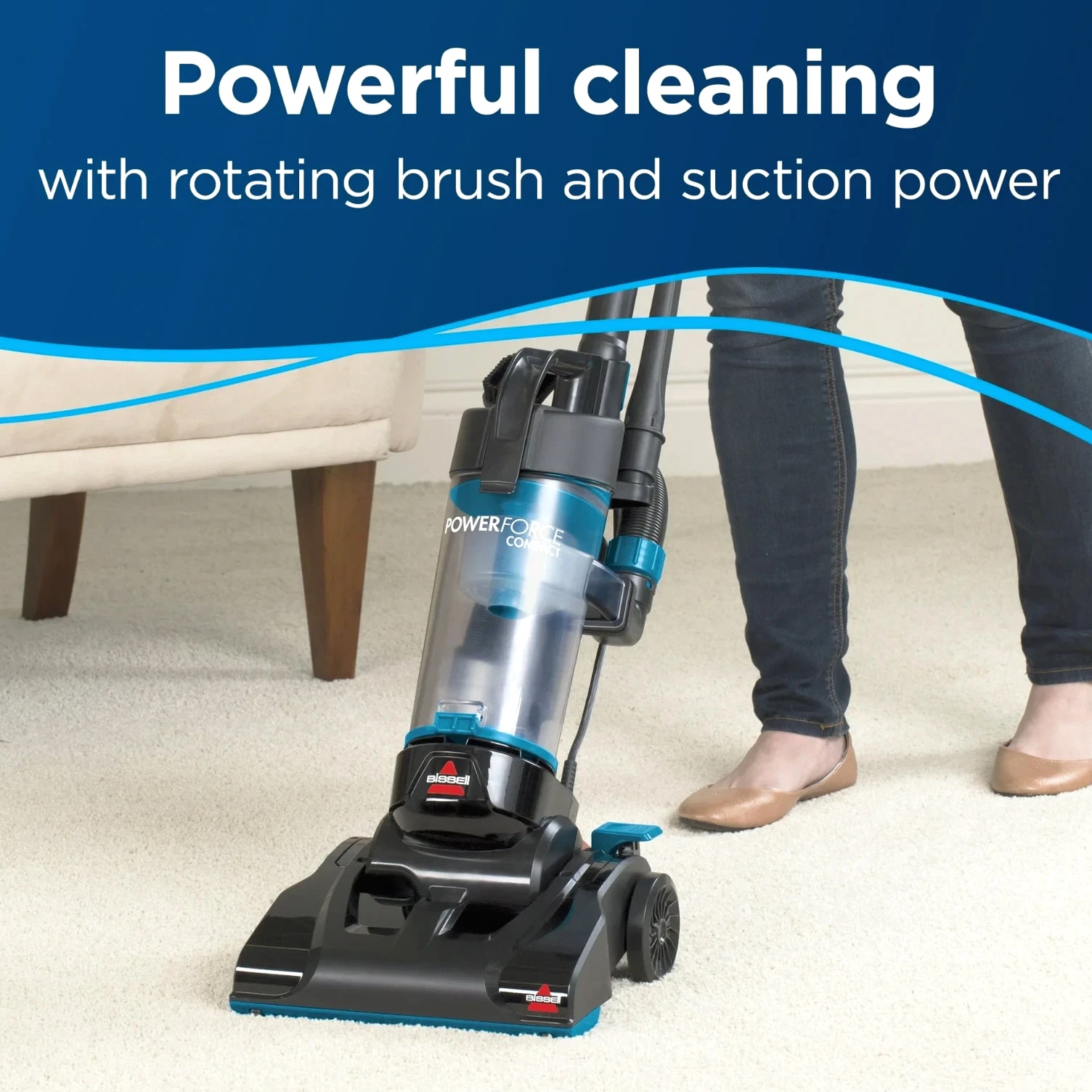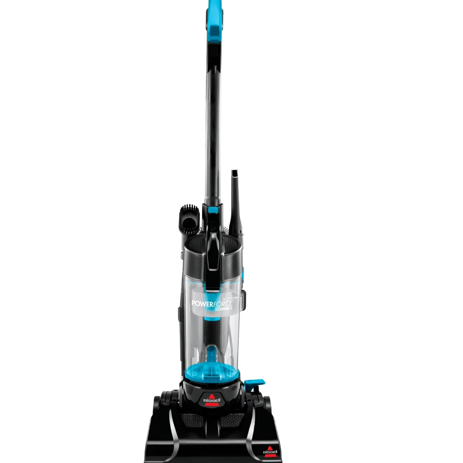 Compact Bagless Pet Vacuum Home Floor Care Upright Cleaning Machine - Powerful Keep your home spic and span with the Power Force Compact Bagless Vacuum. It offers fast and easy cleaning in a lightweight, compact design. The Power Force compact vacuum delivers powerful suction for efficient clean-ups. The convenient cleaning machine requires no bags and features an easy-to-empty dirt cup. The see-through design of the bagless vacuum also lets you tell when the cup needs emptying, while the compact design makes it easy to maneuver. It also takes up minimal space, so it's easier to store. Designed for modern homes, Power Force Compact Bagless Vacuum is suitable for use on a variety of floor types from wood to tile, laminate, and more. Powerful cleaning rotating brush combines with suction power for a thorough clean. Lightweight and maneuverable; weighs less than 8 lbs. High-reach wand. Washable filter means replacing filters less often. On-board tool storage including dusting brush, extension wand, and crevice tool.