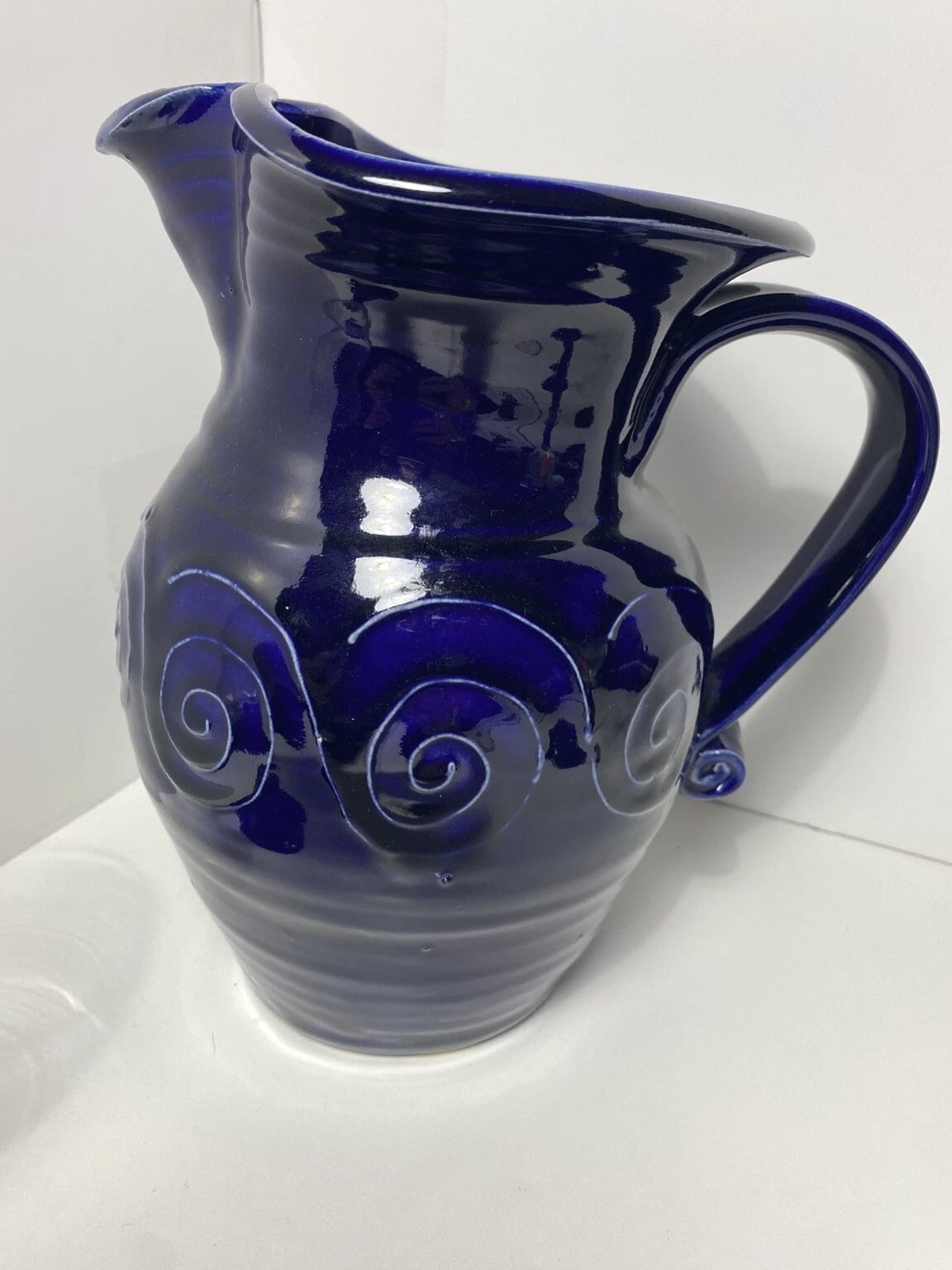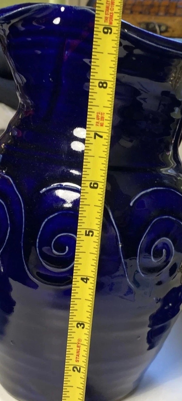 Elevate your home decor with this striking cobalt blue pitcher and glass set from Studio pottery. This handmade set of two pieces is a true statement piece that will add sophistication to any room. The round shape and ceramic material make it ideal for serving beverages, while the hand wash only care instructions ensure longevity. The production technique used for this set is pottery, and it is made in the United States. The set comes in a beautiful blue color perfect for any occasion. Get your hands on this unique set and impress your guests with its beauty and elegance.