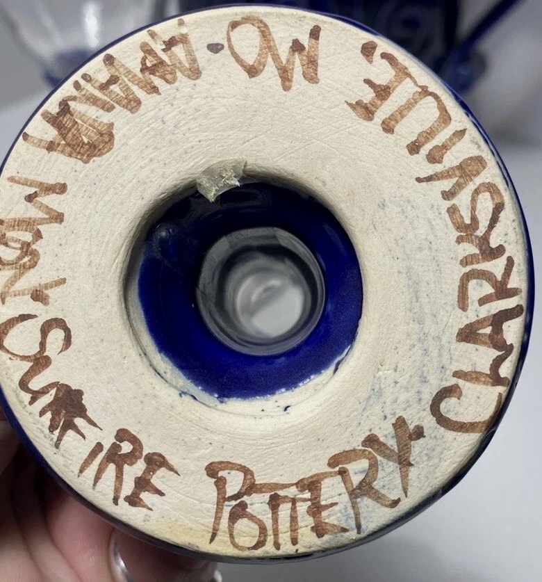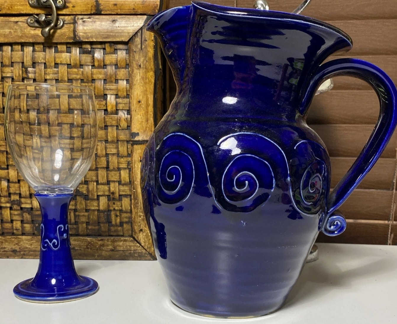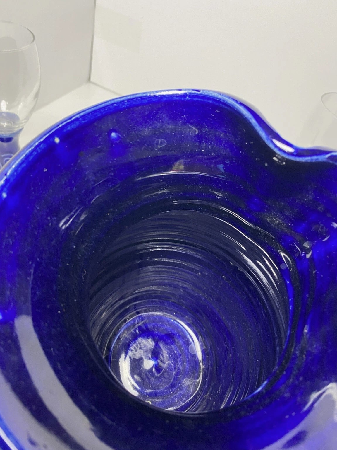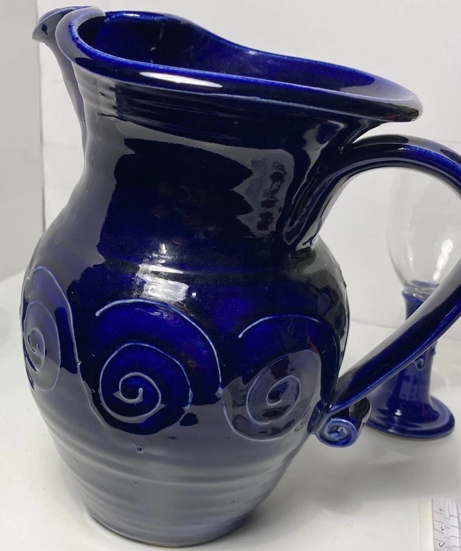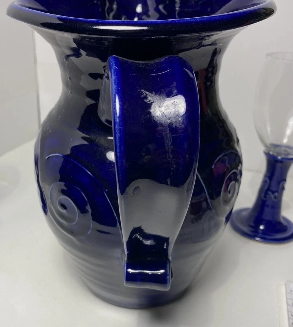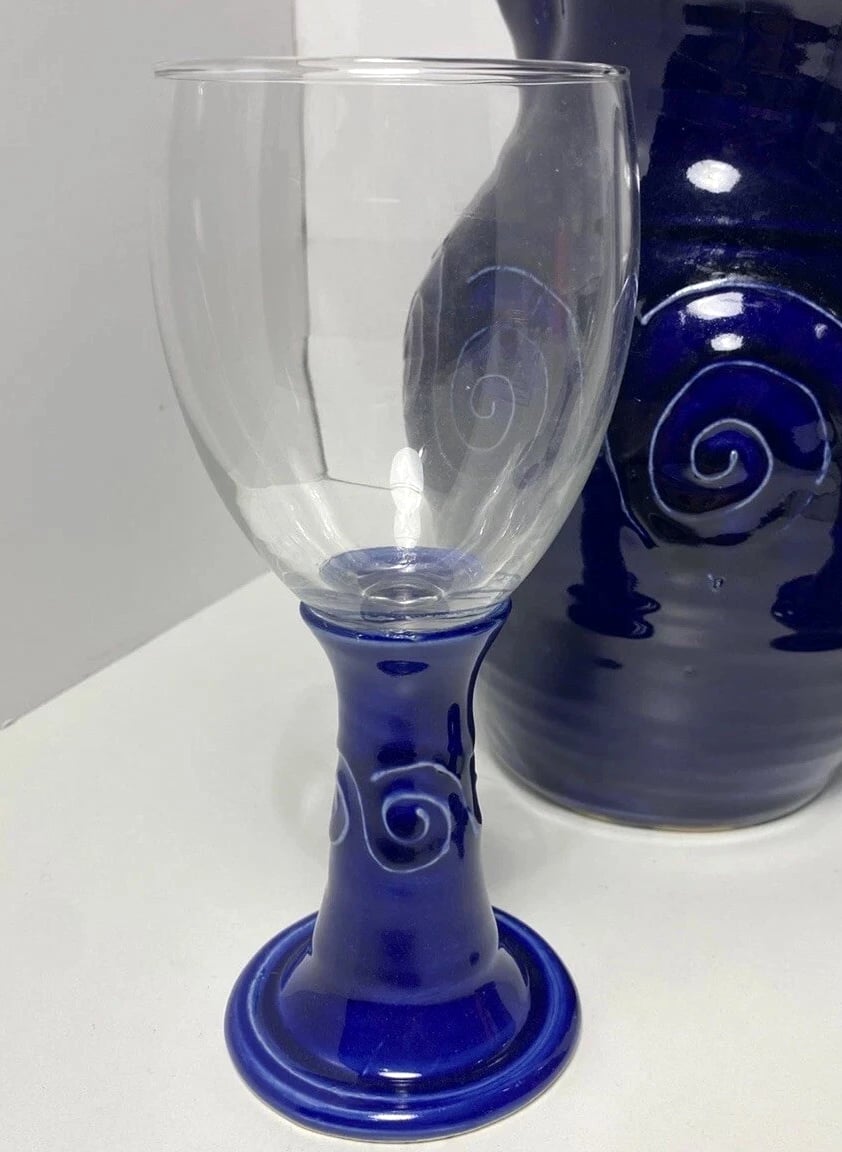 Studio pottery pitcher cobalt blue and glass Wine Glass - Statement Piece