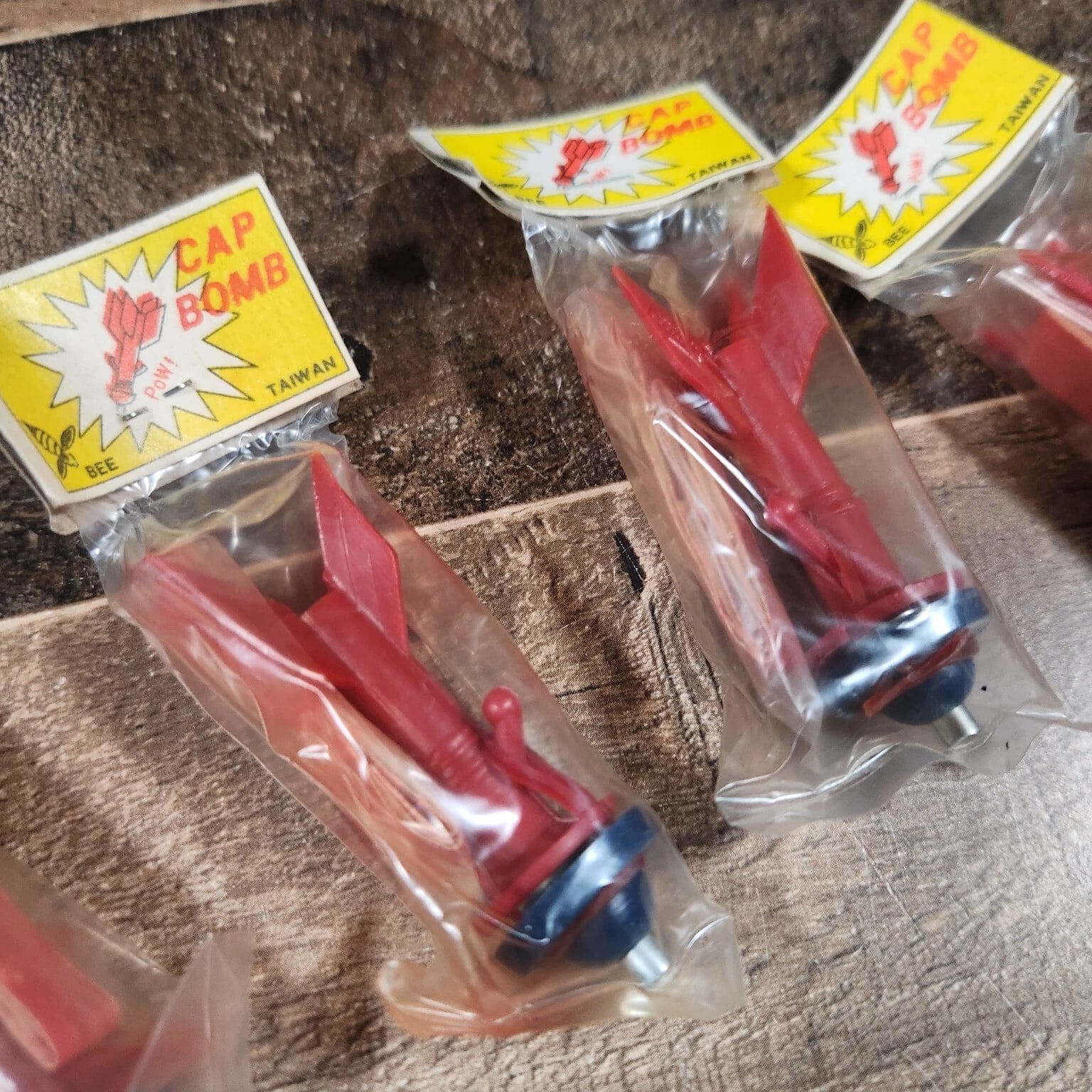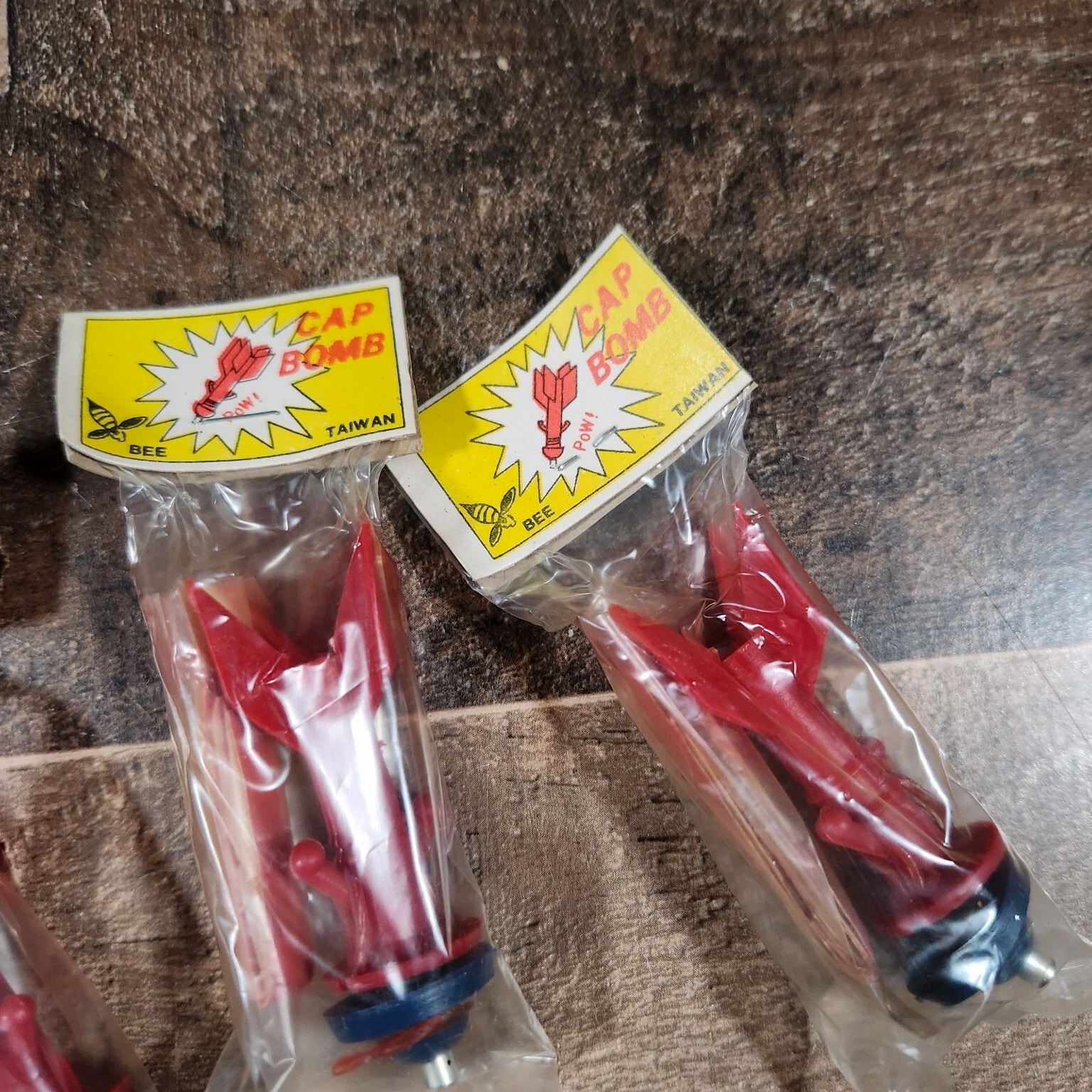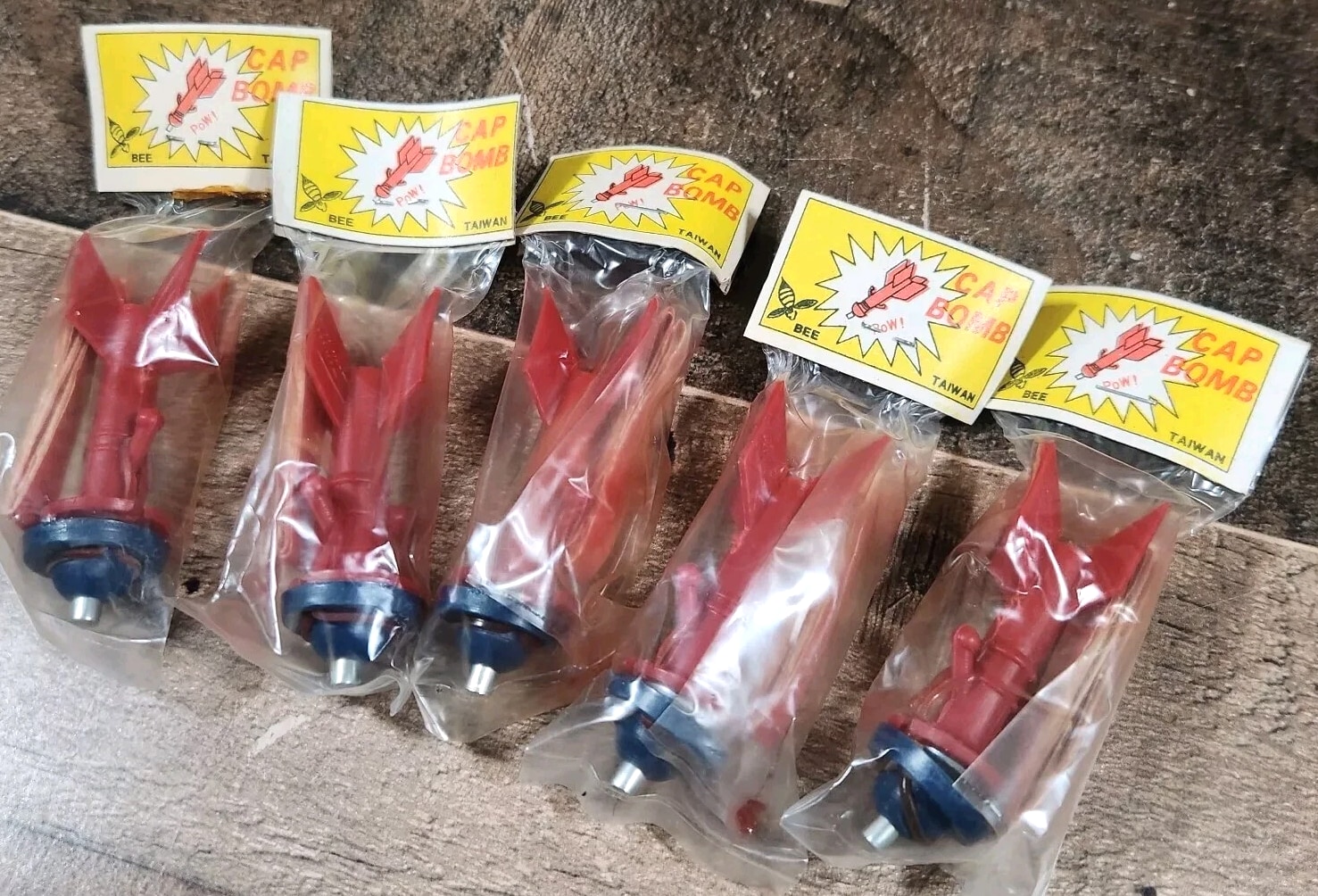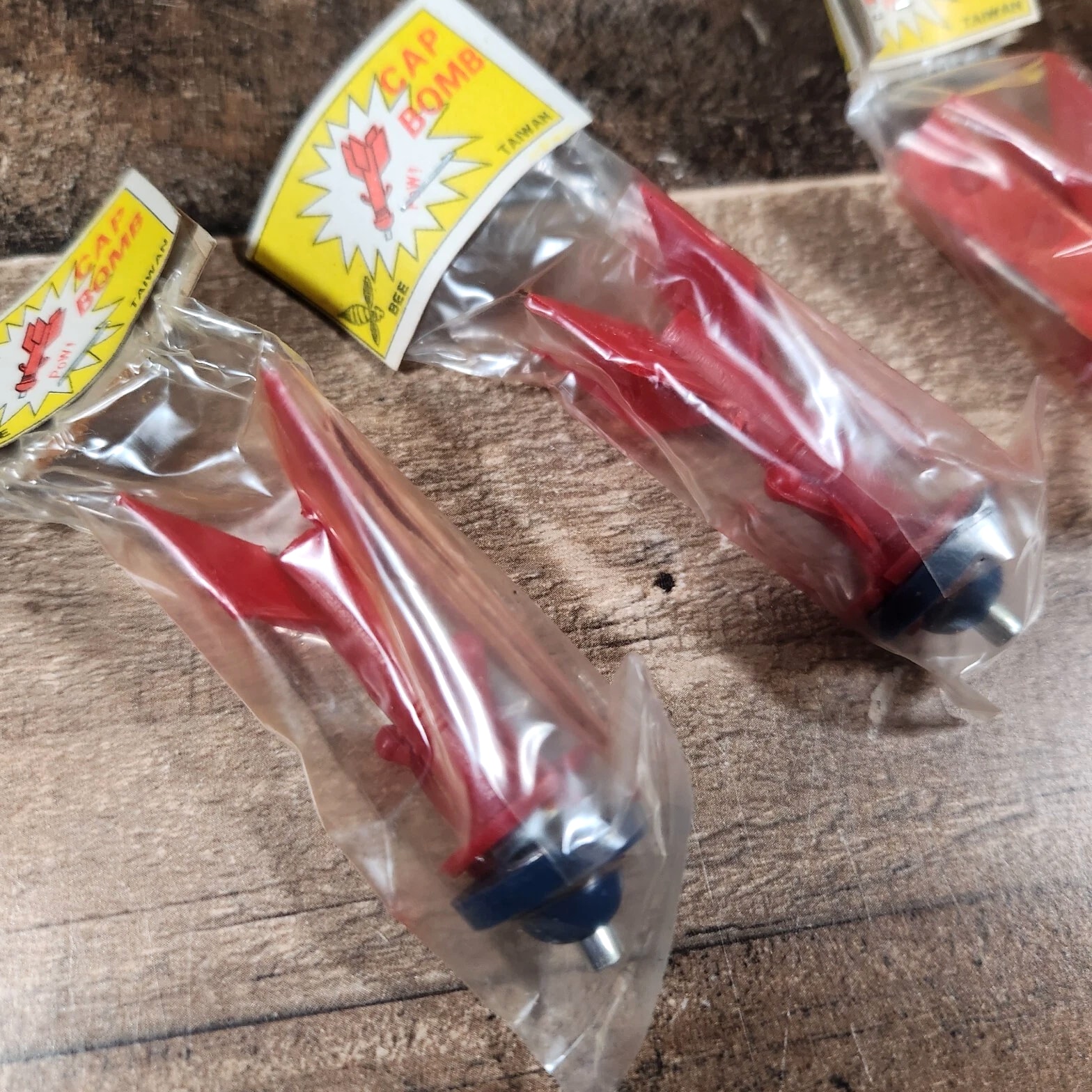 Vintage Lot of 5 - 1960s Bee Cap Bomb Toys Missiles Shaped - New NOS Retro Red