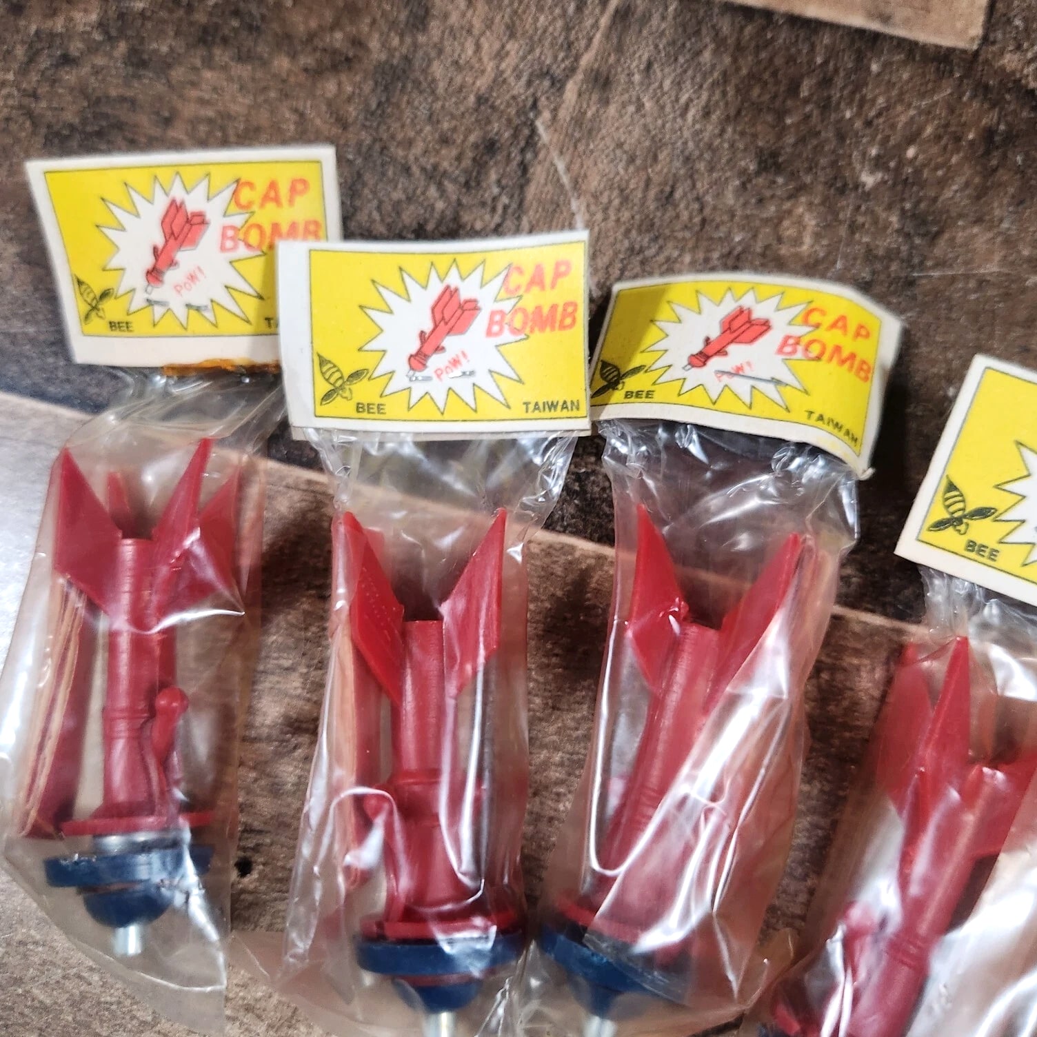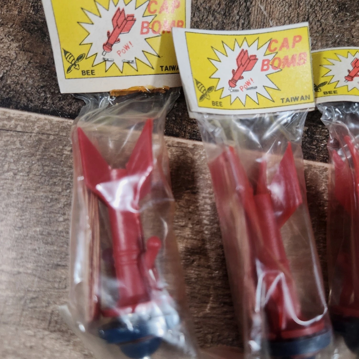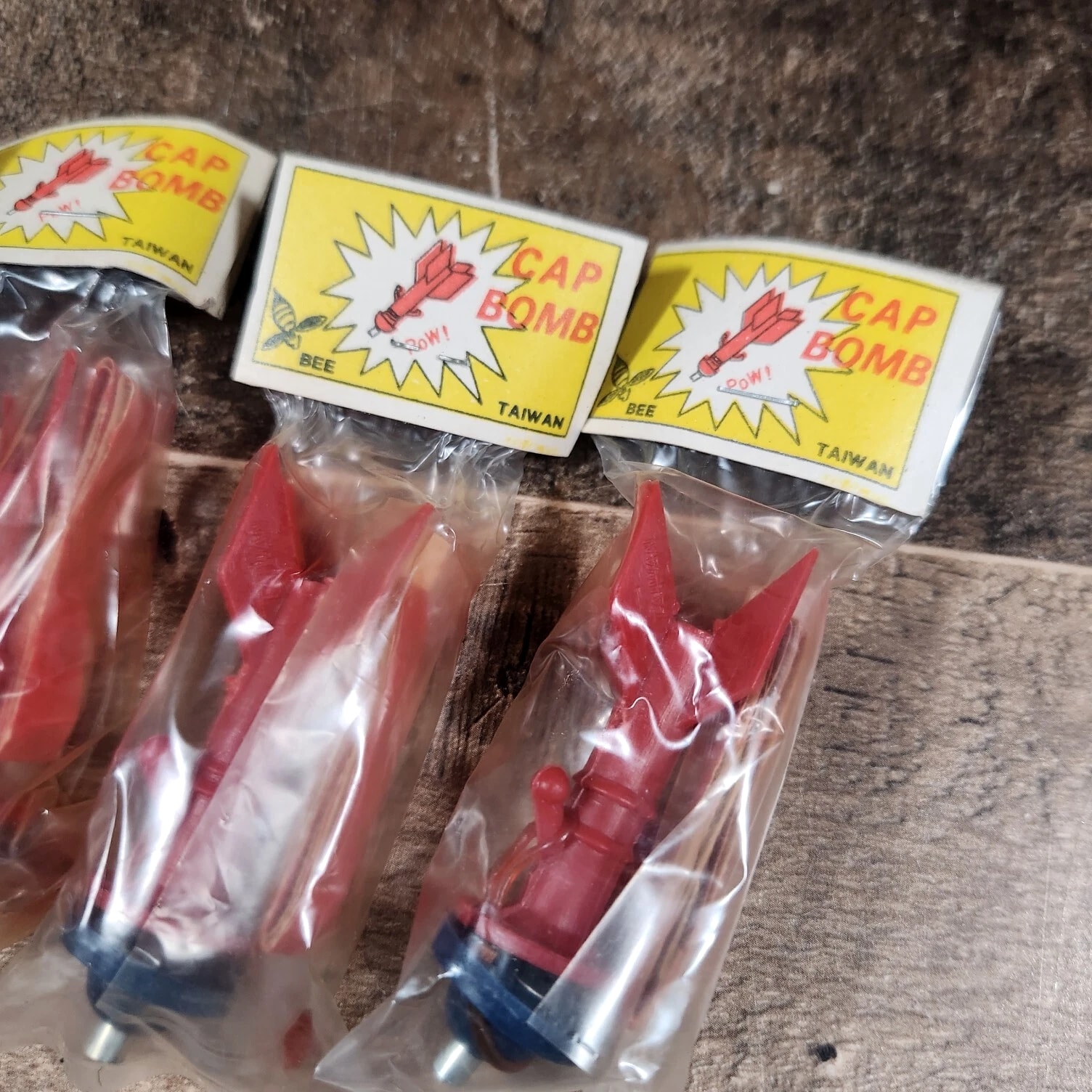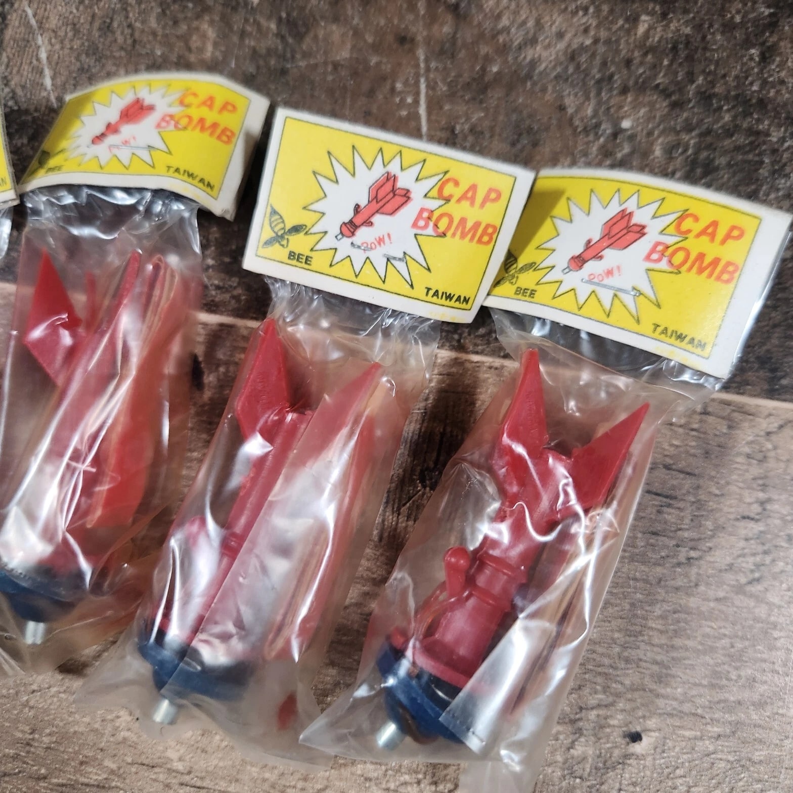 Vintage Lot of 5 - 1960s Bee Cap Bomb Toys Missiles Shaped - New NOS Retro Red