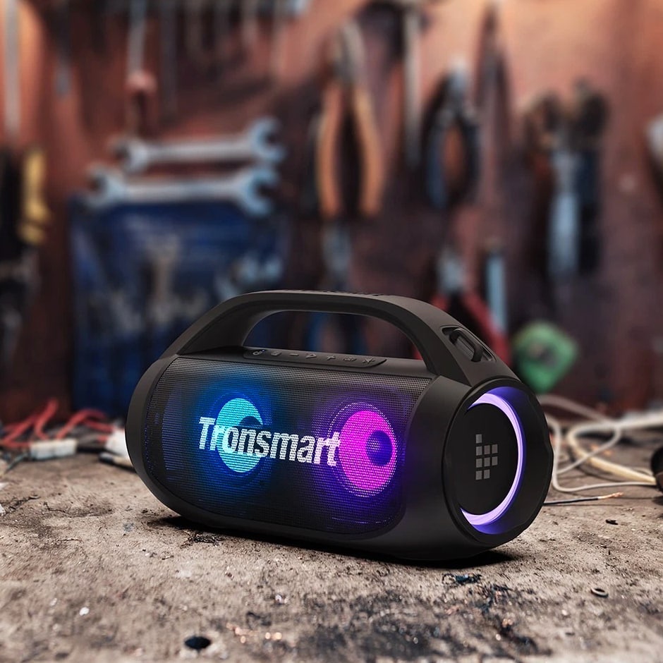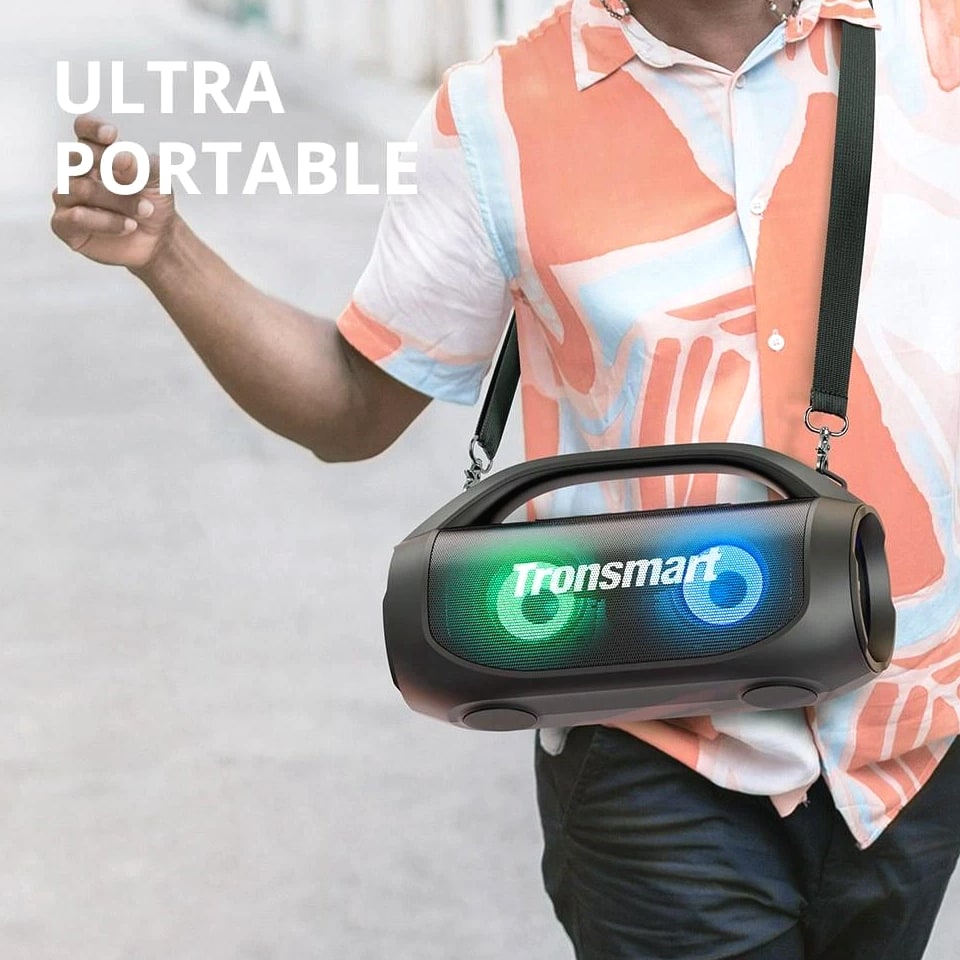 Highlights Tronsmart Bang SE Portable Party Speaker Bright Stereo Sound IPX6 Waterproof Ultra Portable with Handle & Detachable Strap 3 Lighting Modes 24 Hours of Playtime Stereo Pairing Specification Model Bang SE Bluetooth Version Bluetooth Profile HSP / HFP / A2DP /AVRCP Audio Codec Bluetooth Range Up to 15m/49ft (open area) IP Rating IPX6 Output Power Input Power 5V/2A via Type-C port Frequency Range 60Hz – 20kHz Battery 7.4v/4000mAh Playtime (Varied by Volume Level & Audio Content) Up to 24 Hours (Varied by Light Display) Up to 16 Hours (Varied by Light Display) Charging Time ≤5 Hours Dimension 298 x 164.5 x 118.8mm/11.73 x 6.48 x 4.68inch Product Weight 2.08kg/4.59lbs What's in the box 1 x Bang SE Portable Party Speaker 1 x Aux-in Cable 1 x Type-C Cable 1 x SoundPulse® Card 1 x User Manual 1 x Warranty Card 1 x Carrying Strap 1. How long does it take to charge from the low battery? It can be fully recharged in 5 hours using a type-c 5V/2A wall charger. 2. Can I use this as a speakerphone to answer calls? Yes, you can answer/end a call via the speaker. 3. Can it be linked as a wireless stereo pair with an original Tronsmart Bang? No, it could only connect with the same model. We will try to realize the stereo pairing across different models. 4. Can I charge my phone with it?