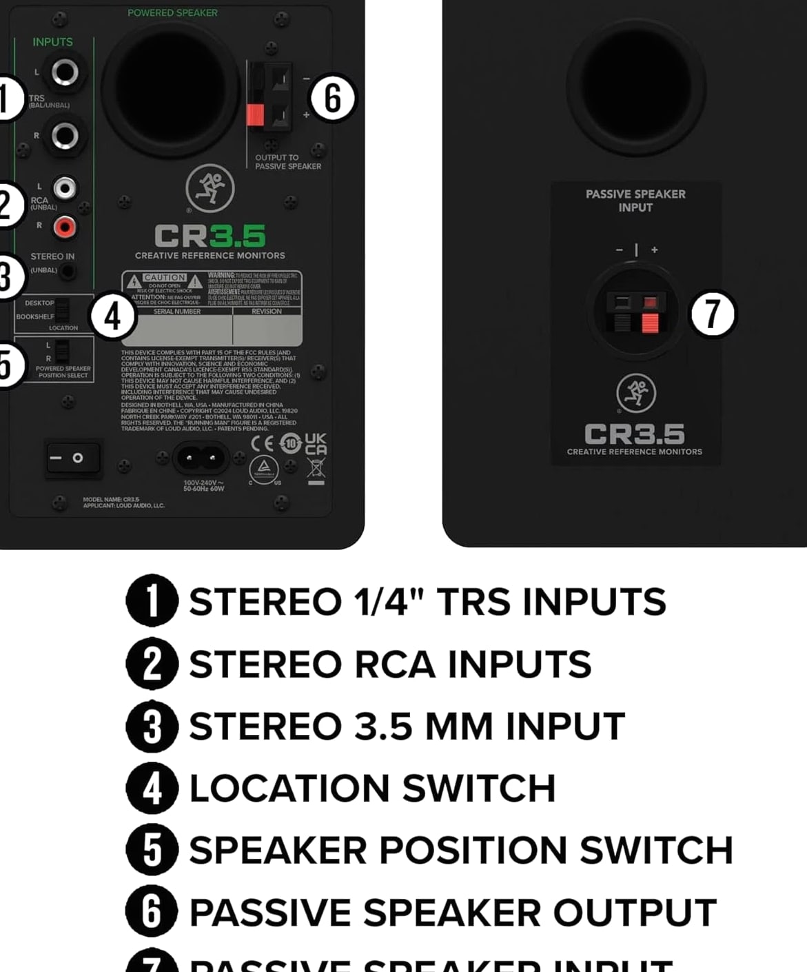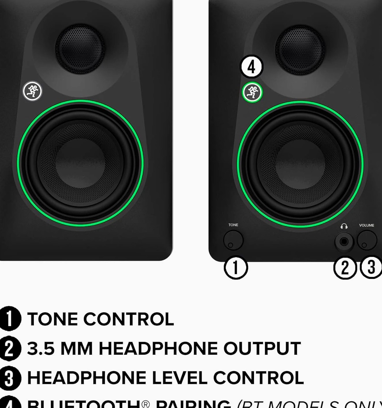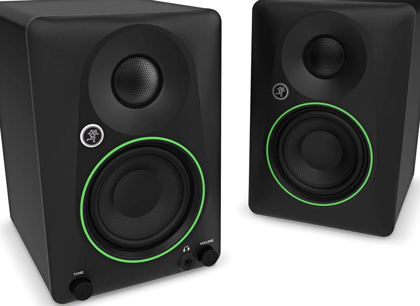 Mackie CR3.5 Creative Reference Powered Studio Monitors combine studio-quality sound with a tone control, making CR3.5 the best studio monitors, gaming speakers and party speakers, all wrapped into one. Connect CR3.5 to just about anything. Hook up audio interfaces and playback devices with TRS and RCA connectors. Play gaming consoles and PCs with the 3.5 mm input. There's even a built-in headphone output. Use the tone knob to shape the sound, starting with the transparent response you expect from studio monitors. Turn the knob to gradually boost the bass and add high-end sparkle, perfect for immersive gaming, casual listening or all-out partying. Flip the mode switch between desktop speaker mode and bookshelf speaker mode to optimize CR3.5 for wherever you place them. Use desktop mode for listening up close (like in the studio) and bookshelf mode for listening at a distance (like from the couch). Mackie CR3.5 monitors combine a silk dome tweeter and a 3.5" woven woofer for clean, articulate sound with plenty of low end. For enhanced bass that rumbles the floorboards, connect your speakers to the CR8SBT subwoofer (not included). Mackie CR3.5 Creative Reference Powered Studio Monitors combine professional-quality sound with a tone shaping knob for moving from studio reference to casual listening to party mode. Featuring a selection of inputs and switchable desktop and bookshelf modes, these speakers give you clear, powerful sound in any space. Use the tone control knob to adjust the sound, beginning with the transparent quality you expect from professional studio monitors, then gradually adding more excitement with boom-ier bass and added sparkle. Whether you're using them for business, pleasure or both, Mackie CR3.5 may be the only speakers you ever need.