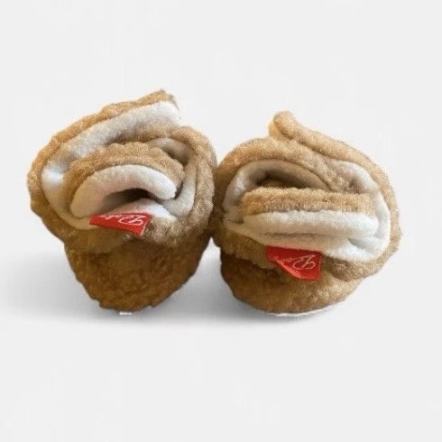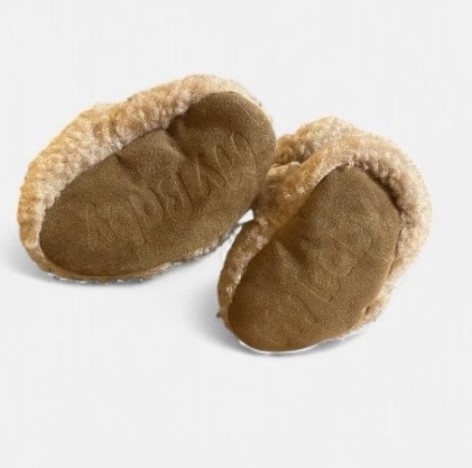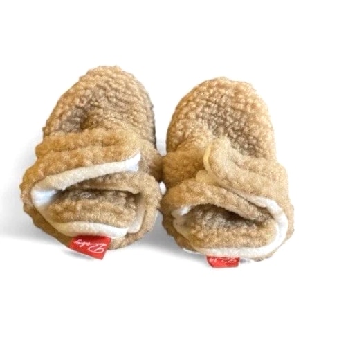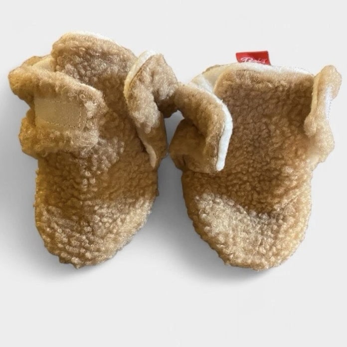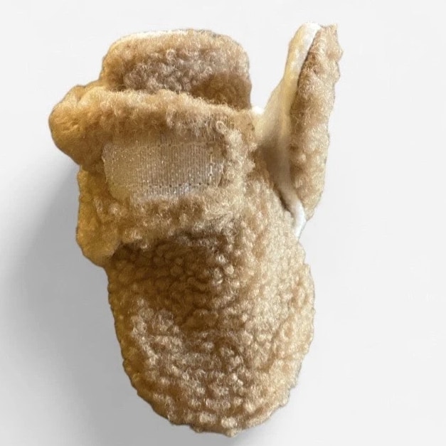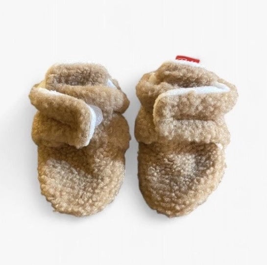 Baby Sherpa Booties Beige Plush Fleece Hook & Loop Soft Sole Shoes 3-6 Months