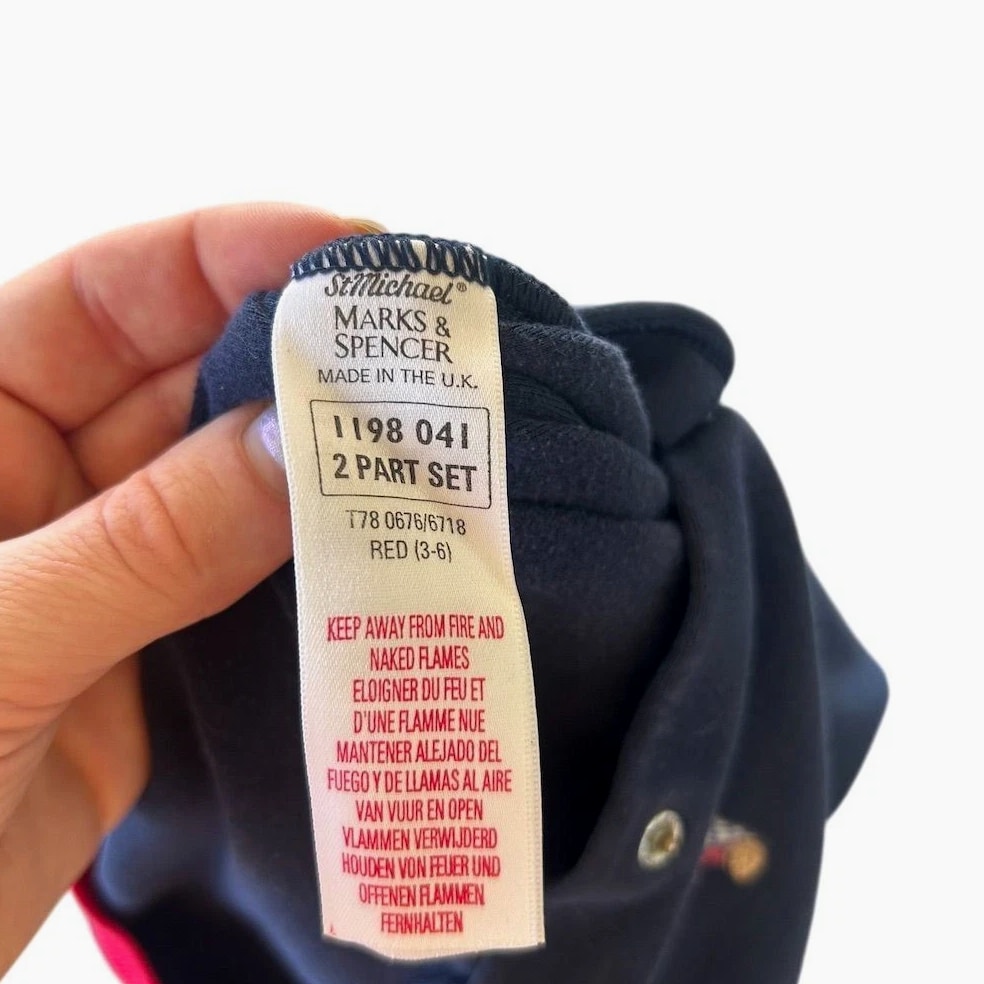 Marks & Spencer Paddington Bear Sleepsuit Baby 3-6 Months Navy Red Footed Pajamas