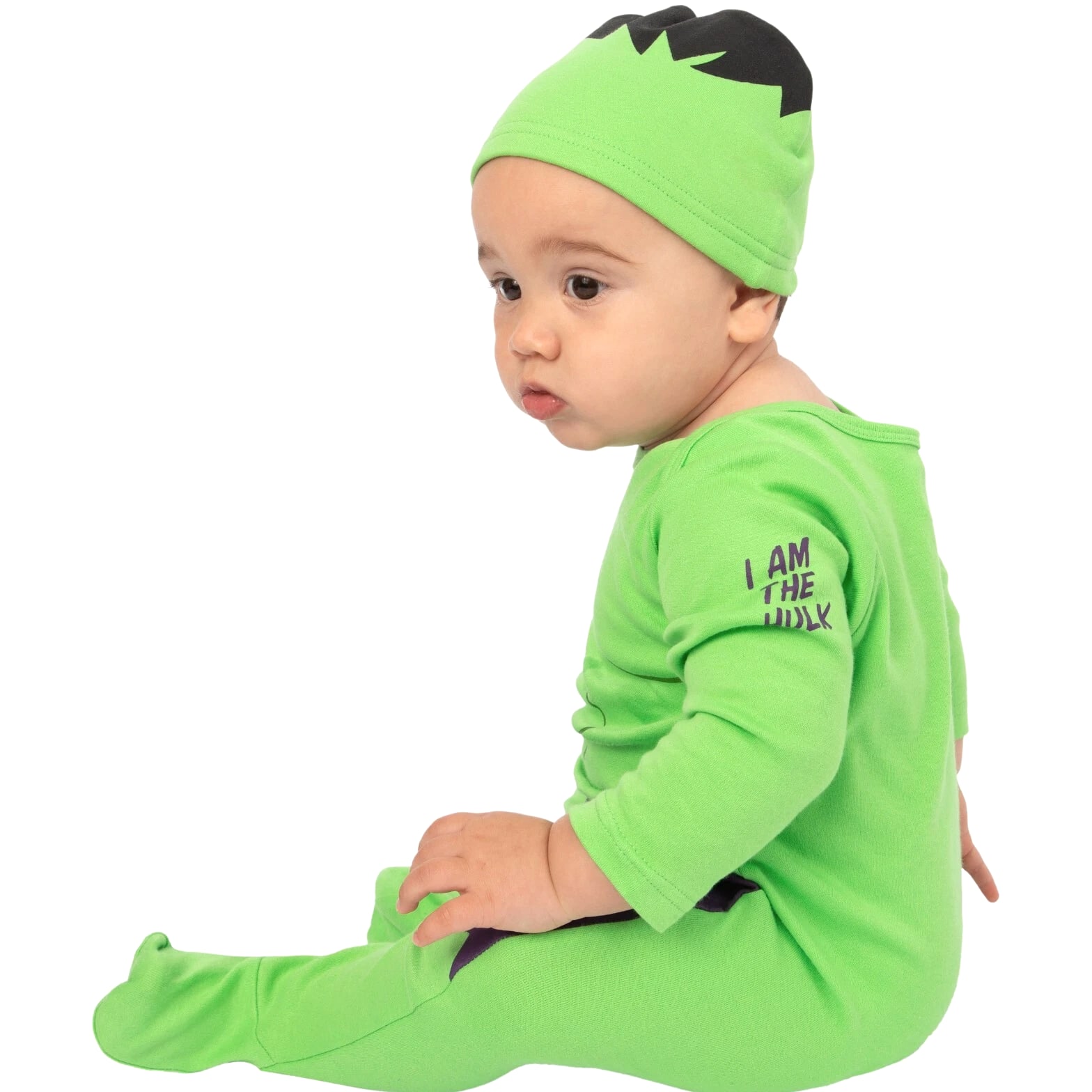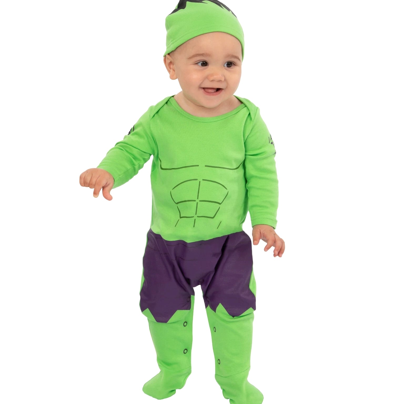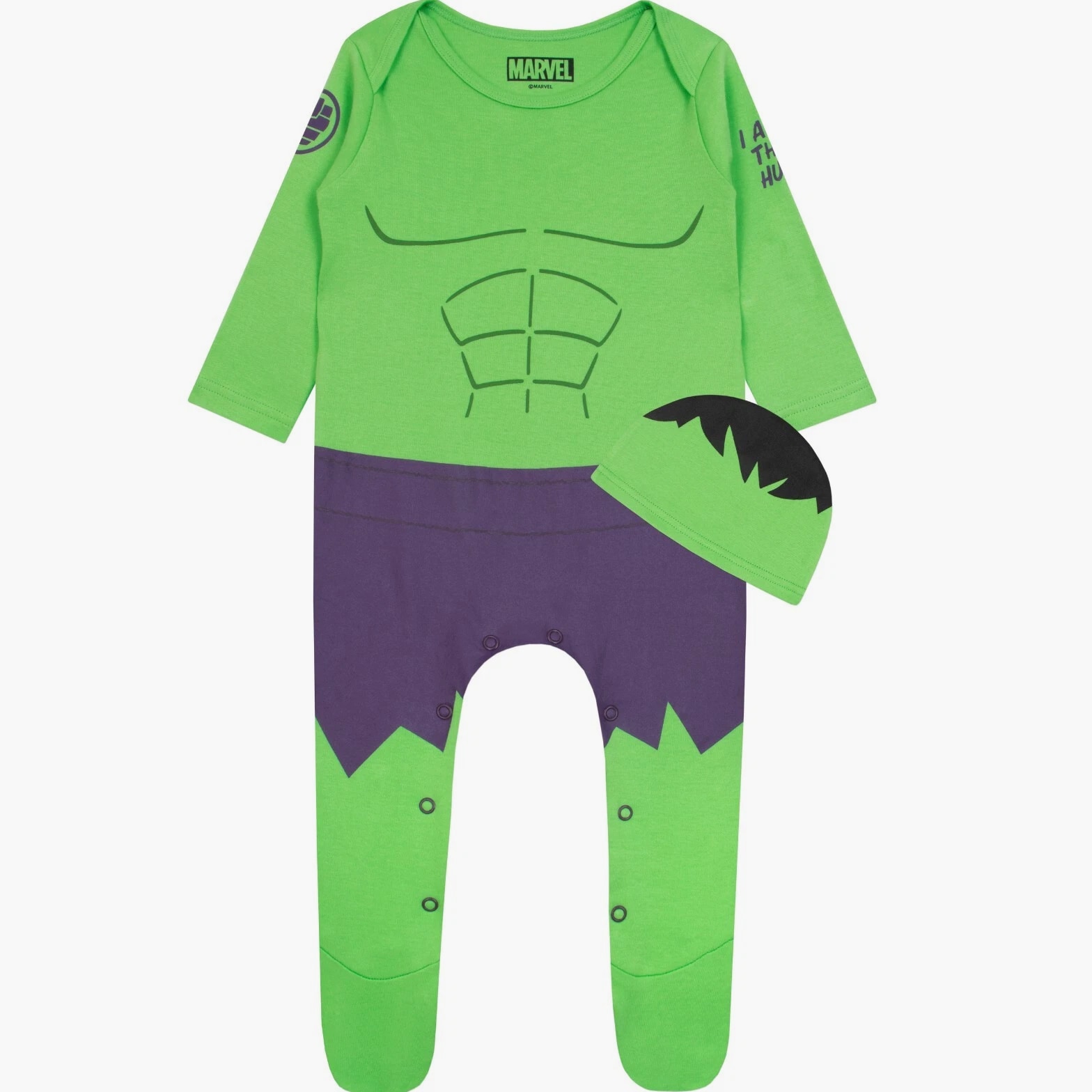 Marvel Baby Sleepsuit with Hat | The Incredible Hulk Baby Pyjamas | Baby PJs
