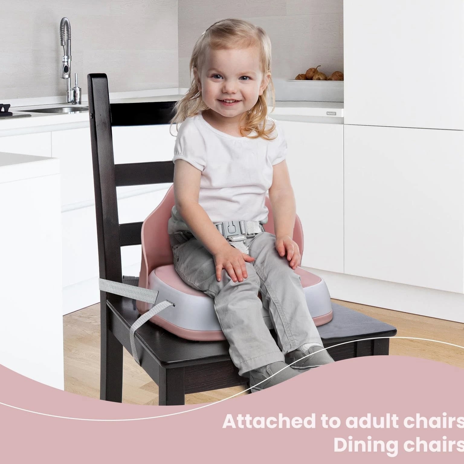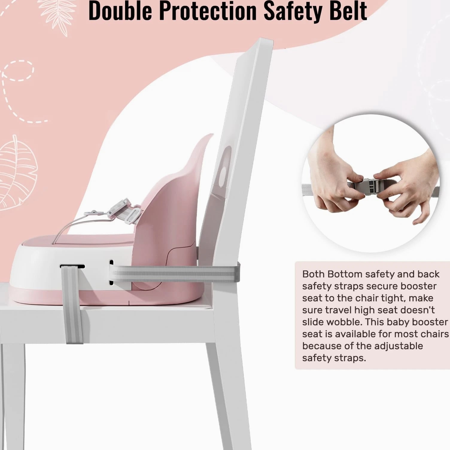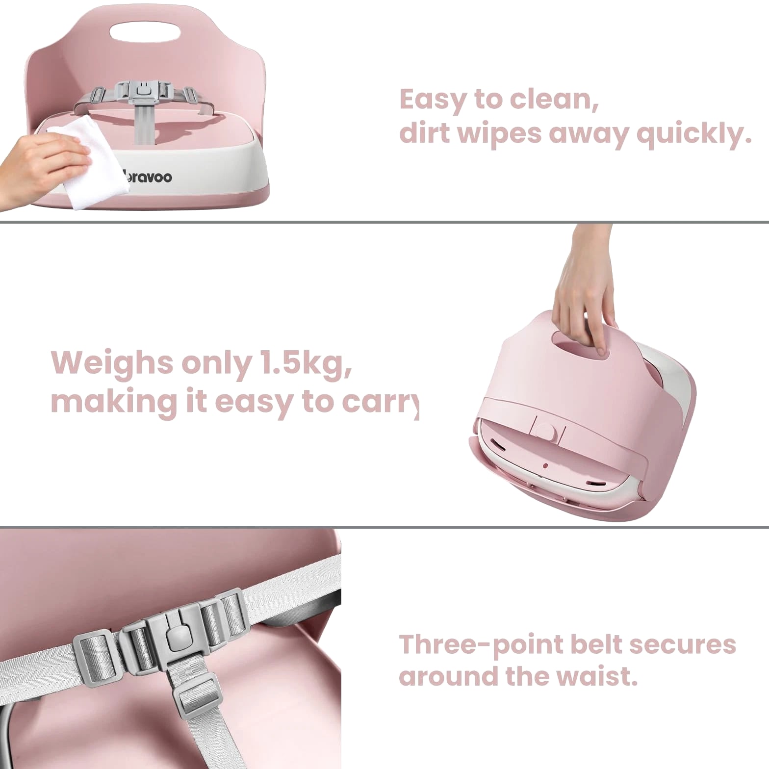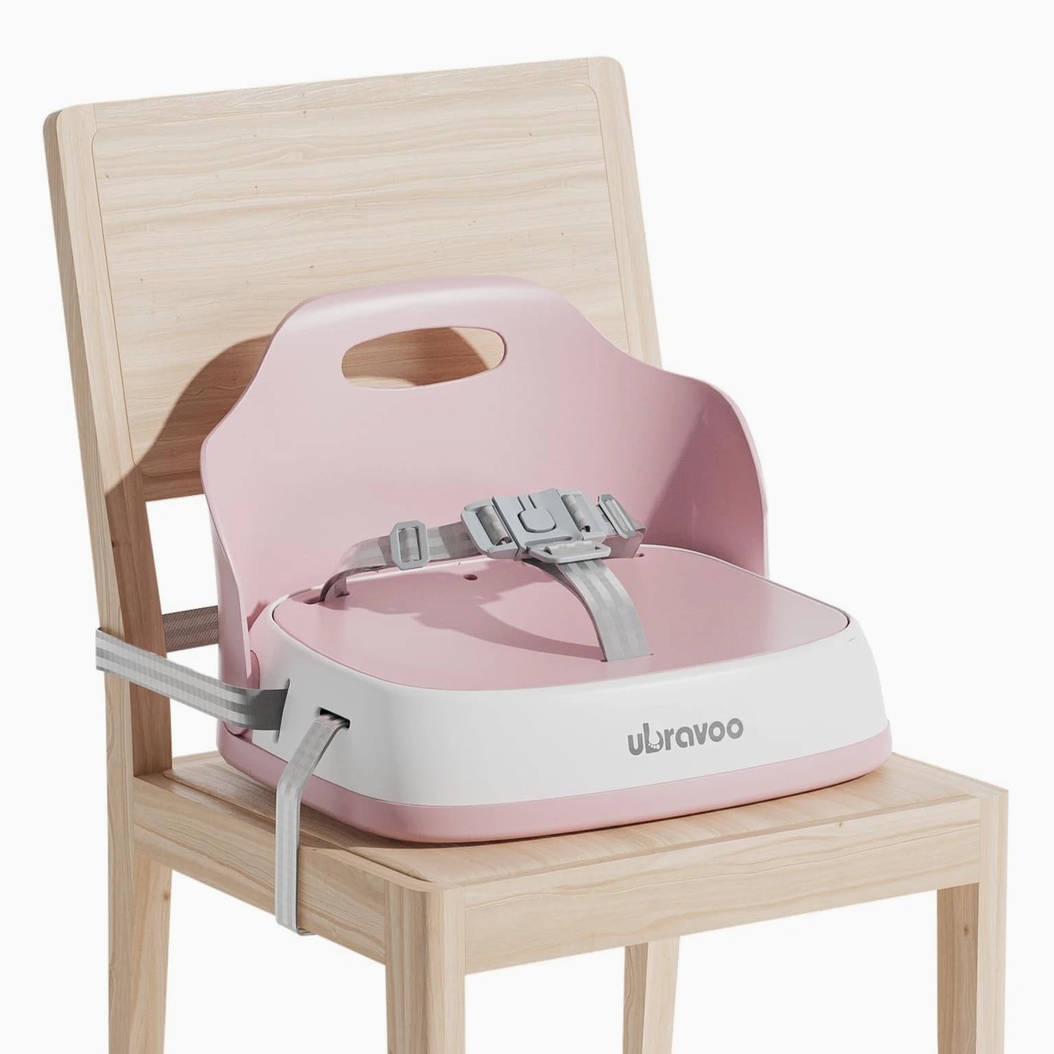 UBRAVOO Baby Booster Seats, Portable High Chairs for Babies and Toddlers, HighChair for Baby from 6 Months to 3 Years, Sitting Up to 15 kg (Pink) 【Child Feeding Solution】The UBRAVOO Child Height-Adjustable Booster Seat is compatible with most chairs. It features two adjustable straps and a three-point safety harness for secure attachment to larger chairs; maximum weight capacity is 33 pounds. 【SAFETY & NON-SLIP】Baby booster seat has two safety straps on the cushion, which can be fixed on the back and bottom of the chair, providing double protection of children's feeding safety. 【COMFORTABLE MATERIAL】Our Toddler booster seat made of high-quality PP plastic, gets stronger support and resists deformation. 【WASHABLE】High back design gives your toddler a comfortable seat at the table. Simply clean the base by wiping with a damp cloth and mild soap, giving yourself a break from cleaning. 【LIGHTWEIGHT & PORTABLE】The feeding chair is very lightweight at only 3.31 LB, can be taken anywhere at any time. Built-in portable handle is easy to access; works at home and for outdoor picnics.