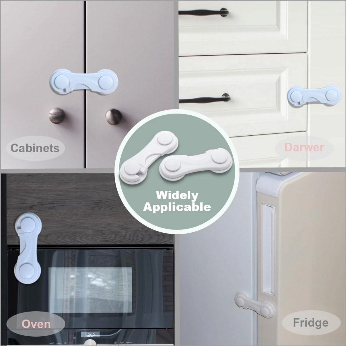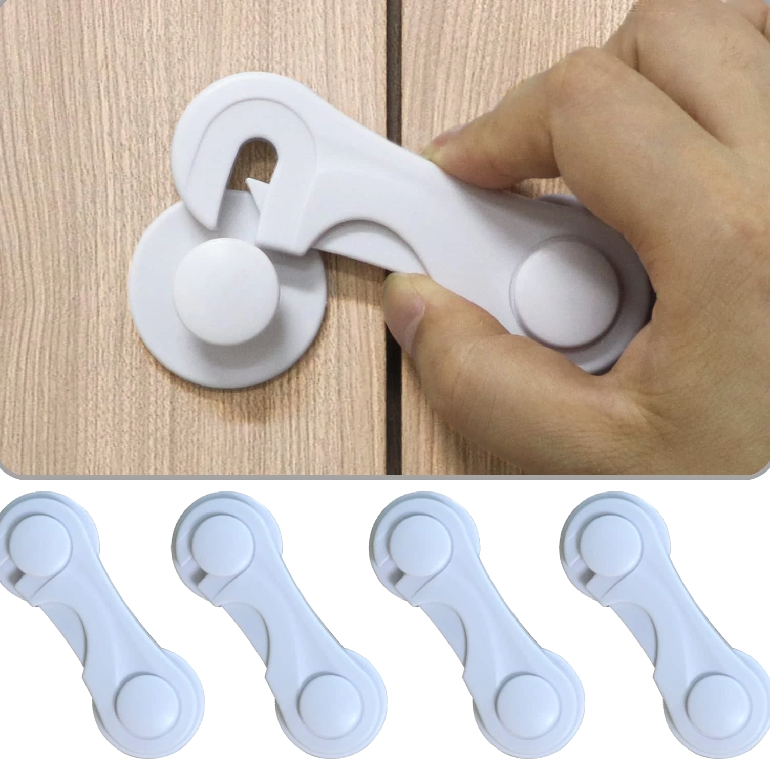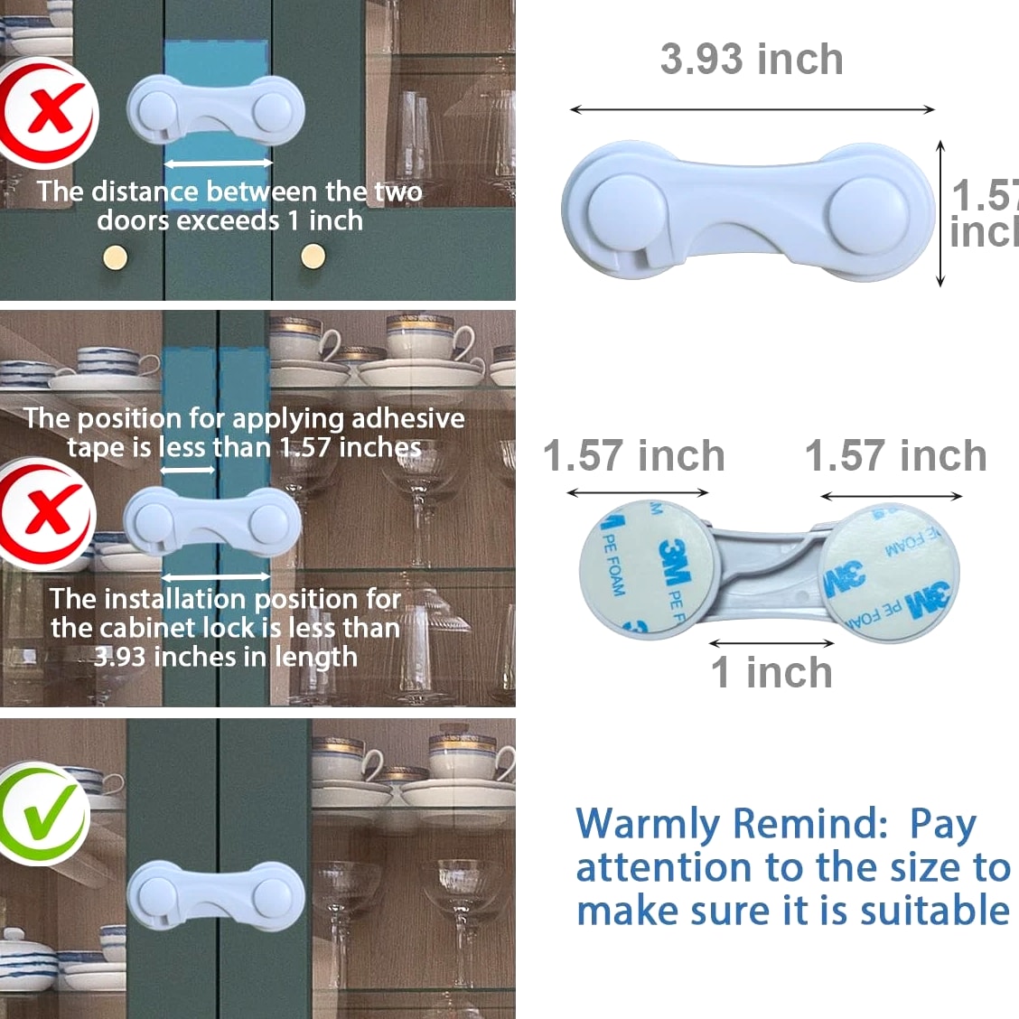 Cabinet Door Locks for Baby Proofing & Child Safety, 4 Pack Childproof Cabinet Locks with Adhesive for Drawer Cupboards Fridge Closet and Pantry, Child Proof Latch for Protecting Kids (White-4 Pcs) Keep Kids Safe: KongNai cabinet locks designed for preventing children from opening cupboards drawers closets easily and being hurt by dangerous items inside. Compared with straps locks, this latch lock has no sharp edges and is more safety for kids. Easy To Install: This baby proofing gadget comes with adhesive tapes, making installation simple. Just peel off the film of adhesive and stick the child lock on the cleaned surfaces of door; no drills or tools needed. The installation process is very simple. Pre-Purchase Notice: 1.This adhesive cabinet lock not suitable for cabinet doors with uneven or rough surfaces; 2.The dimensions of this cabinet lock are 3.93 x 1.48 x 0.39 inches. Please confirm that these dimensions are compatible with your cabinet. Ensure that the gap between the two cabinet doors does not exceed 1 inch; 2.This adhesive cabinet lock not suitable for cabinet doors with uneven or rough surfaces. One-Handed Operation: KongNai Drawer latches for child safety features a keyless design. The home safety tools are easy to open and close for adults; you can just use one hand to press the button and lift the latch to open it. For children, it is not easy to open. High Quality: The child proof cabinet latches are made of superior ABS Resin. Durable, nontoxic and odorless. The baby proof tool is difficult to be broken by toddlers. Provides maximum protection for baby boys and girls. Do you have a cute baby who likes to empty your closet cabinet or drawer? Or a pet who has a tendency to open closets and pantry? Are you worried about your baby having access to open closet door and play with damage items? KongNai baby proofing cabinet locks will provide you peace of mind as these locks either limit or completely stop the opening of a cabinet door. Essential Baby Sa