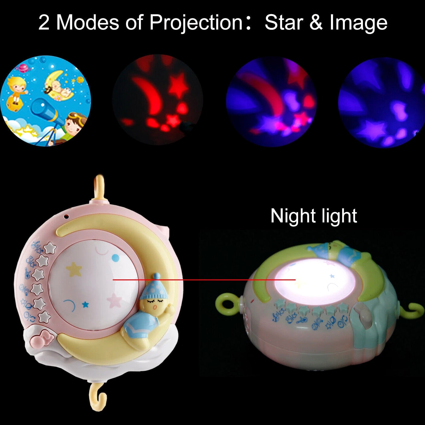 Baby Crib Mobile with Music and Lights, Moon and Star Projector Toys with 108 Songs