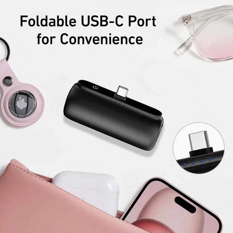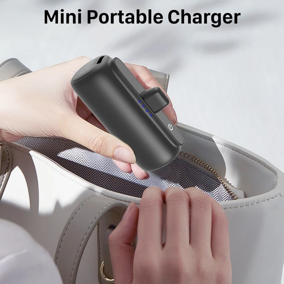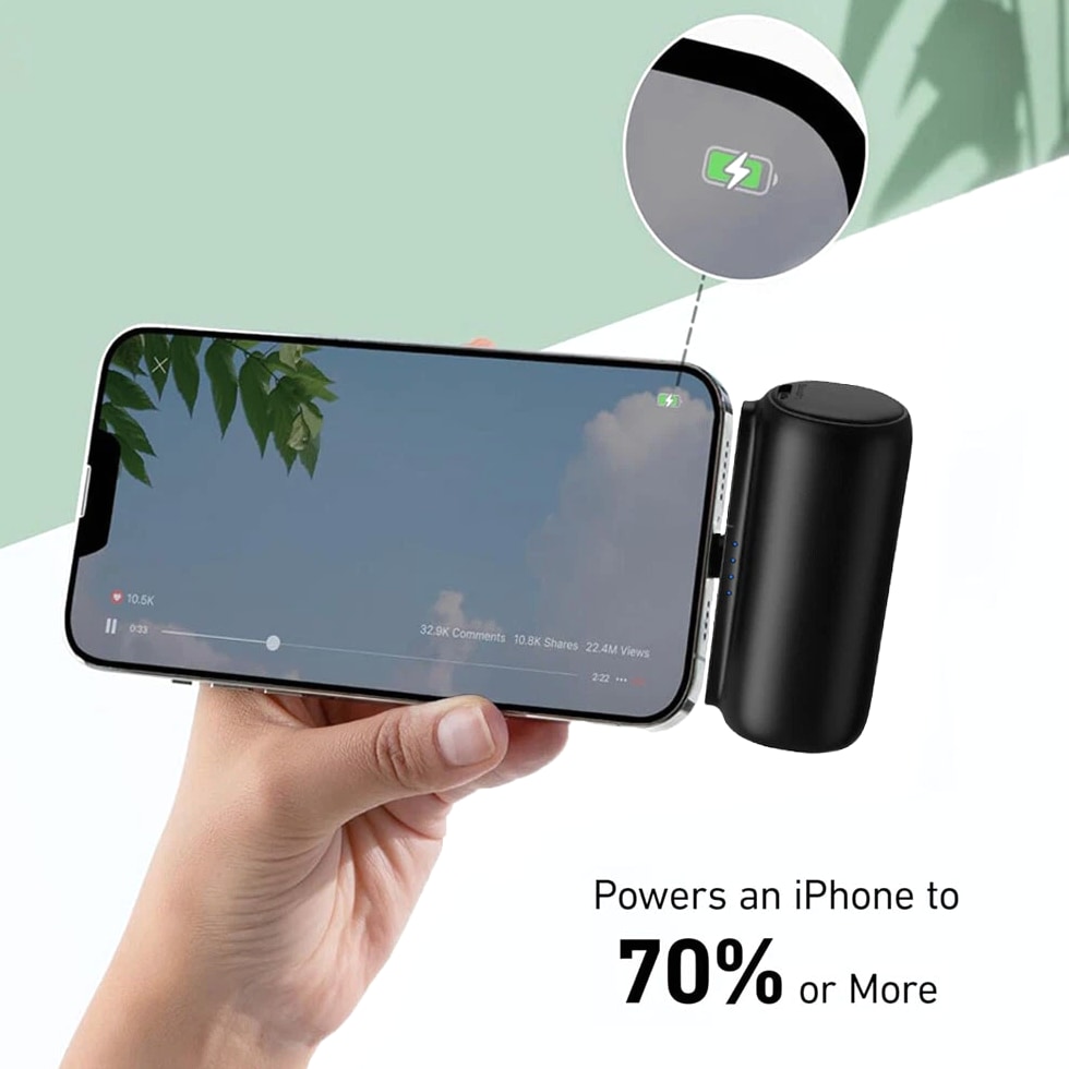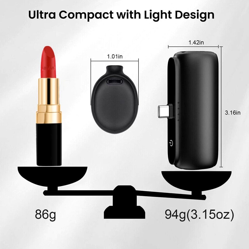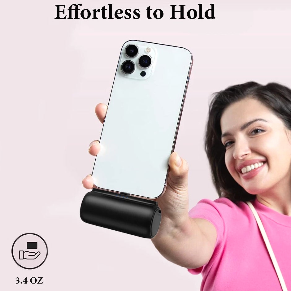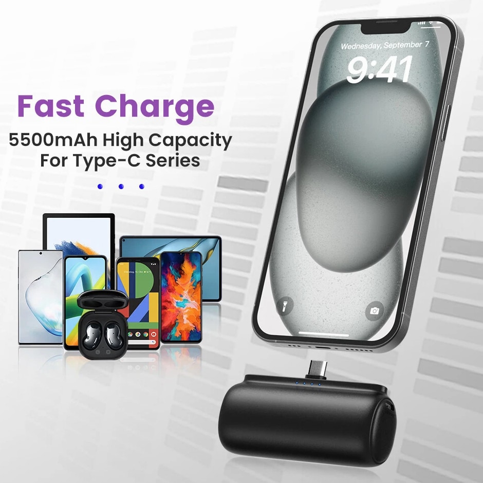 Feature: Built in Connector: Just plug into your iPhone to charge. No need for any cable and also no need to take off the phone case; attaches to phone easily. A small cap protects the connector when not in use. Compatible with any types of phones. High Capacity: Contains 5500 mAh of power. Enough to provide 1.1 times charge for Samsung Galaxy S22 S21 S20 S10 or for iPhone 15/15Pro/15plus/15 Pro max, 1.2 times for other phones. The capacity is sufficient for emergency use when going out. Ultra-Compact: Remarkably small and lightweight. So mini it's just like a lipstick or lighter. Very tiny to fit into your purse, pocket, etc. Requires less space, allows you to carry everywhere. High-Speed Charging: Fast-Charging Technology provides the fastest possible charge to any phone or tablet. Equipped with Pass-Through Function, you can charge your phone while recharging the power bank. Super Safety: Intelligent controlling IC effectively prevents your power bank from overvoltage, overcurrent and short circuit. Product Specification: - Capacity: 5500mAh / 20.35Wh - USB C Input: 5V / 2.0A (18W PD) - IOS Input: 5V / 1.5A - USB C Output: 5V / 1.5A (18W PD) - IOS Output: 5V / 1.5A - Size: 3.16''x1.42''x1.01'' - Weight: 3.15oz Package includes: 1 x 5500mAh Small Portable Charger Power Bank 1 x USB C Cable 1 x User Manual