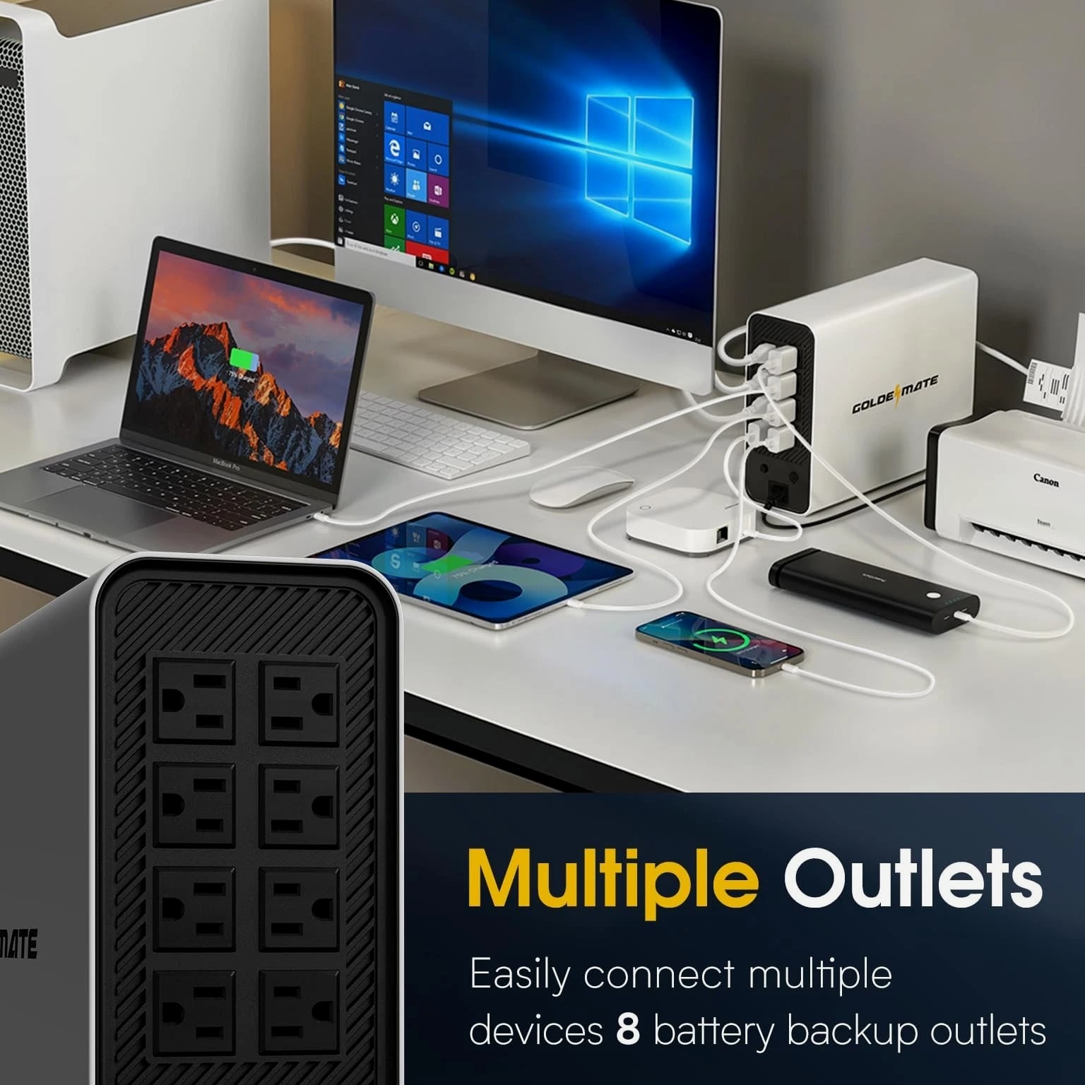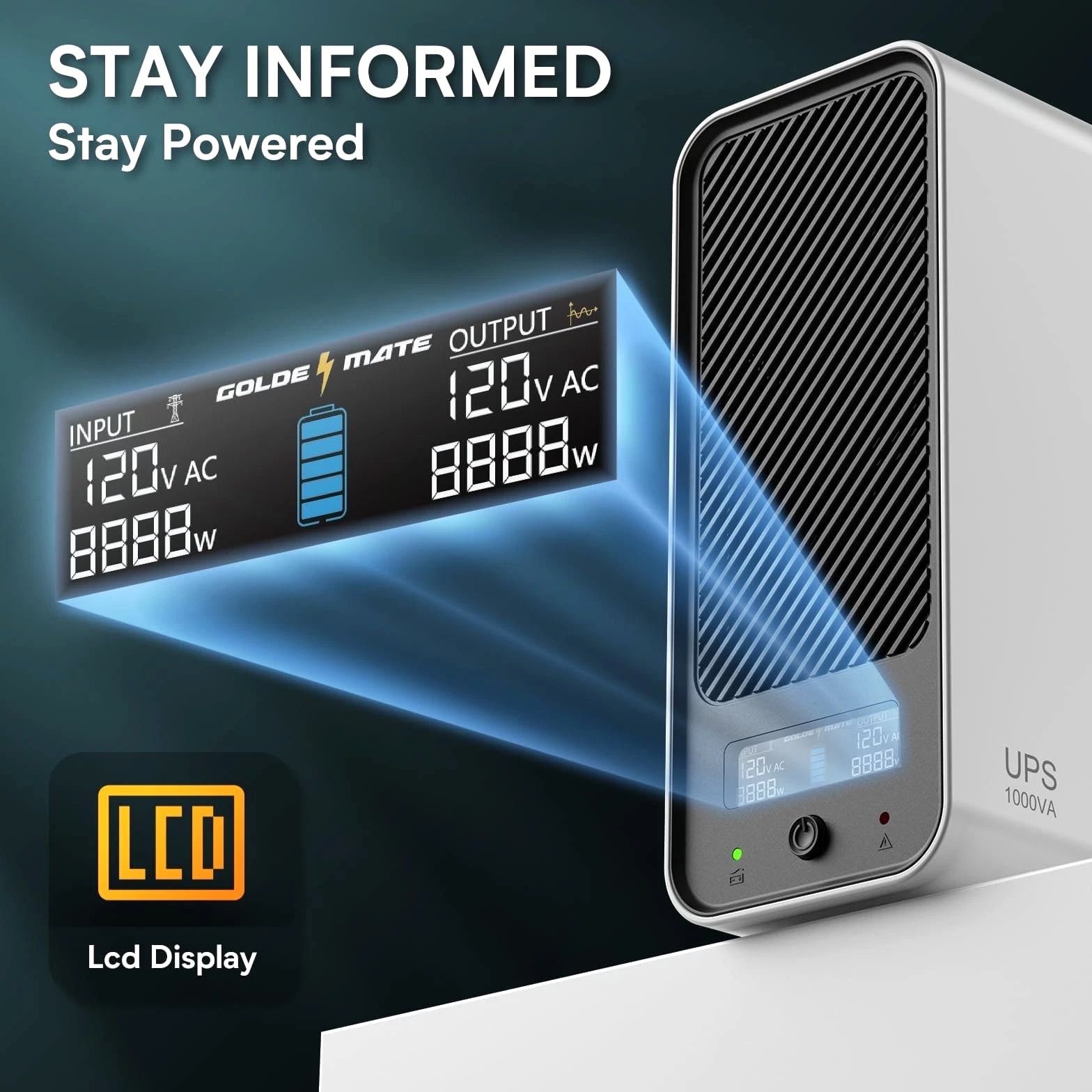 Goldenmate Back-UPS 1000VA/800W LiFePO4 Battery Backup UPS with Surge Protector