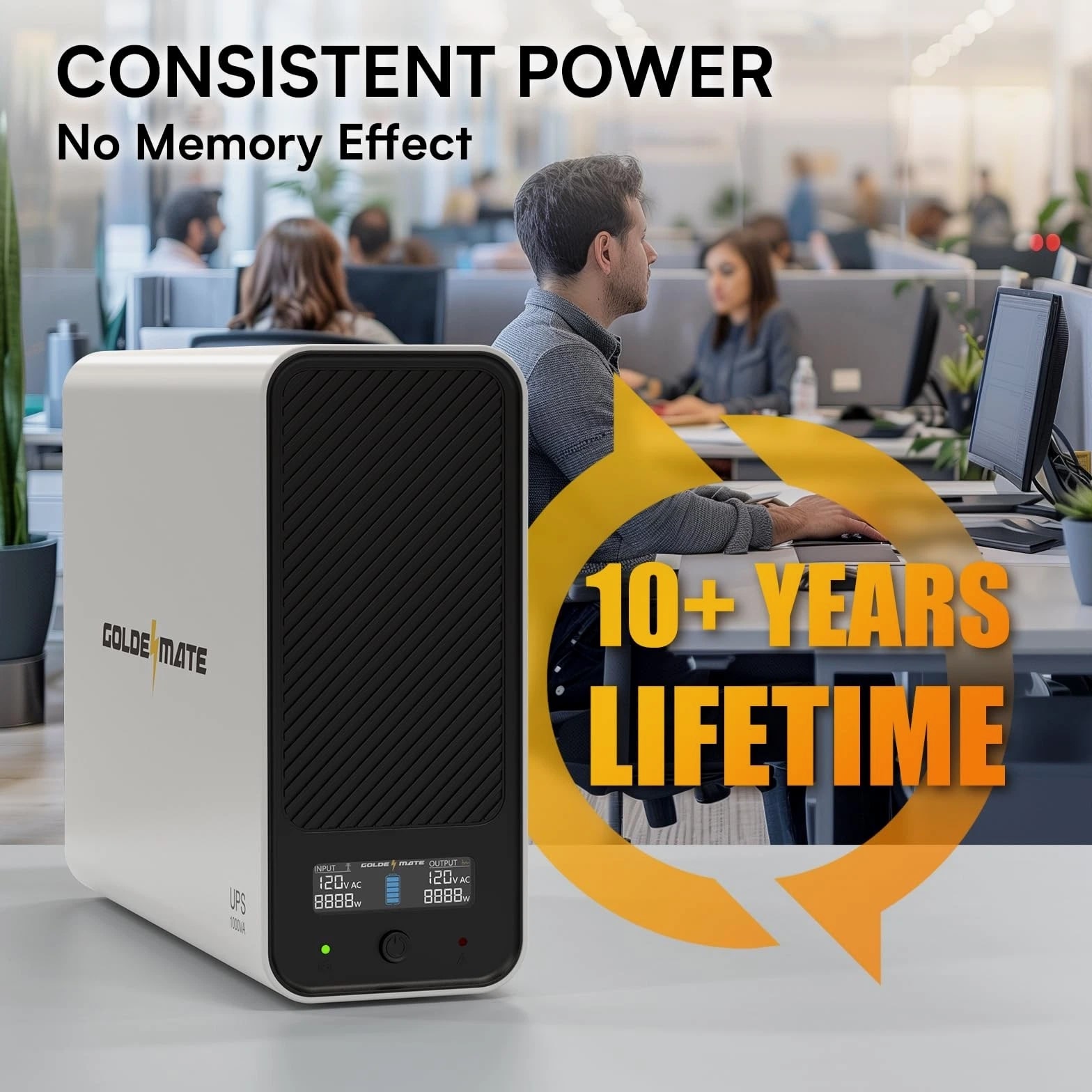 An All-around Upgraded UPS built with LiFePO4 Battery Technology Experience unmatched reliability with this UPS Back UP Power featuring EV Grade A LiFePO4 cells and a self-developed BMS offering 6 protections. Designed for all environments, it ensures a worry-free experience. Strong Performance, Harsh Environment Ready Excellent rate discharge performance, easily handles instantaneous high-current discharge. Operating temperature range from -20°C to +60°C, maintains stable output in harsh environments. LiFePO4 Battery UPS: Redefining Power Reliability In today's digital age, heavily reliant on stable power, our LiFePO4 Battery UPS, with its exceptional performance and intelligent design, becomes the ideal choice for ensuring the uninterrupted operation of critical equipment. Safe & Reliable, Worry-Free Choice LiFePO4 material offers stable electrochemical performance, won't combust or explode even when damaged. Built-in comprehensive BMS provides multiple protections including over-charge, over-discharge, over-current, short circuit, and temperature protection. Ultra-Compact, Space-Saving Design With a high energy density design, it occupies only 1/3 to 2/3 the volume of traditional lead-acid batteries and is about 60% lighter, significantly saving valuable server room space.