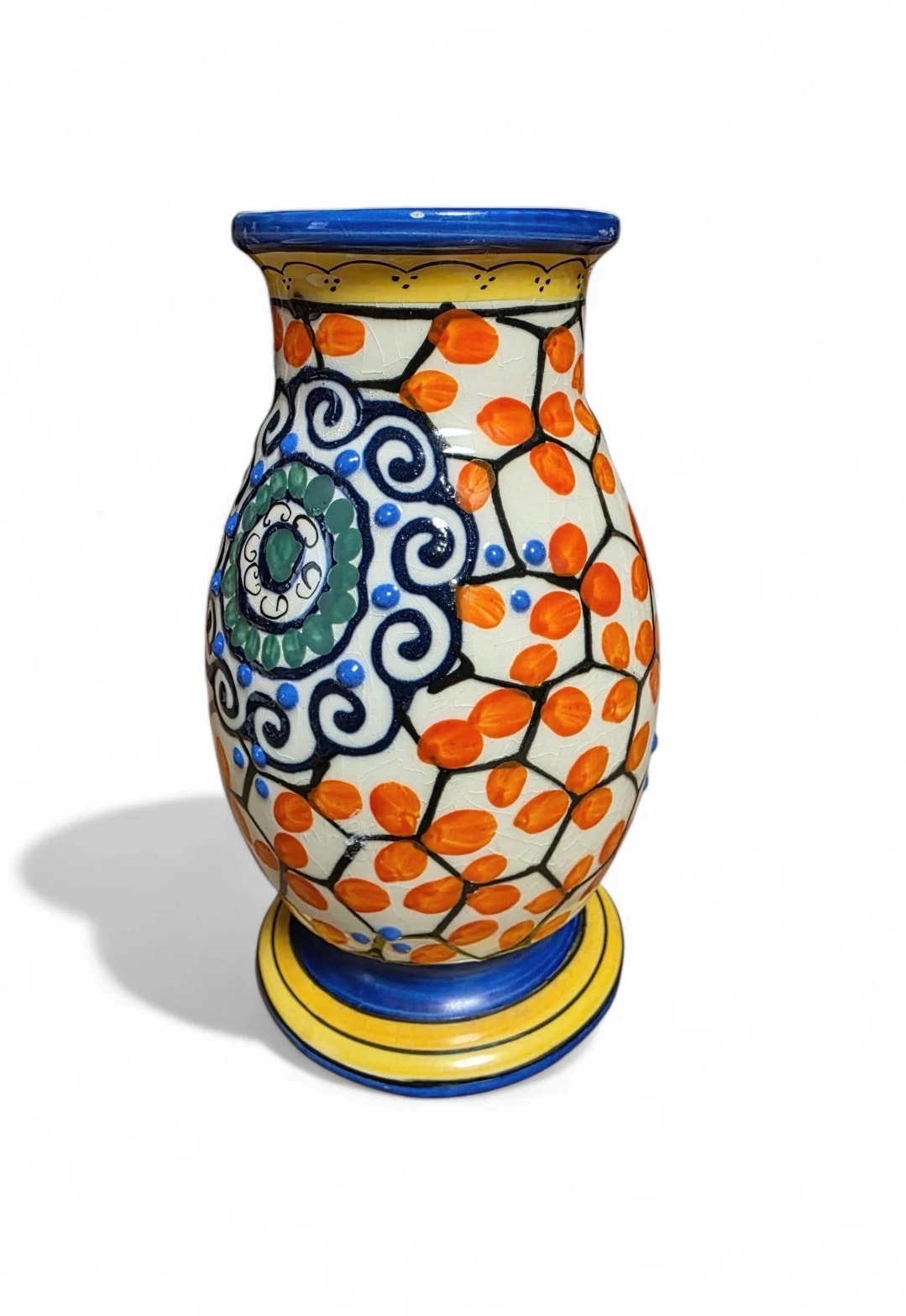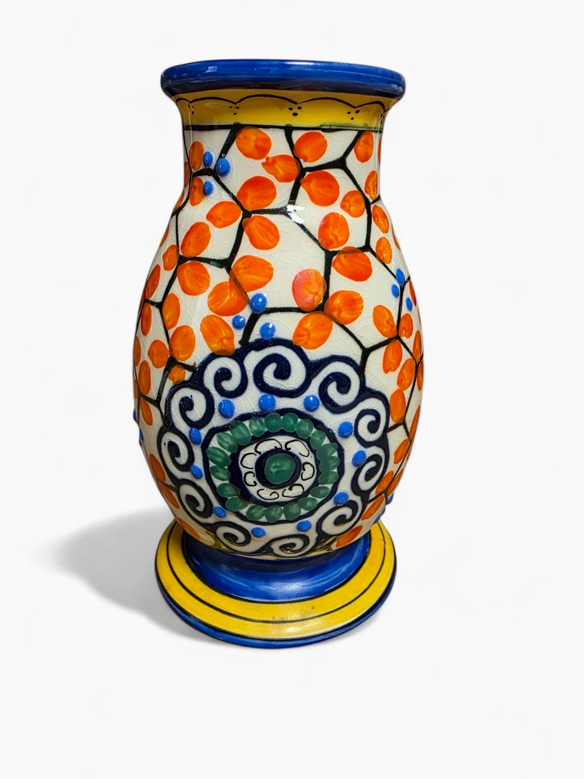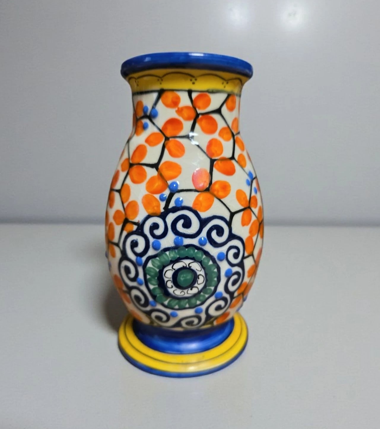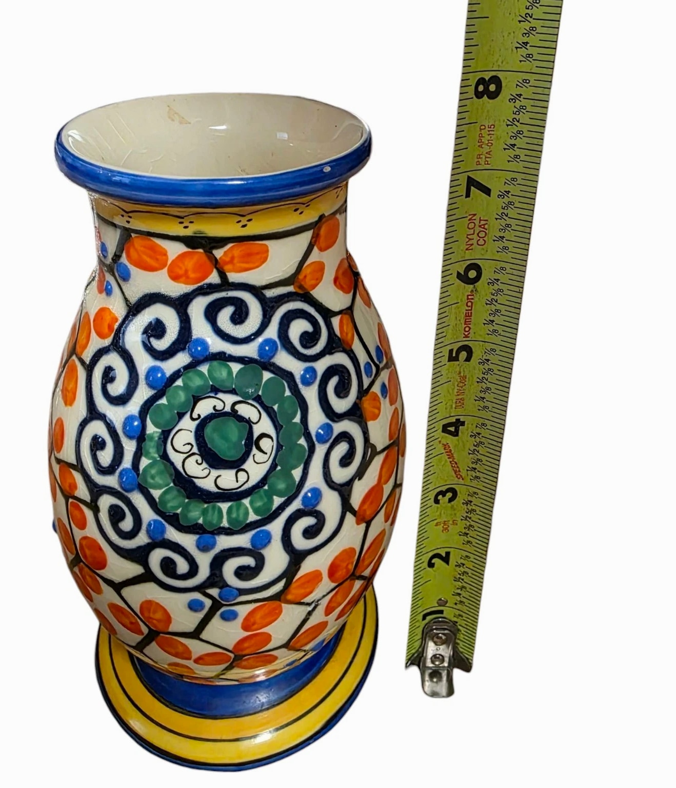 VTG Art Deco Hand Painted Ceramic Vase from Czechoslovakia Pottery Decor