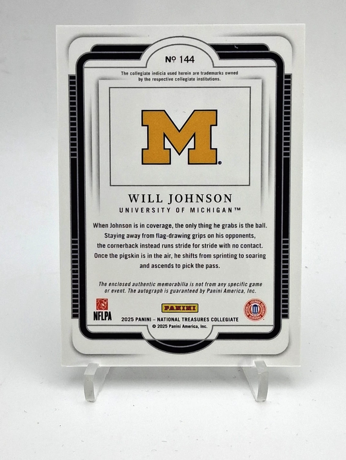 Will Johnson 2025 National Treasure Collegiate RC Bowl Patch /39 On-Card Auto