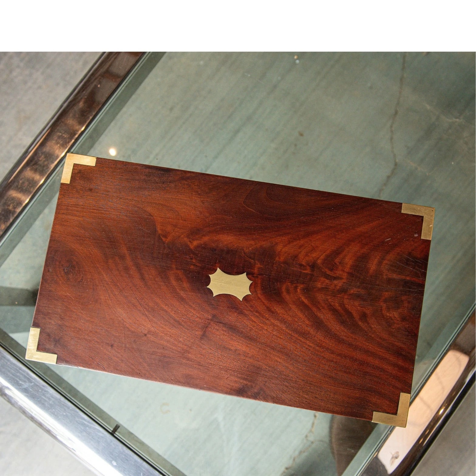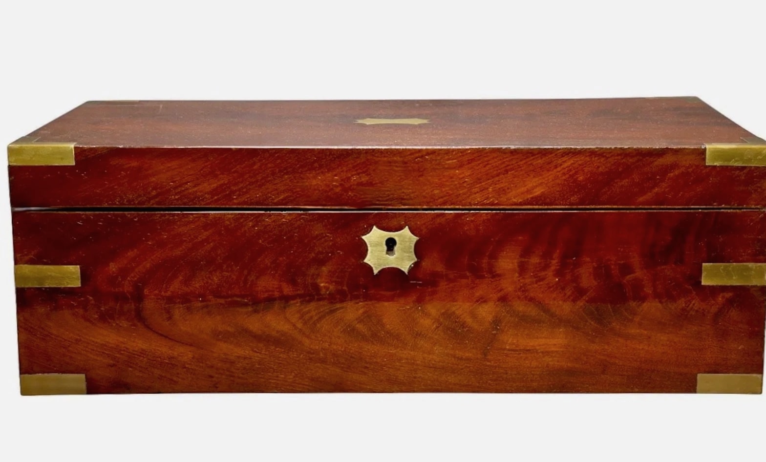 Antique English Mahogany Writing Slope Brass-Bound Travel Desk VR Crown 19th Century