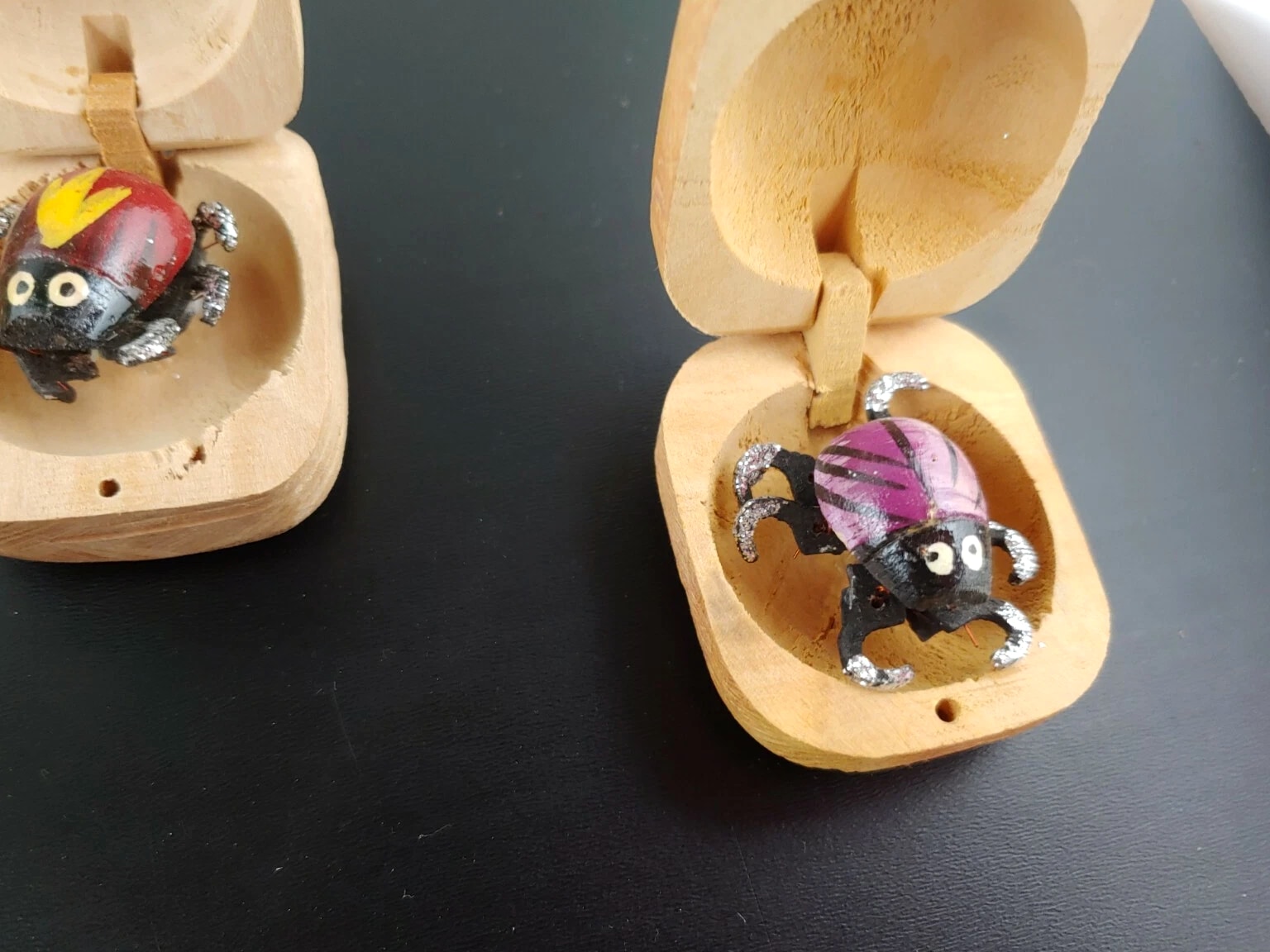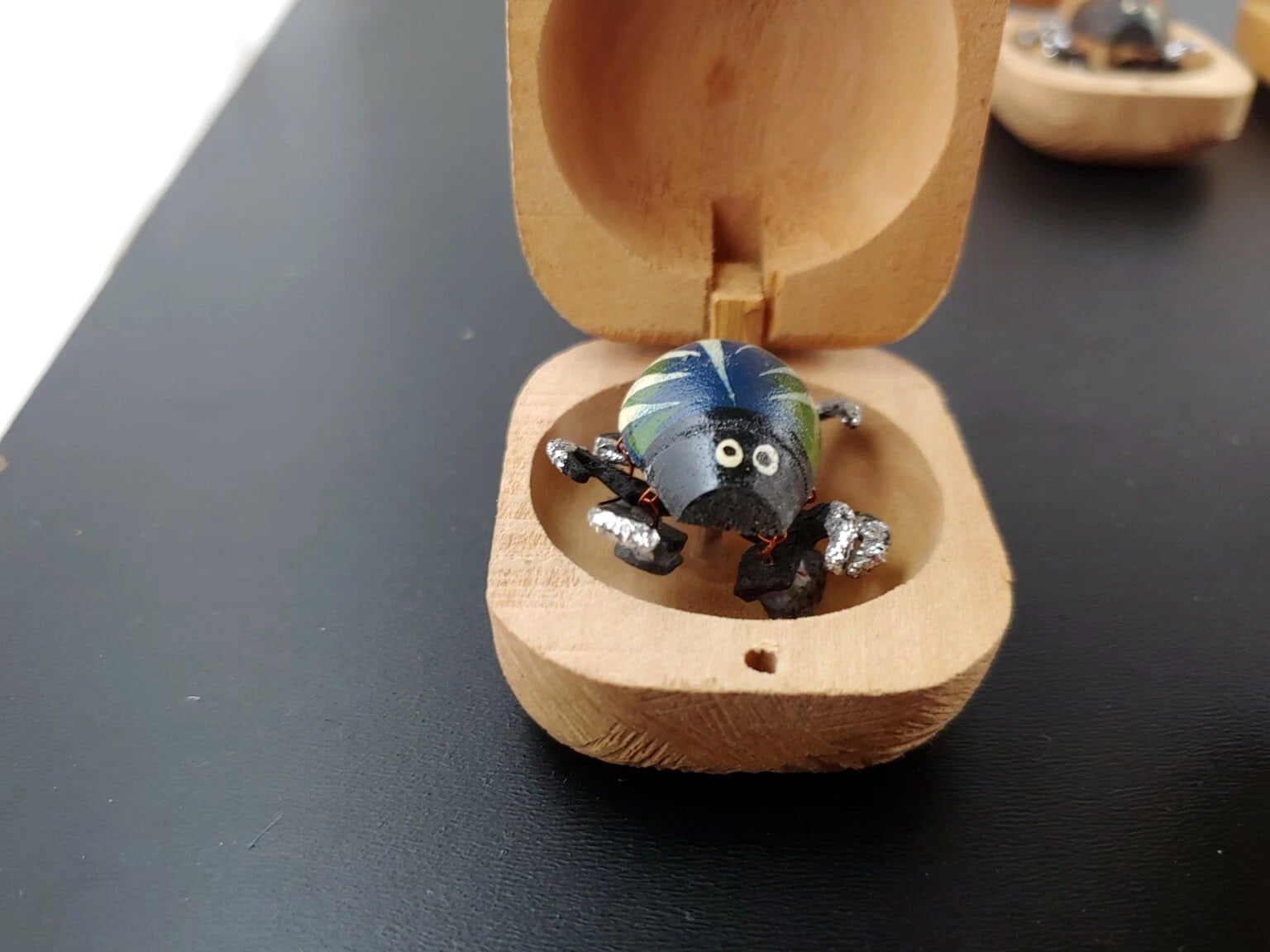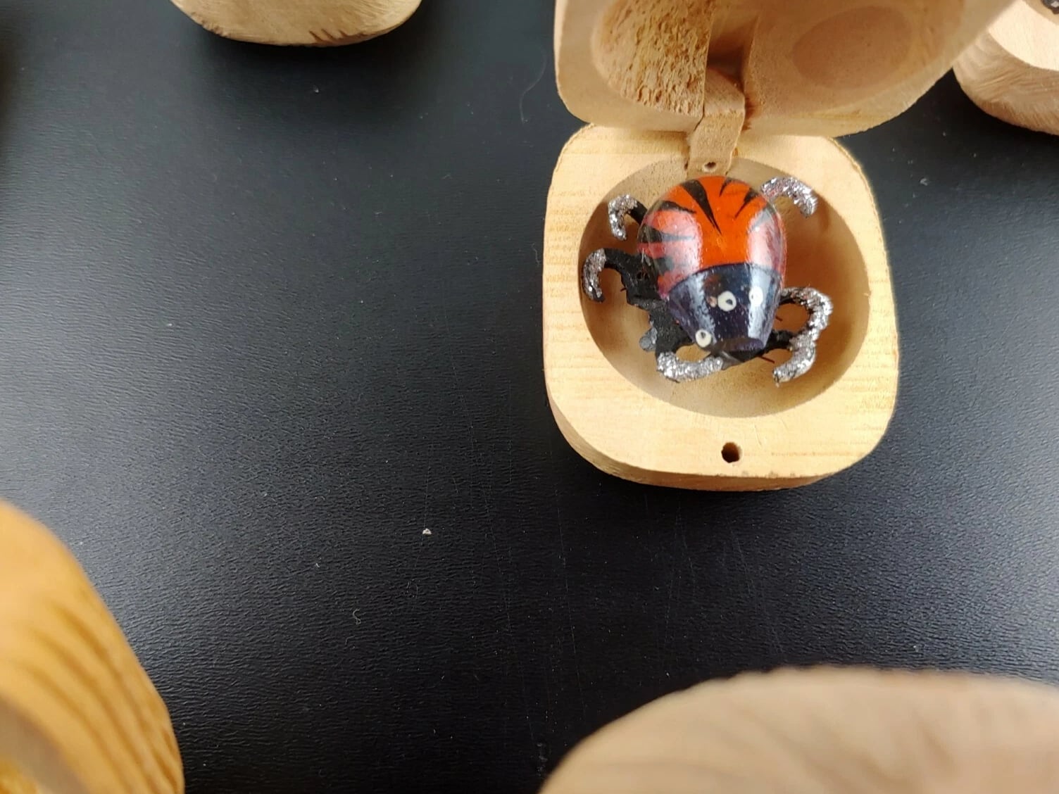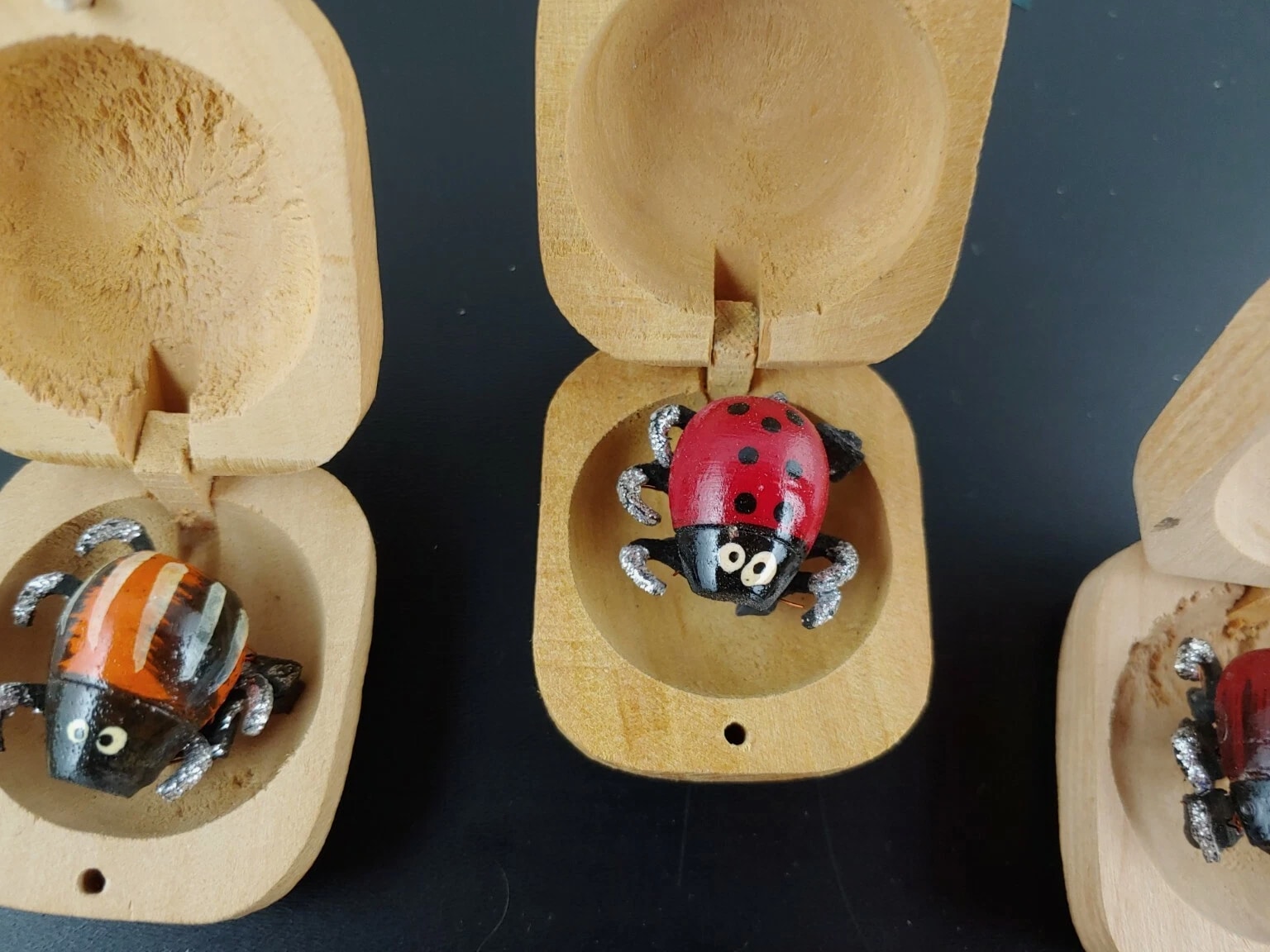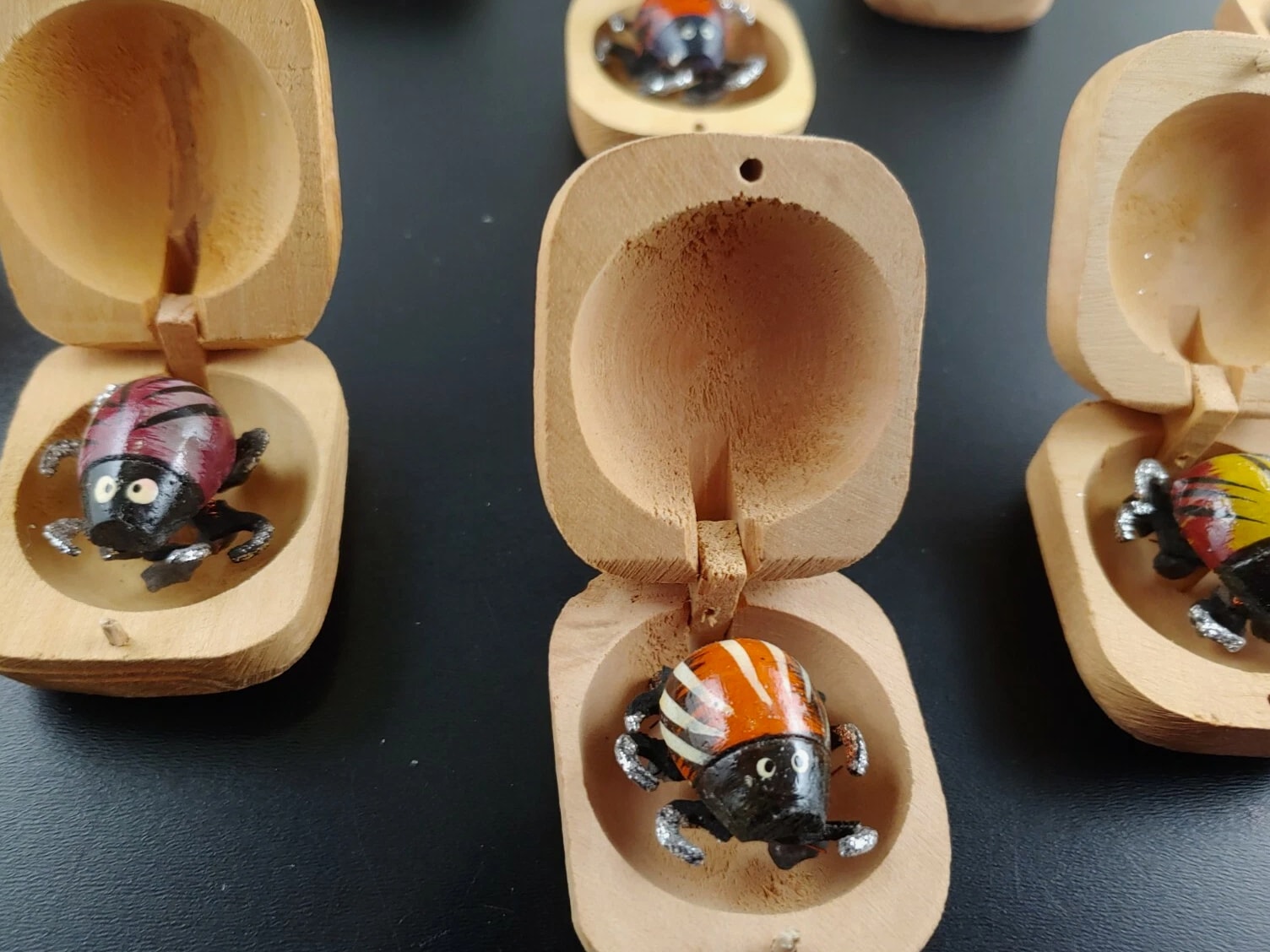 Handmade Bug In A Box Gag Toy Gift - Moving Legs Novelty Bug in a Nut Vintage Wood