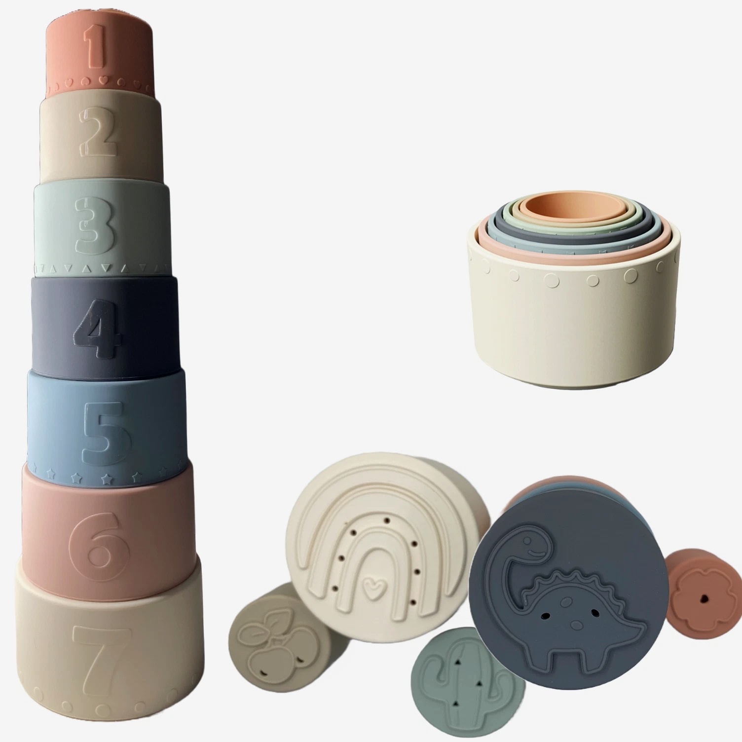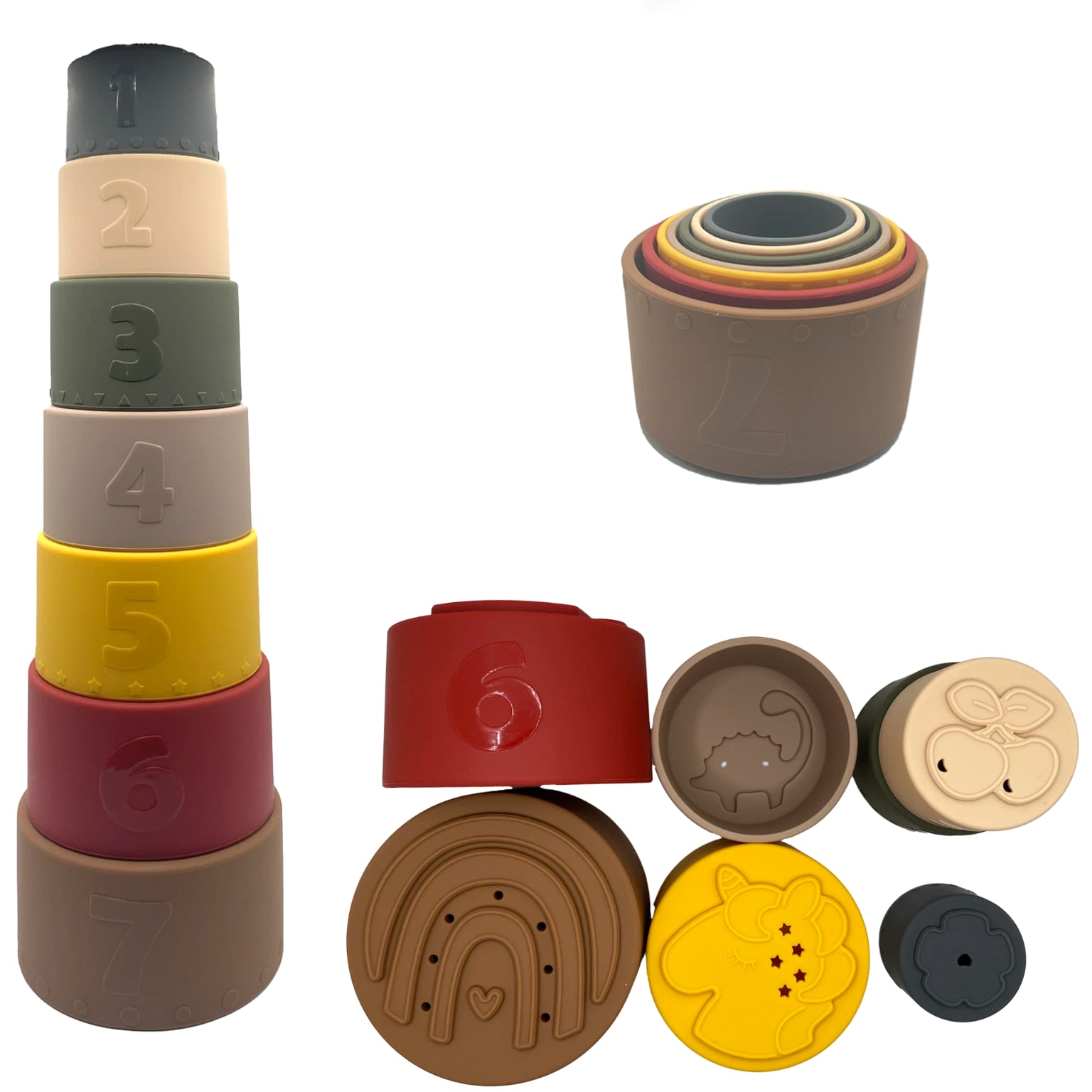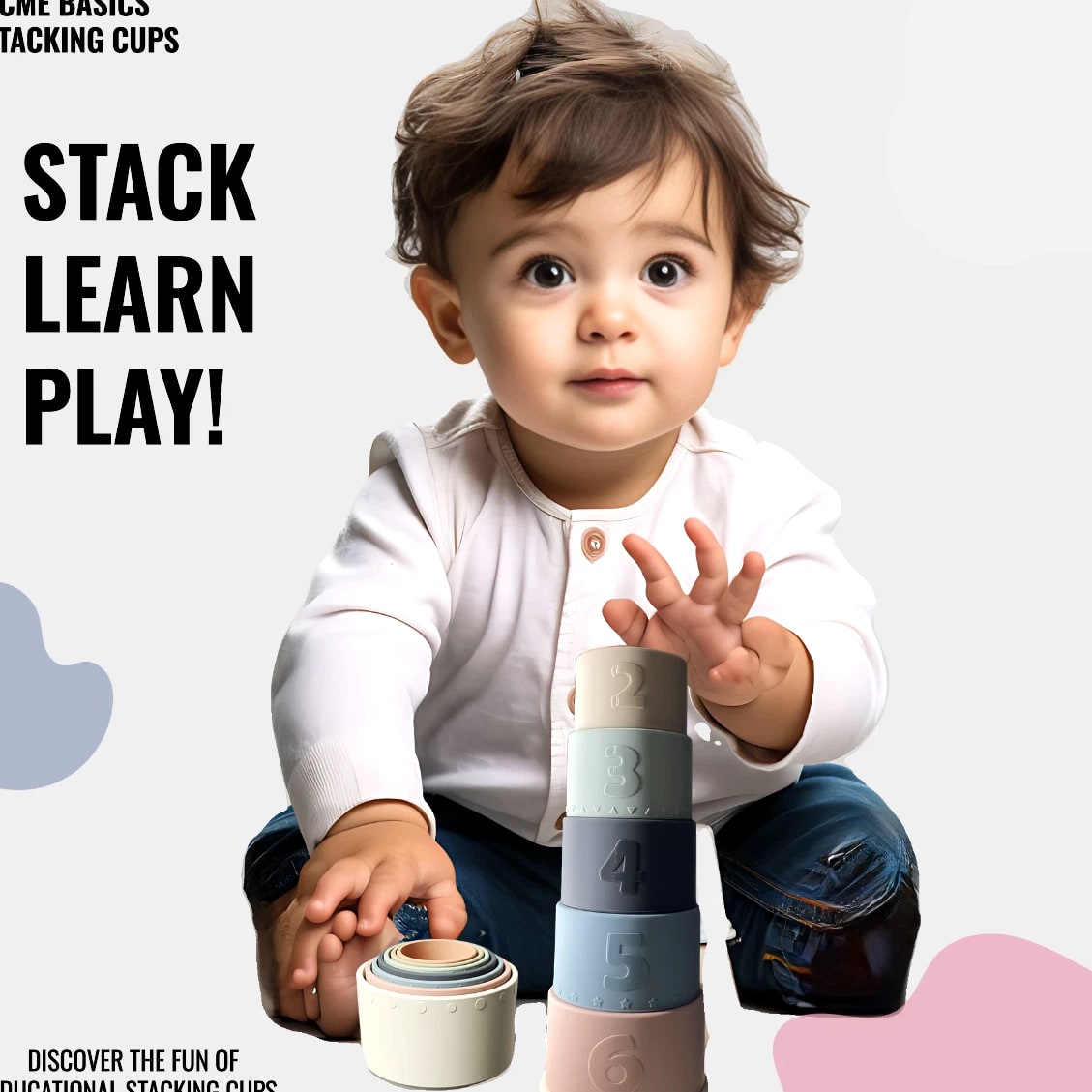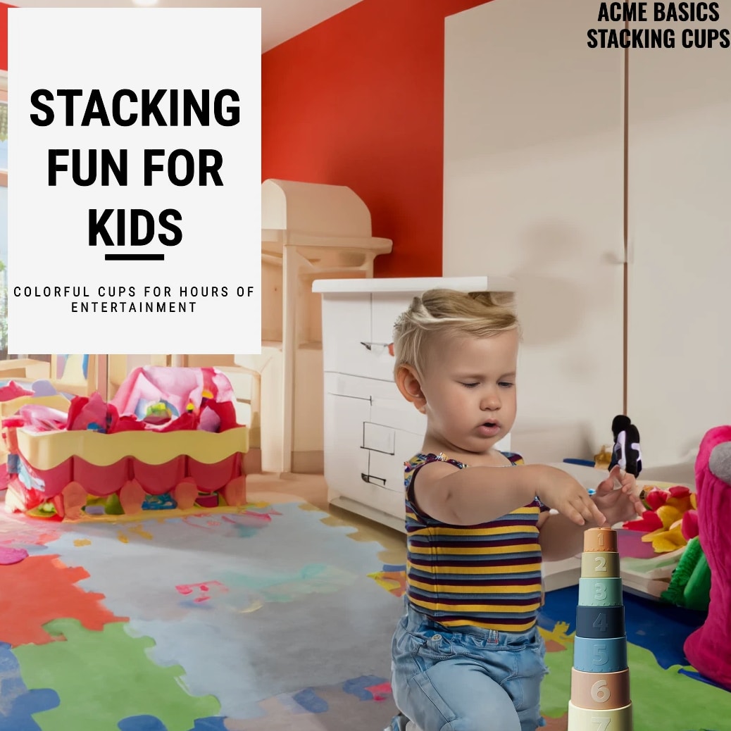 Acme Basics Silicone Stacking Cups Baby Toys for Toddlers & Early Education (7 pcs set) NEW Product Description: Acme Basics Silicone Stacking Cups are the perfect toy for your baby 6+ months! With its Montessori-inspired design, this activity set provides stimulating learning experiences with every interaction. Each piece includes bright colors and patterns to help develop your little one's visual skills. Plus, each of the stacking cups has a different shape that can be used as both teethers and building blocks, helping to boost cognitive development and fine motor skills as they play. Product Features: Early Education: These Montessori toys are designed for use by babies 0-12 months and 2+ year olds, introducing shapes, colors, numbers, and hands-on activities in a safe developmentally appropriate way. In addition to being fun and educational, these silicone stacking cups also help to develop your baby's fine motor skills 100% Safe Material: These BPA-free, non-toxic cups are made of soft, flexible silicone that is safe for babies to chew on. They are also dishwasher safe and easy to clean. Colorful Design: The Acme Basics Silicone Stacking Cups are perfect for baby toys ages 6+ months, featuring bright and colorful designs to engage toddlers. Fun Activity: These silicone stacking cups are a great way to keep your baby entertained and engaged. The cups can be used for a variety of other activities, such as filling with water, sand, or rice. They can also be used as bath toys or as teething rings. What's in the box: 7 Pcs Baby Silicone Stacking Cups Return Policy: 100% MONEY BACK GUARANTEE. We hope you'll love our Stacking Cups. If you're not completely satisfied, or if this product isn't suitable for your needs, just return them within 30 days and we'll issue a full refund