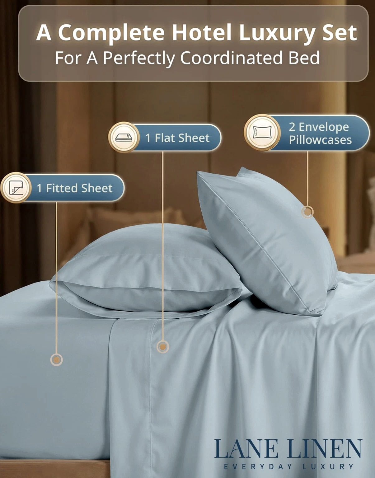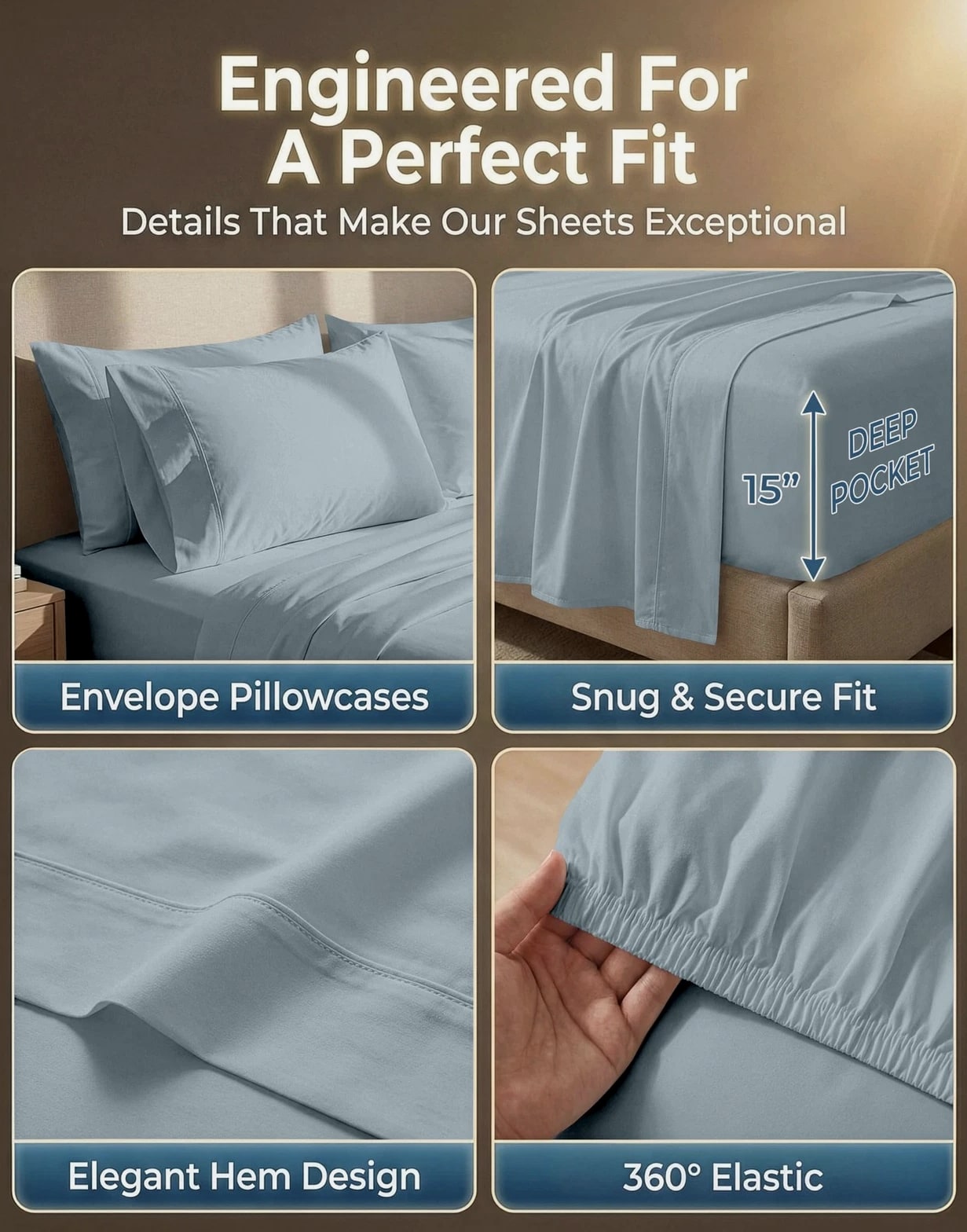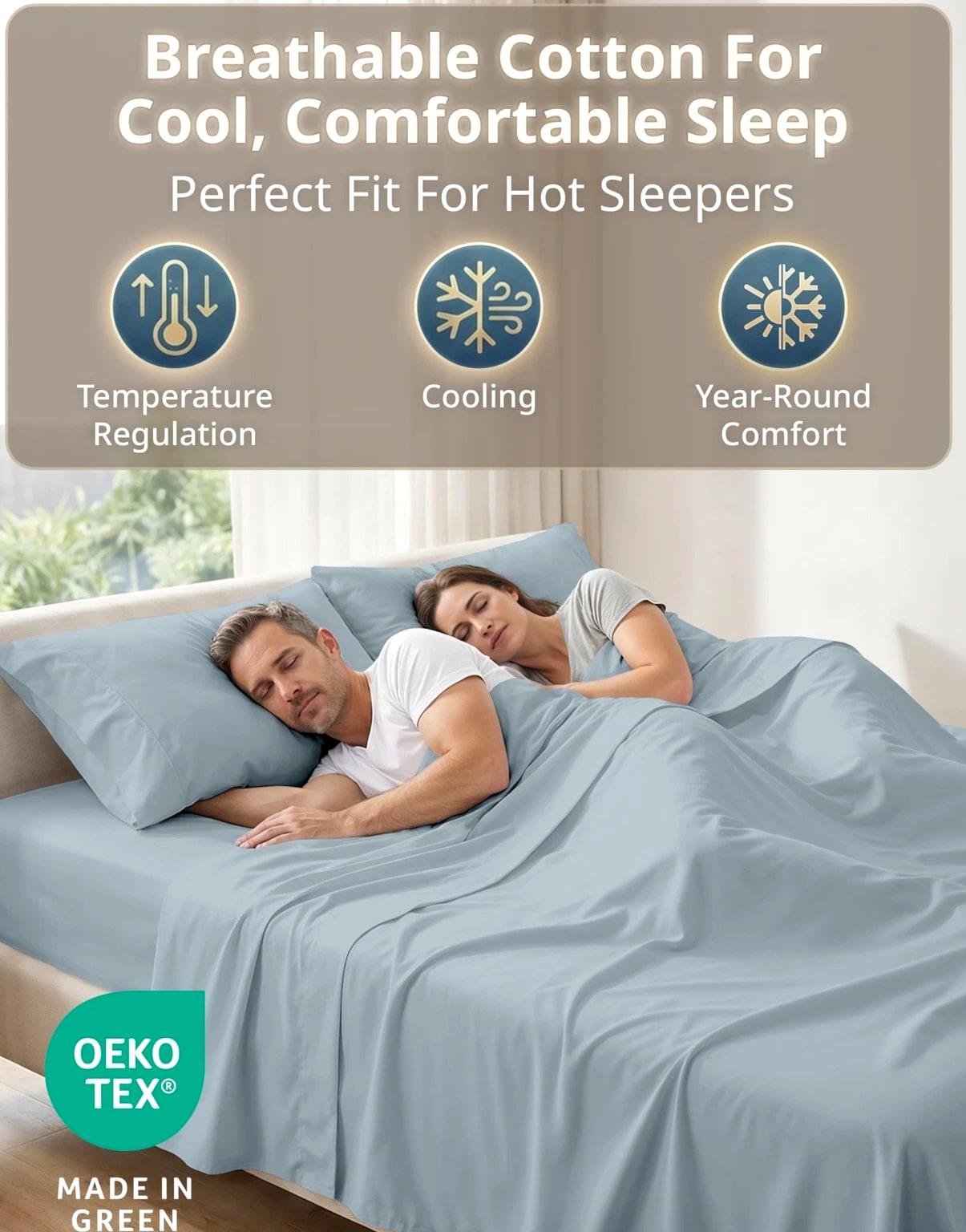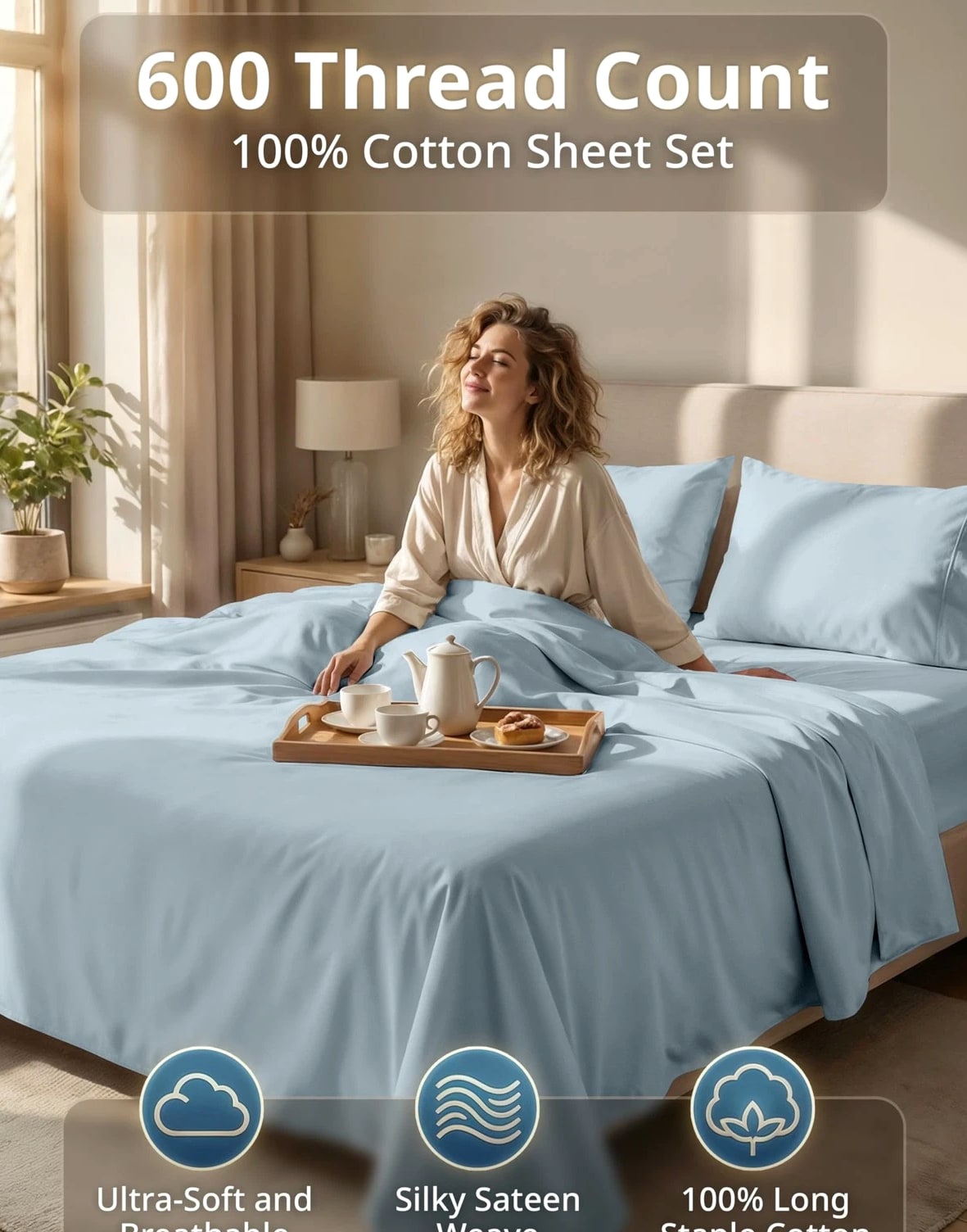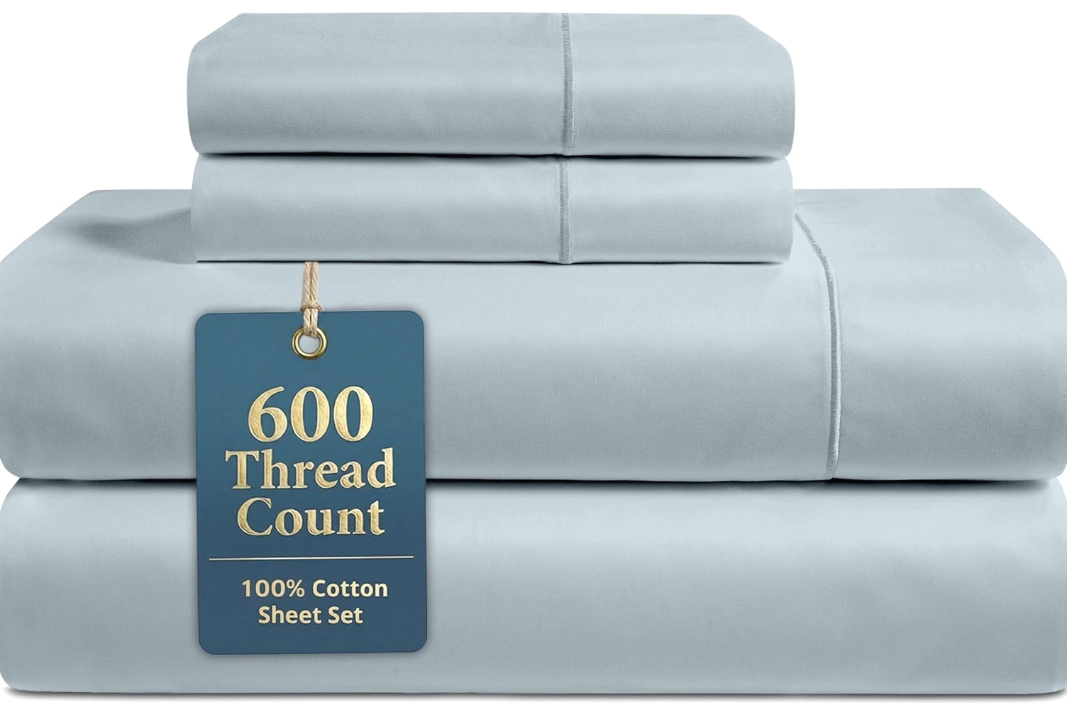 King Bed Sheets 600 Thread Count Long-Staple 100% Cotton King Size Bed Sheets, Hotel Luxury Soft Silky Sateen Weave, Durable for Daily Use, Fully Elasticized 15" Deep Pocket Blue 600 THREAD COUNT KING SHEETS SET : 600 thread count king size cotton sheets are made from 100% long-staple cotton with a smooth sateen weave for a soft, silky feel. With reinforced, tightly woven fibres, these sheets are also durable and quite resilient, while providing luxury year round comfort. 4 PIECE SET : Includes 1 flat sheet (112" 104"), 1 fitted sheet (78" 80") with a 15 inch deep pocket, and 2 king pillowcases (20" 36"). HOTEL COLLECTION SHEETS : Upgrade your bedding with hotel-style king sheets featuring elegant hem detailing and a silky-smooth cotton sateen finish. A clean, polished look that complements all bedroom decor and guest rooms. WASH CARE INSTRUCTIONS : These cotton sheets are machine washable and tumble dry friendly. Care tip: avoid harsh detergents, heavy fabric softeners, and high-heat drying to help reduce shrinking, pilling, and premature wear. GIFT-READY PACKAGING : These sheets are OEKO TEX 100 certified and are packed in a reusable cotton fabric bag ideal for being the perfect gift for housewarming parties, weddings, college move-ins, etc