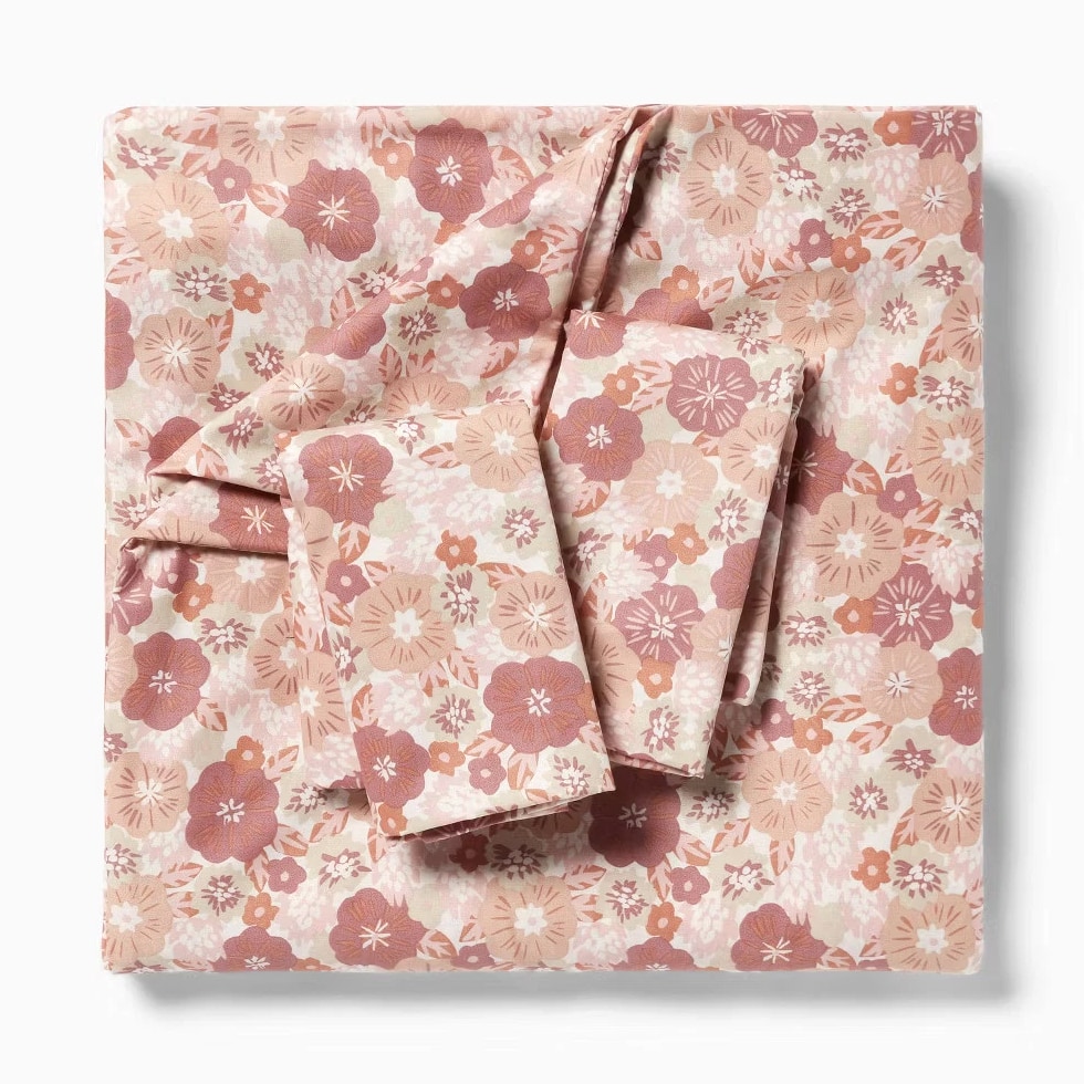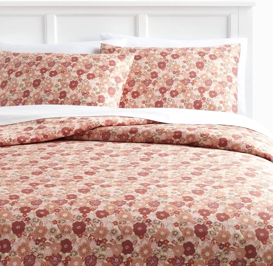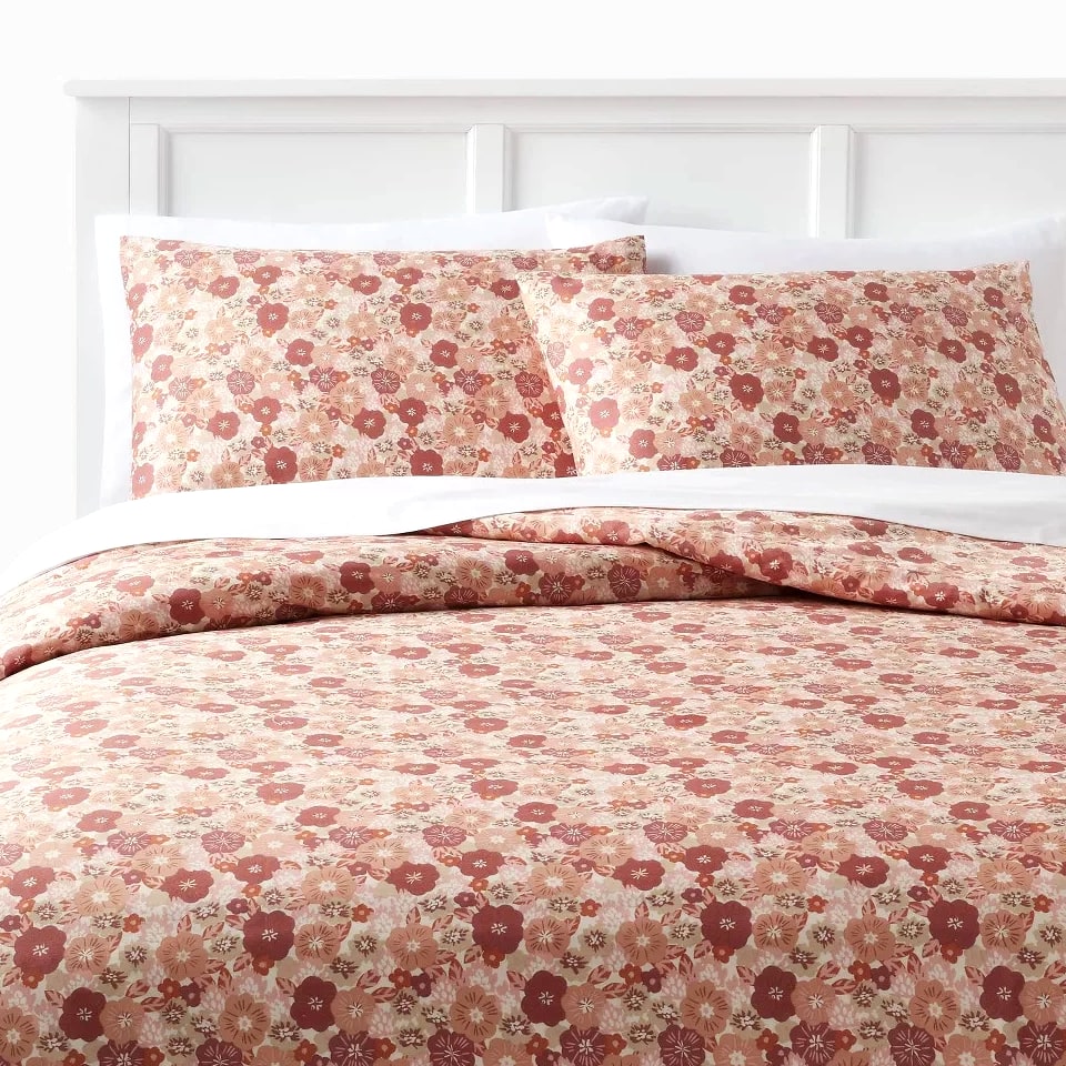 Full/Queen Printed Easy-Care Duvet Cover and Sham Set, Copper/Light Pink Floral