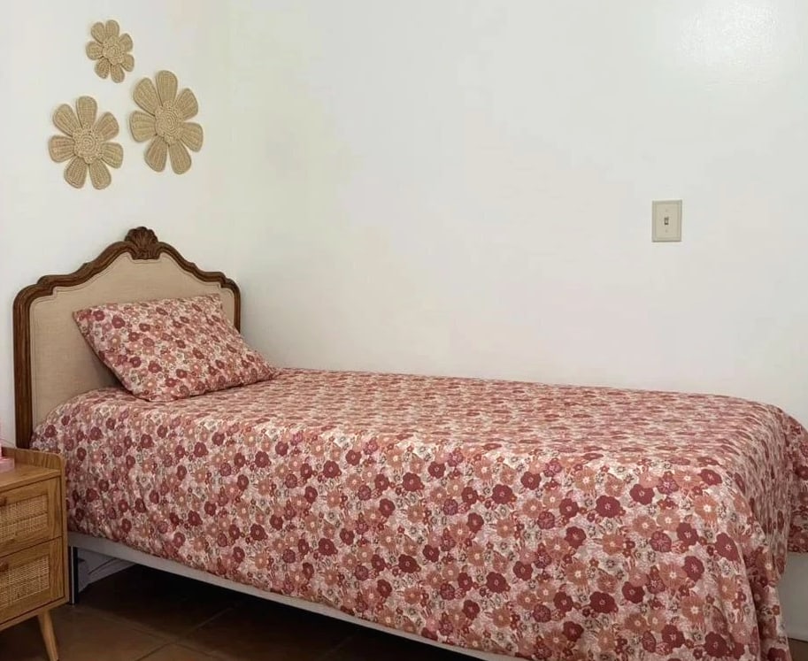 Full/Queen Printed Easy-Care Duvet Cover and Sham Set Copper/Light Pink Floral - Room Essentials Product Details • Solid duvet cover and sham set • Includes duvet cover and 1–2 shams • Soft sateen fabric • Duvet cover features button closure • Machine-washable design • Fabric made of 60% cotton and 40% recycled polyester • Standard 100 by OEKO-TEX certified Description Transform your bedroom into a cozy and inviting space with this Easy-Care Duvet Cover and Sham Set from Room Essentials. This set includes a duvet cover and 1–2 shams, all made from midweight sateen fabric for a soft and luxurious feel. Designed in a solid hue, each piece in this duvet cover set easily coordinates with your existing room decor, allowing you to decorate your sleeping nook just the way you like. The simple button closure on the duvet cover and end closure on the shams make it easy to change the inserts, while the machine-washable design allows for easy cleaning whenever needed. Room Essentials: Everyday Value Number of Pieces: 3 Piece 1: Duvet cover: 92 Inches (L) x 88 Inches (W), Quantity 1 Piece 2: Pillow Sham: 26 Inches (L) x 20 Inches (W), Quantity 2 Closure Type: Duvet Cover: Button, Pillow Sham: End Closure Fabric Name: Sateen Textile Material: 60% Cotton, 40% Recycled Polyester Style: Duvet Cover Bedding Sets Backing Material: 0% No Backing Includes: 2 Shams, duvet cover Thread Count: 225 Industry or Government Certifications: OEKO-TEX STANDARD 100 Fabric Weight Type: Midweight Fabric OEKO-TEX Institution: HOHENSTEIN HTTI OEKO-TEX Certification Number: 21.HPK.80875 Care and Cleaning: Machine Wash, Tumble Dry Payment For fixed priced listings, Buy it Now and Best Offer, payment is required at the time of purchase. We accept PayPal and credit cards via PayPal. We make every effort of shipping within 1 business day of payment clearing. All payments must be through PayPal, utilizing checkout.