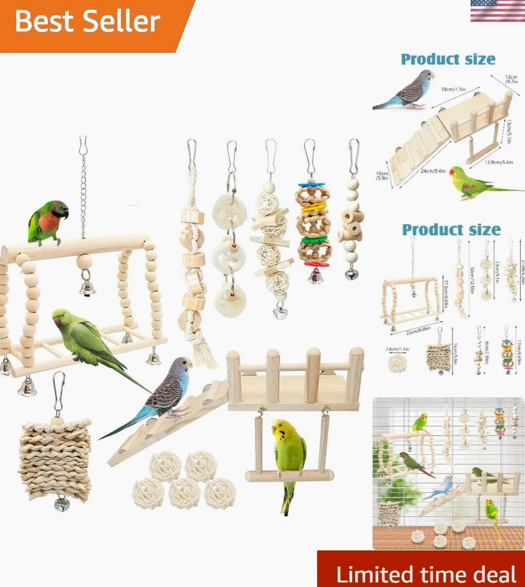 13 Pcs Hanging Bird Toys Set with Perches & Chew Toys - Ideal for Parakeets