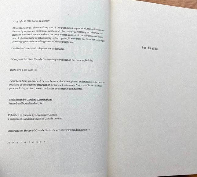 Never Look Away by Linwood Barclay (Hardcover, First Edition) Outstanding Condition