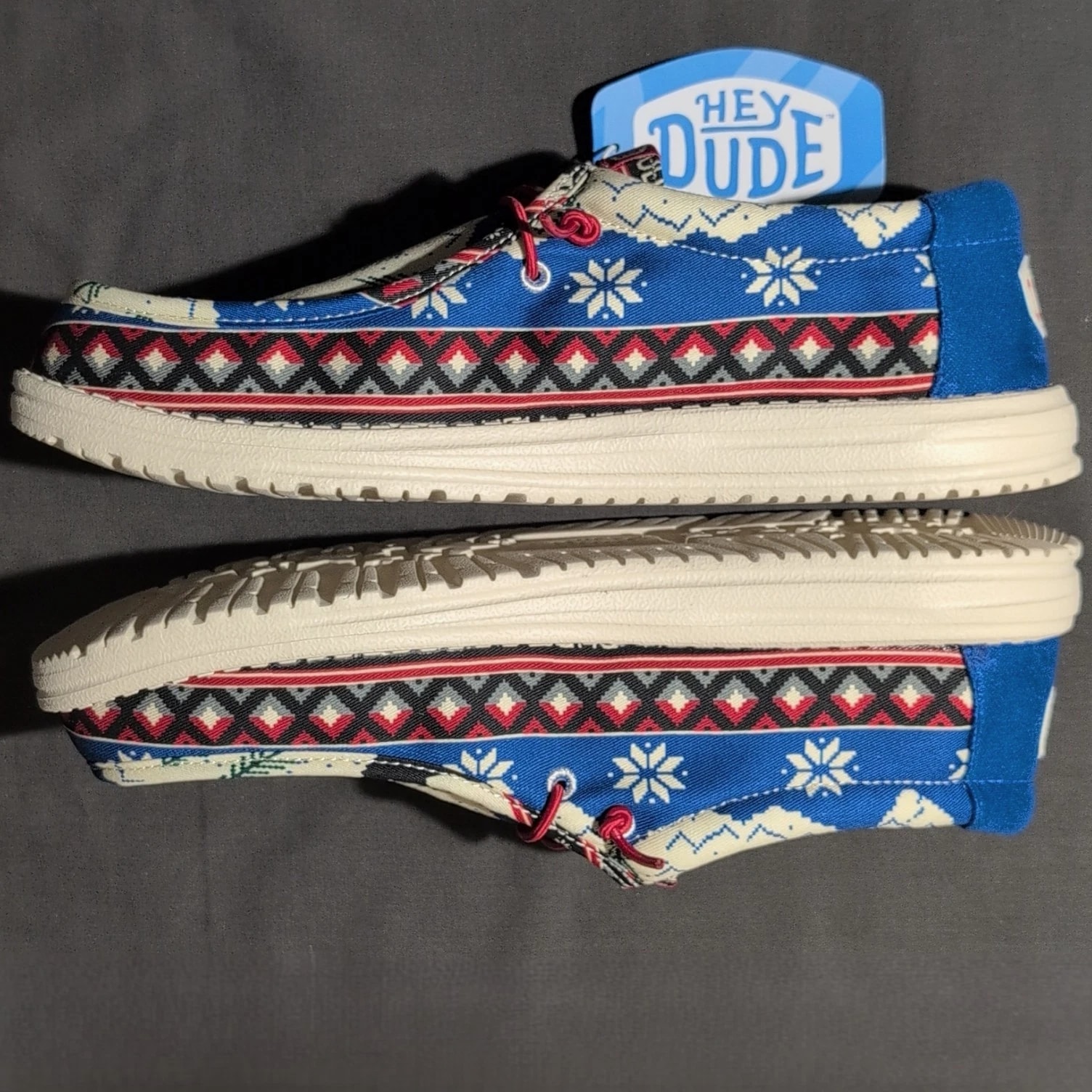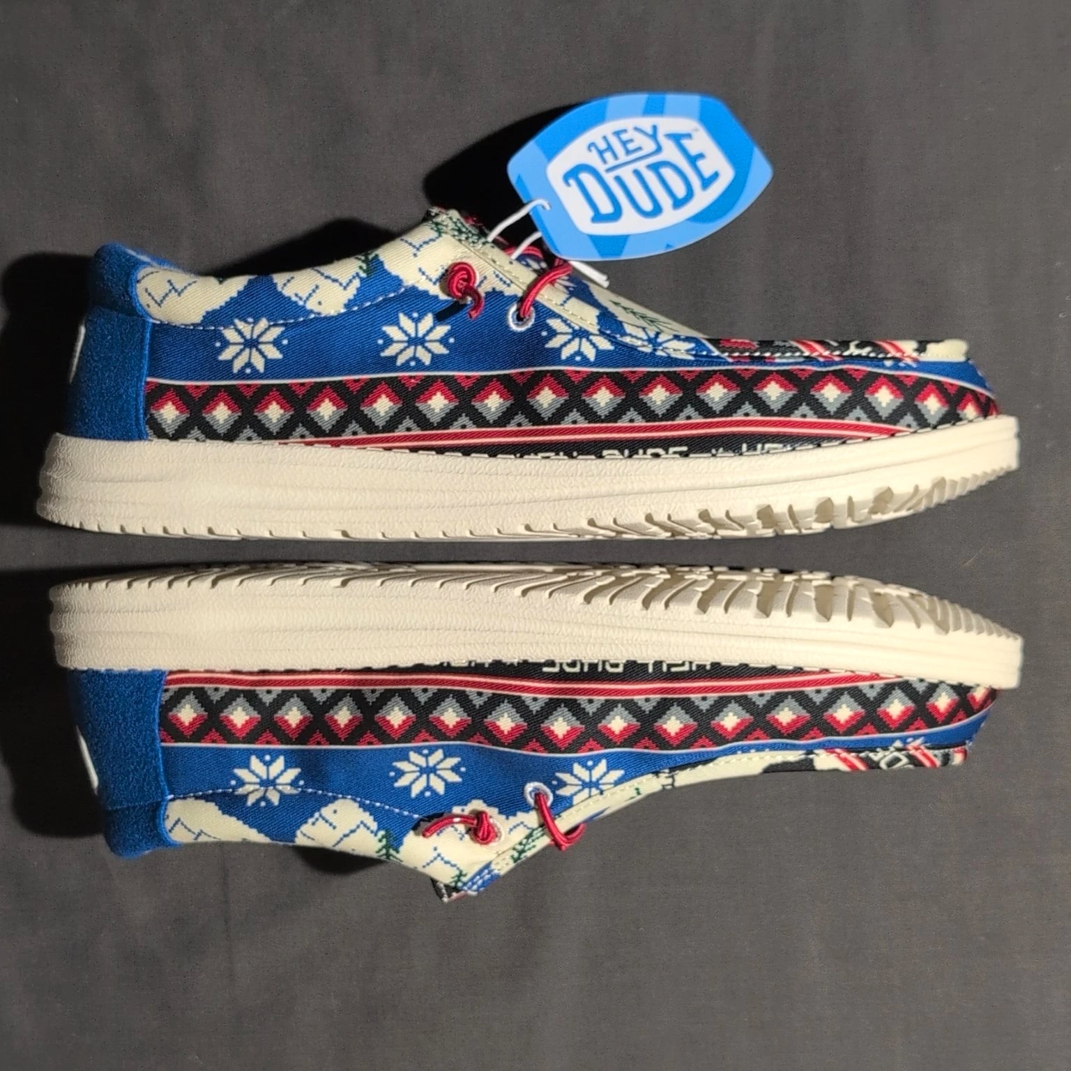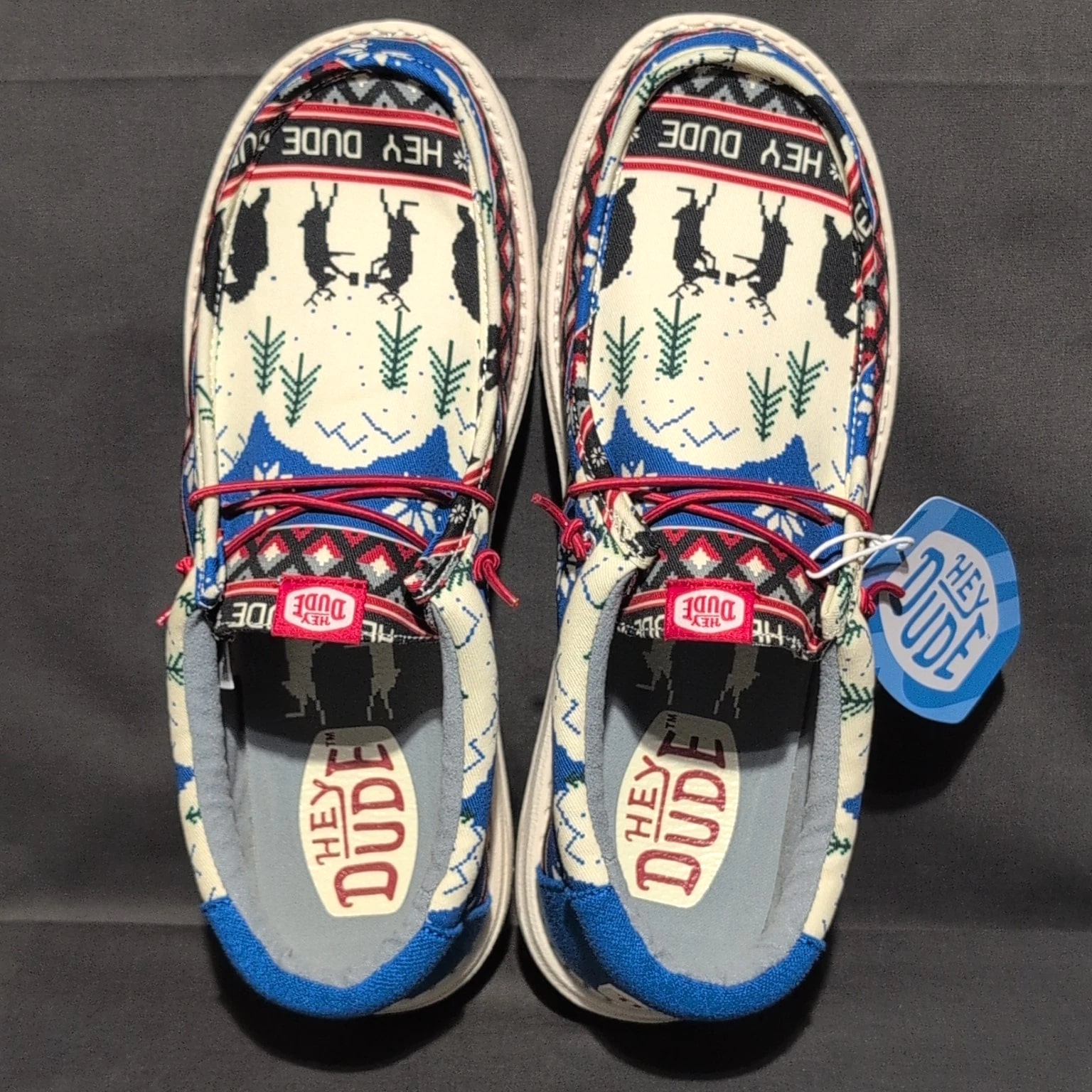 Hey Dude Wally Holiday Cheers Men's 12 Blue Christmas Slip-On Loafers