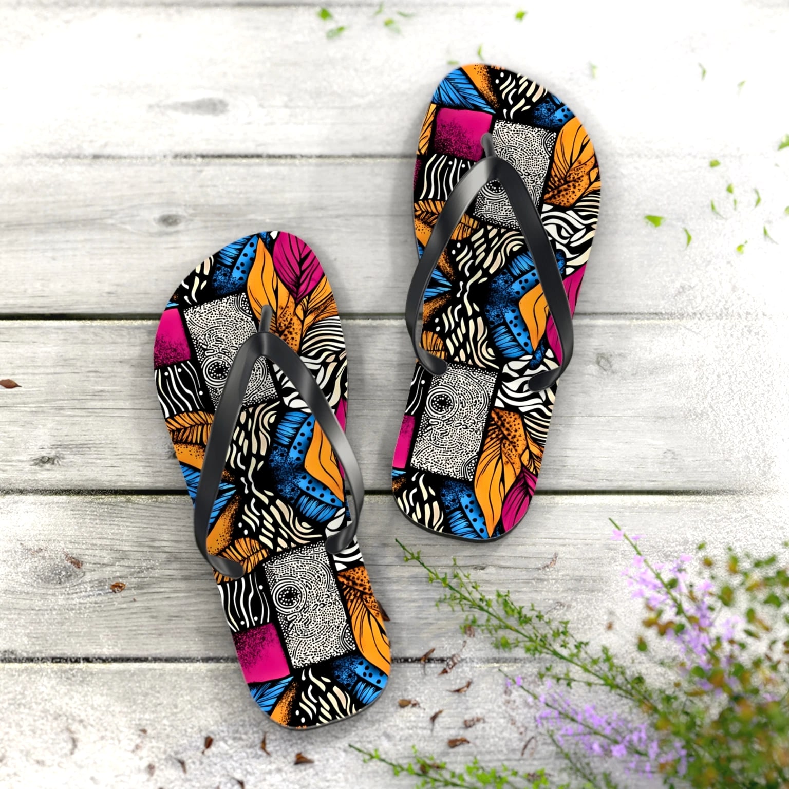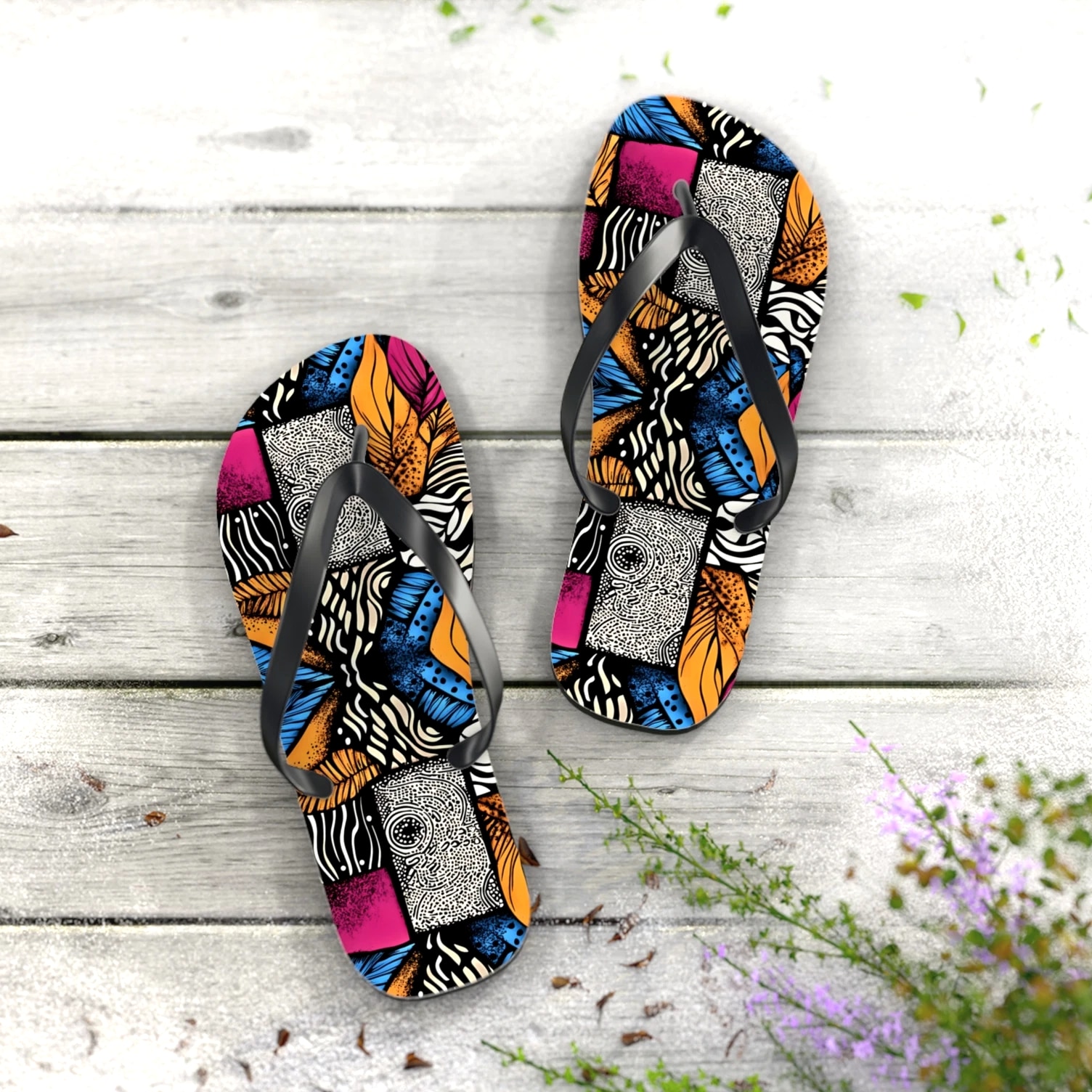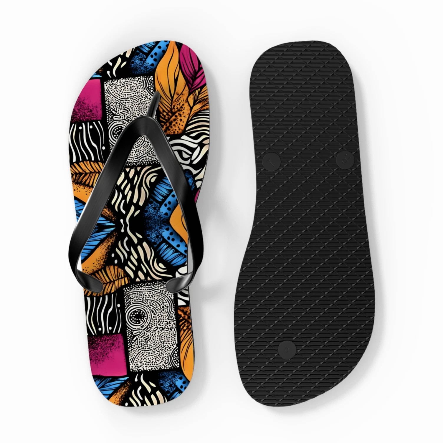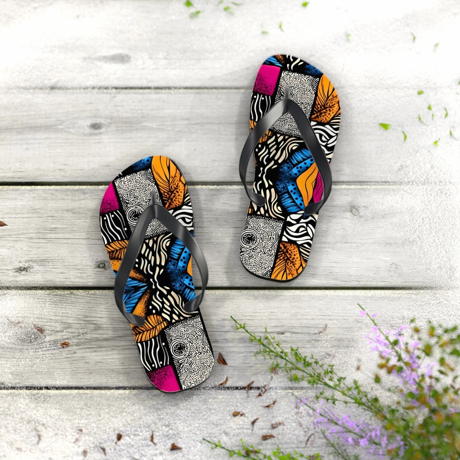 Step into comfort and style with these vibrant Flip Flops! Perfect for sunny days at the beach, pool parties, or casual walks in the park, these sandals are designed to brighten your summer wardrobe. Their colorful, eye-catching designs will make you stand out, while the slip-resistant sole ensures safety on wet surfaces. Ideal for fashion-conscious individuals who love to express personality, these Flip Flops are great for vacations, barbecues, and holidays like Independence Day or summer festivals. Enjoy every moment with trendy footwear that complements any casual outfit! Product features - 100% polyester suede for soft comfort - Lightweight EVA sole with rubber-like flexibility - Vibrant colors using advanced printing techniques - Slip-resistant textured bottom for safety - Available in multiple sizes Care instructions - To maintain cleanliness, use warm water with dish soap to remove dirt spots. Soaking is not necessary. For stubborn marks, use a soft-bristled brush.
