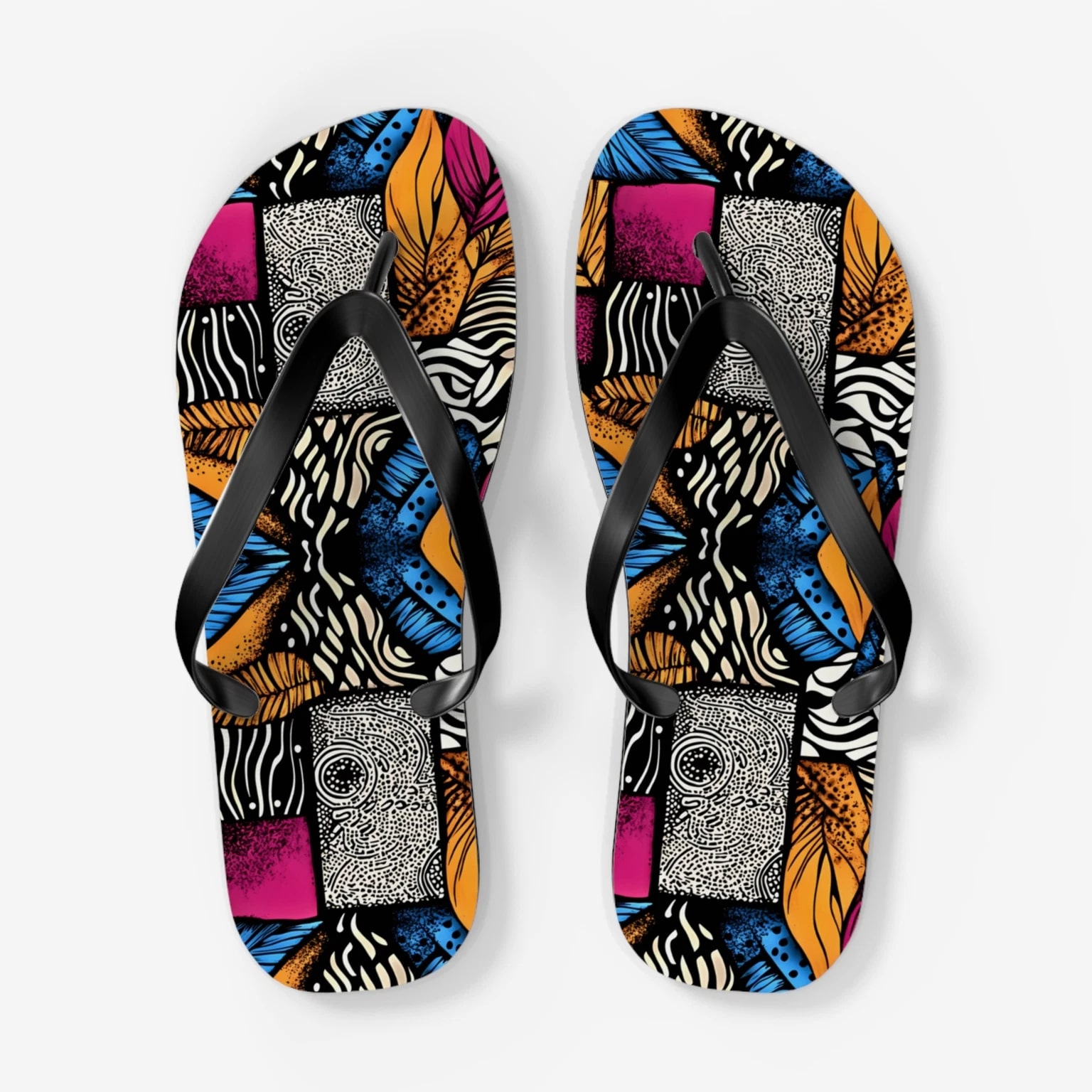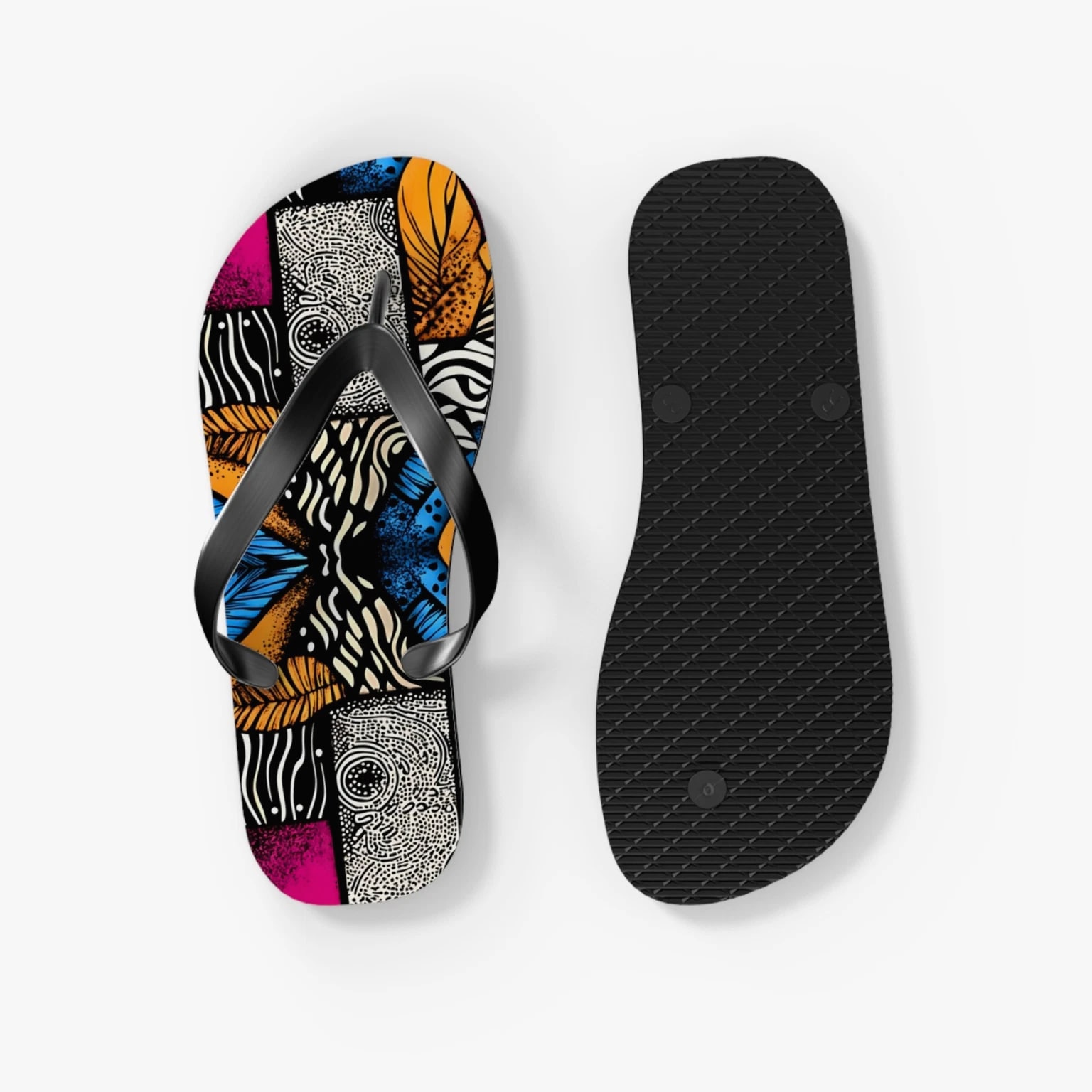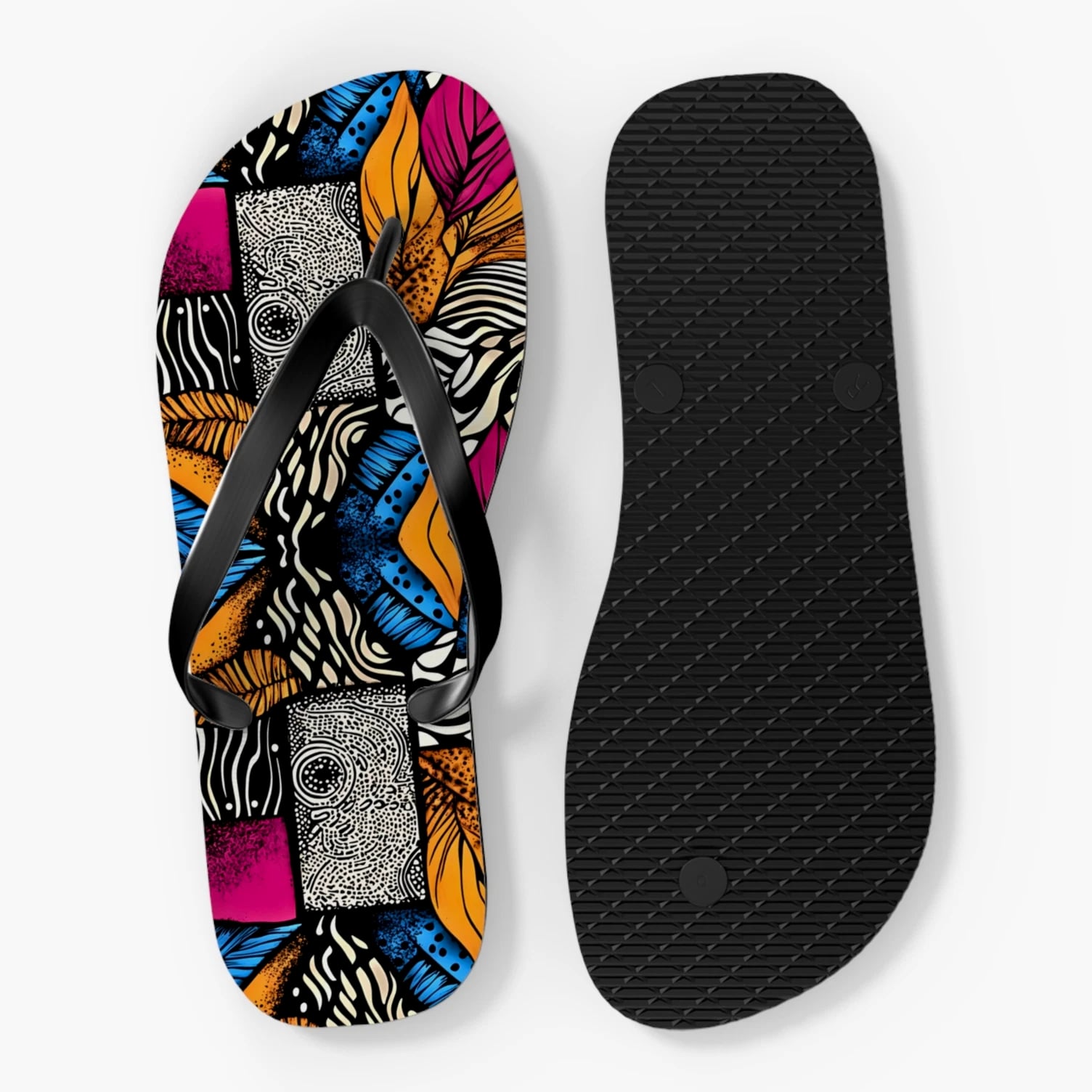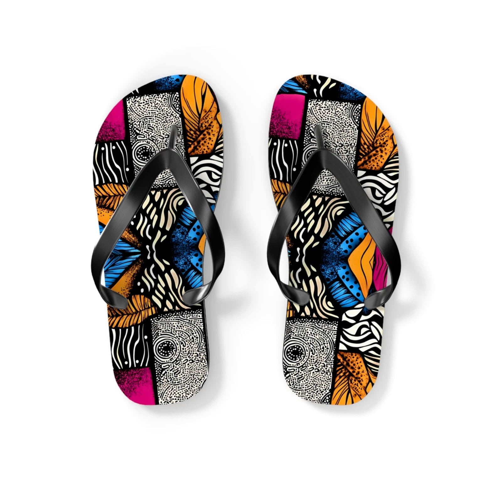 Step into comfort and style with these vibrant Flip Flops! Perfect for sunny days at the beach, pool parties, or casual walks in the park, these sandals are designed to brighten your summer wardrobe. Their colorful, eye-catching designs will make you stand out, while the slip-resistant sole ensures safety on wet surfaces. Ideal for fashion-conscious individuals who love to express personality, these Flip Flops are great for vacations, barbecues, and holidays like Independence Day or summer festivals. Enjoy every moment with trendy footwear that complements any casual outfit! Product features - 100% polyester suede for soft comfort - Lightweight EVA sole with rubber-like flexibility - Vibrant colors using advanced printing techniques - Slip-resistant textured bottom for safety - Available in multiple sizes Care instructions - To maintain cleanliness, use warm water with dish soap to remove dirt spots. Soaking is not necessary. For stubborn marks, use a soft-bristled brush.