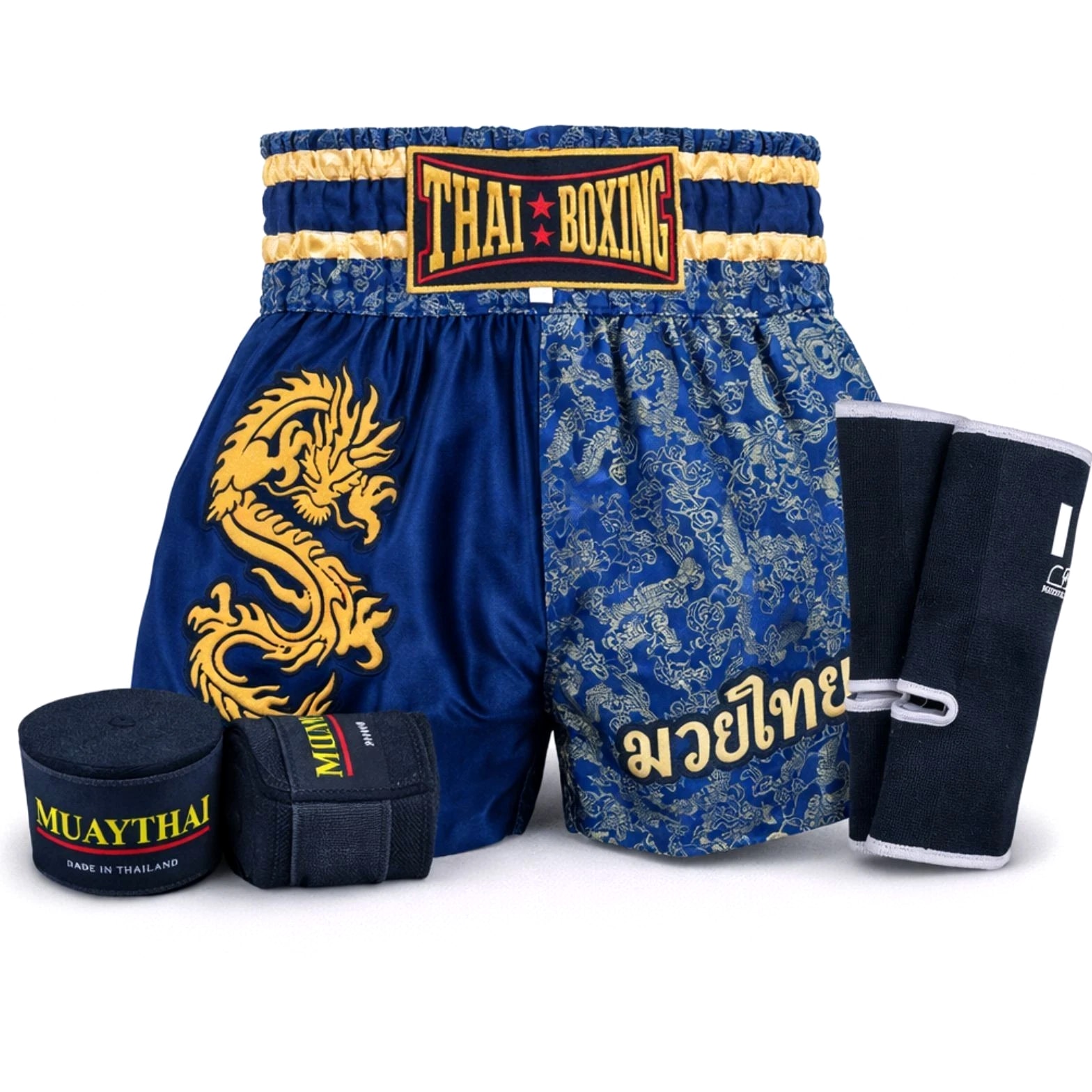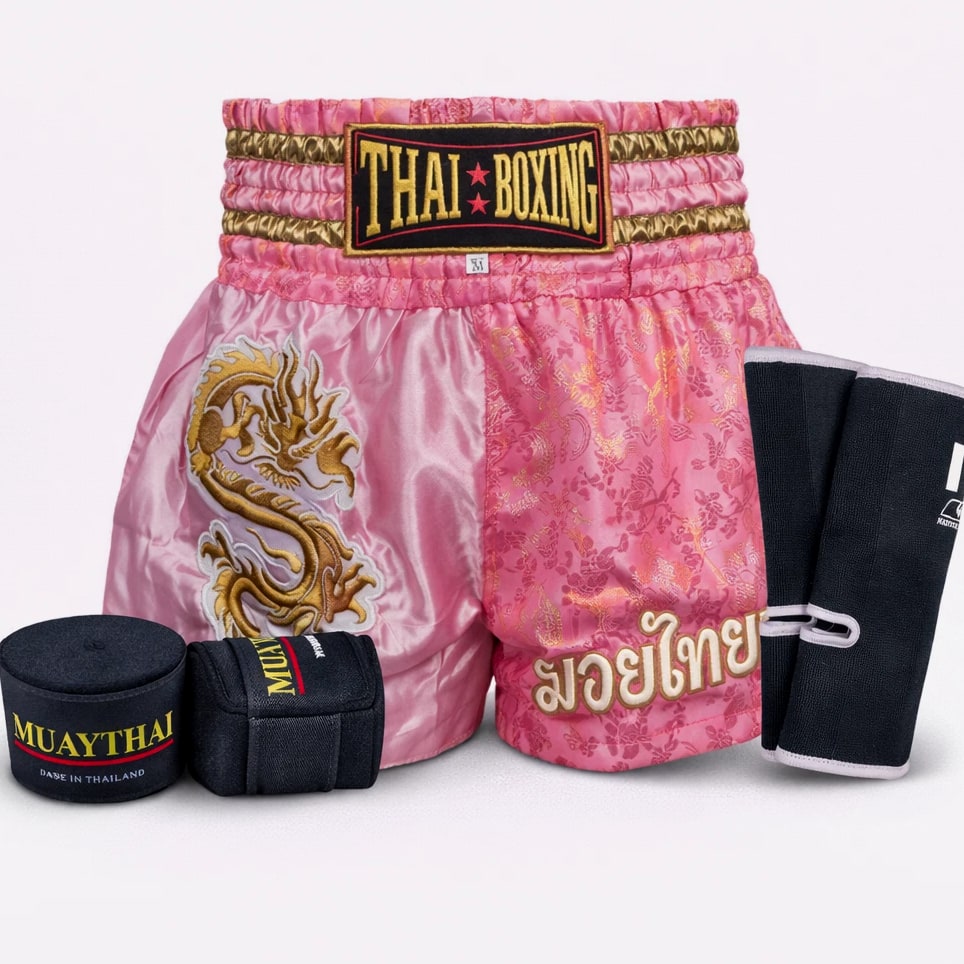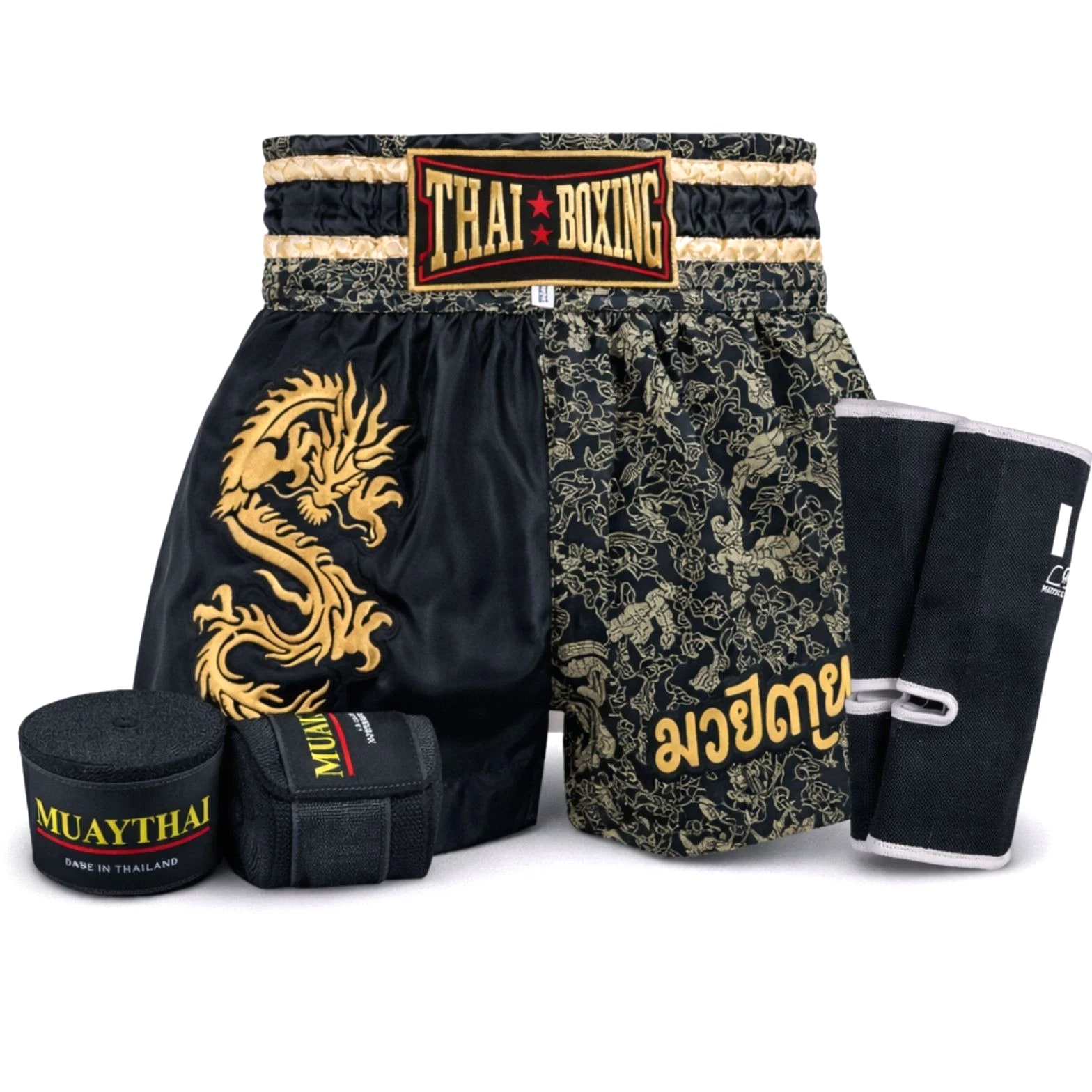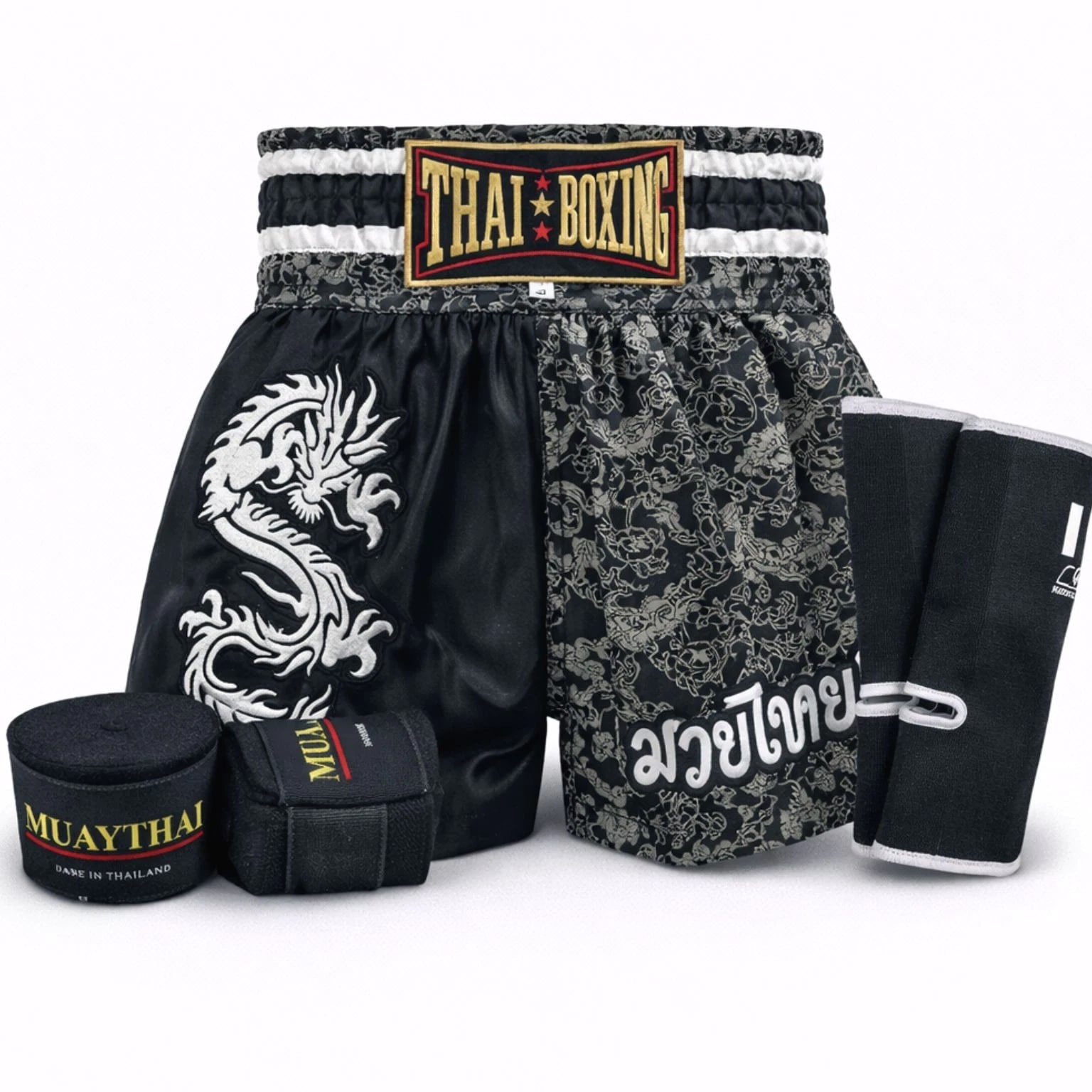 Muay Thai Fight Boxing Shorts Dragon Grappling Starter Kit Set Fitness Gym
