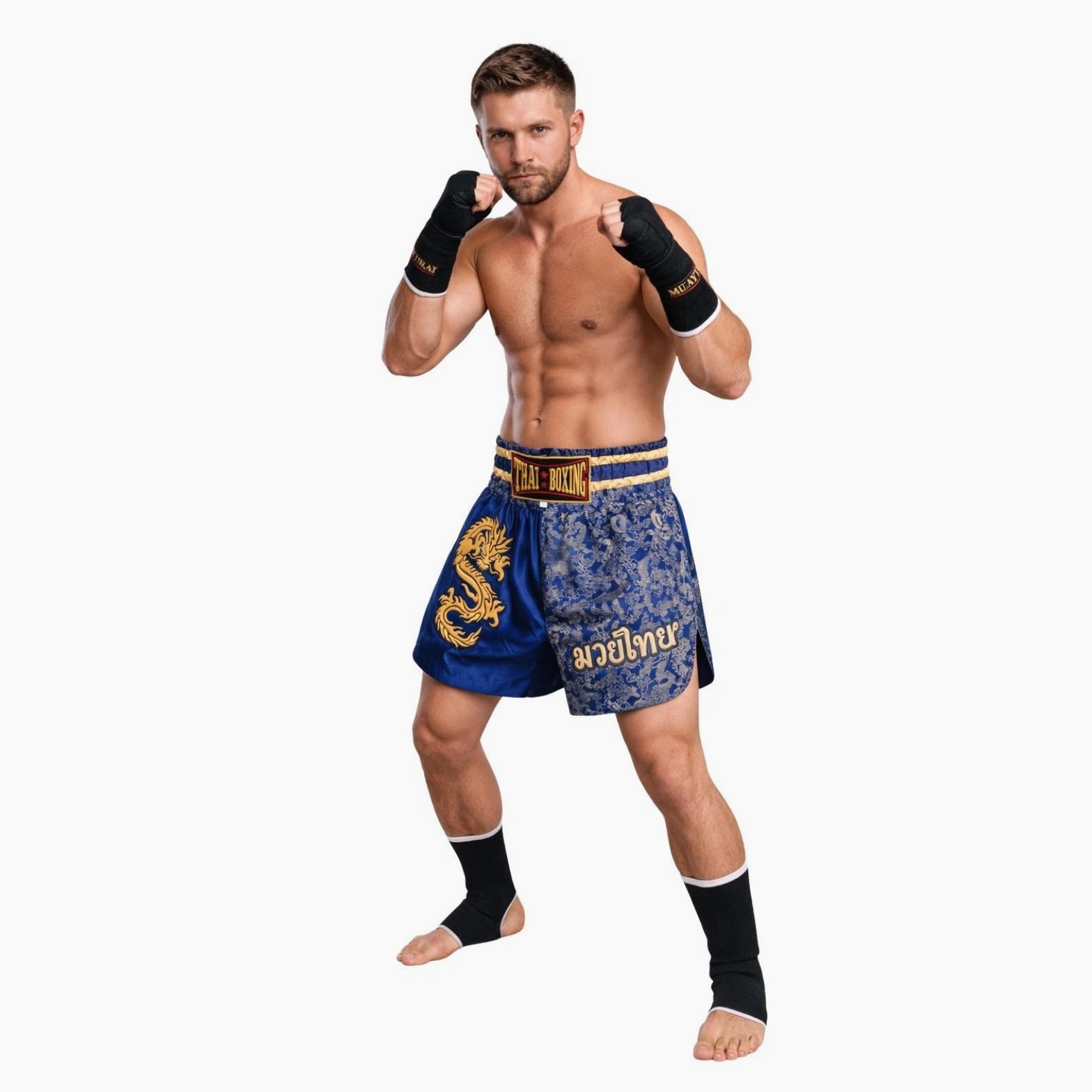 Muay Thai Fight Boxing Shorts Dragon Grappling Starter Kit Set Fitness Gym Gear Traditional Thai boxing shorts designed for Muay Thai, kickboxing, boxing, and MMA training. Lightweight satin fabric provides comfort and flexibility for training, sparring, and competition. Key Features • Dragon embroidery design for classic Muay Thai style • High-quality satin Muay Thai shorts • Hand wraps (Black) • Ankle support (Black) • Lightweight, breathable, durable • Perfect for training and competition Product Details • Material: Satin Fabric • Sizes: M / L / XL / 2XL / 3XL • Gender: Adult Unisex • Condition: New without tags • Country of Manufacture: Thailand • Suitable For: Muay Thai, Boxing, MMA • Package Includes: 1 × Muay Thai Shorts, 1 x Hand Wraps (Black), 1 x Ankle Support (Black) Size Chart - M / L / XL / 2XL / 3XL M = Waist (Inches): 28-30" | Length (Inches): 16" L = Waist (Inches): 32-34" | Length (Inches): 17" XL = Waist (Inches): 36-38" | Length (Inches): 18" 2XL = Waist (Inches): 40-42" | Length (Inches): 19" 3XL = Waist (Inches): 44-46" | Length (Inches): 20" Shipping: Ships within 0–7 business days Return Policy: 30-day returns accepted | Item must be returned in original condition Please check the size chart before ordering. Asian sizes may run smaller than US/EU sizes. Follow as pictures.