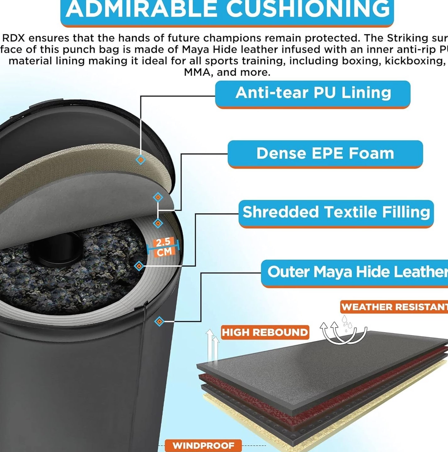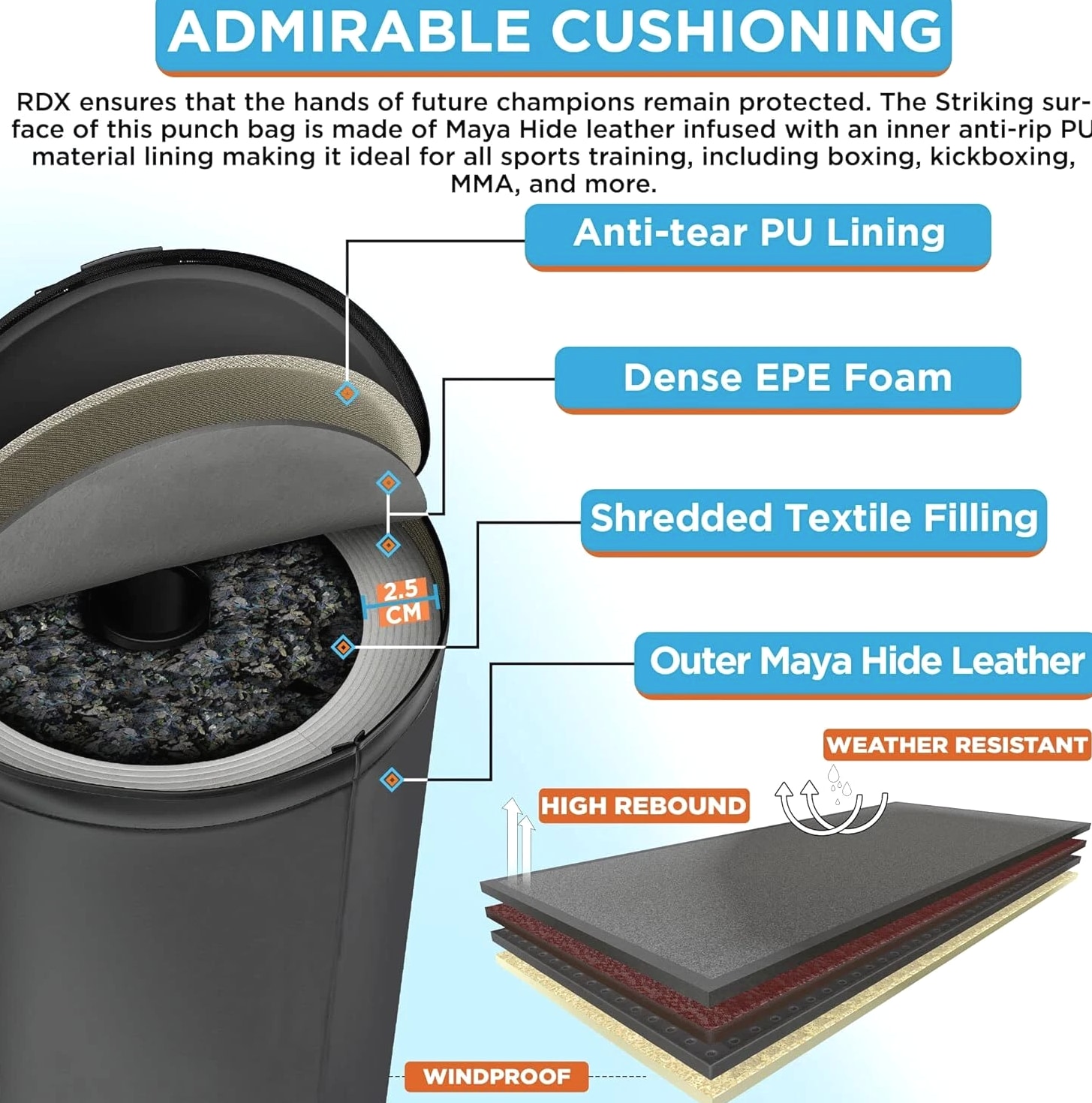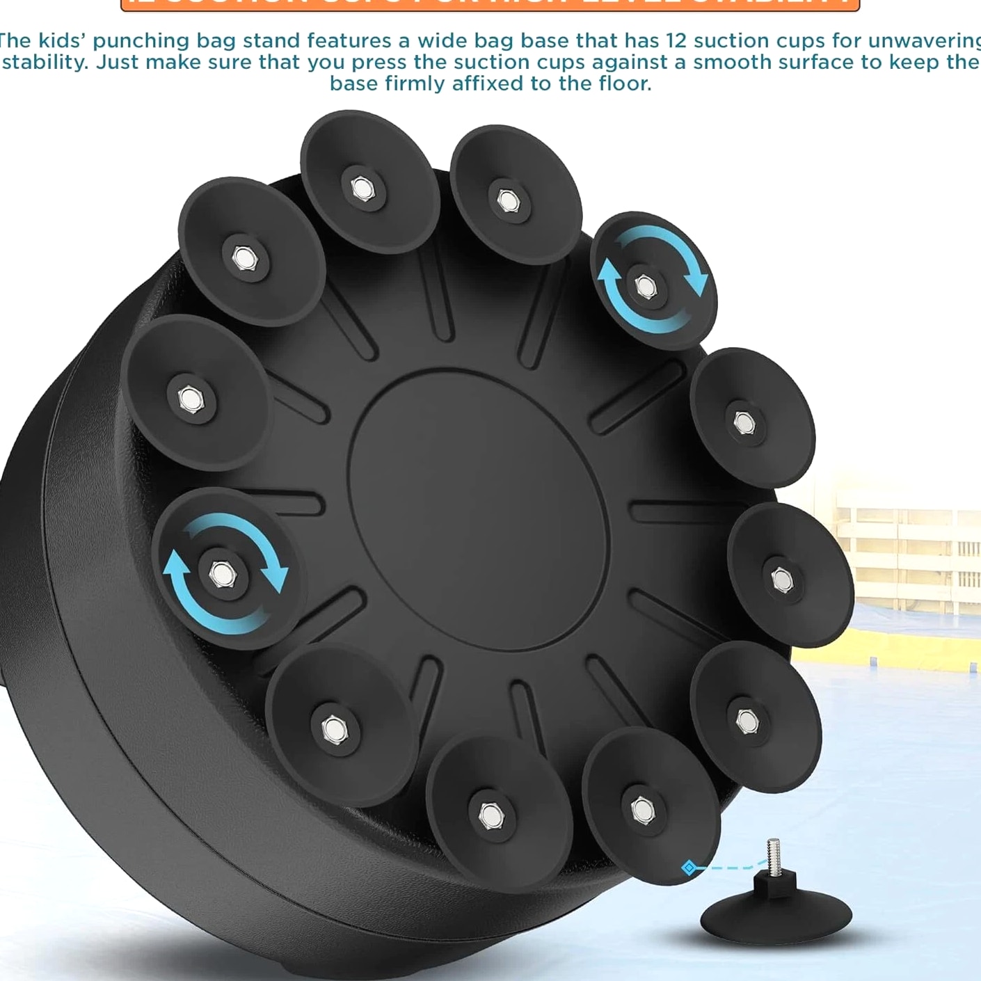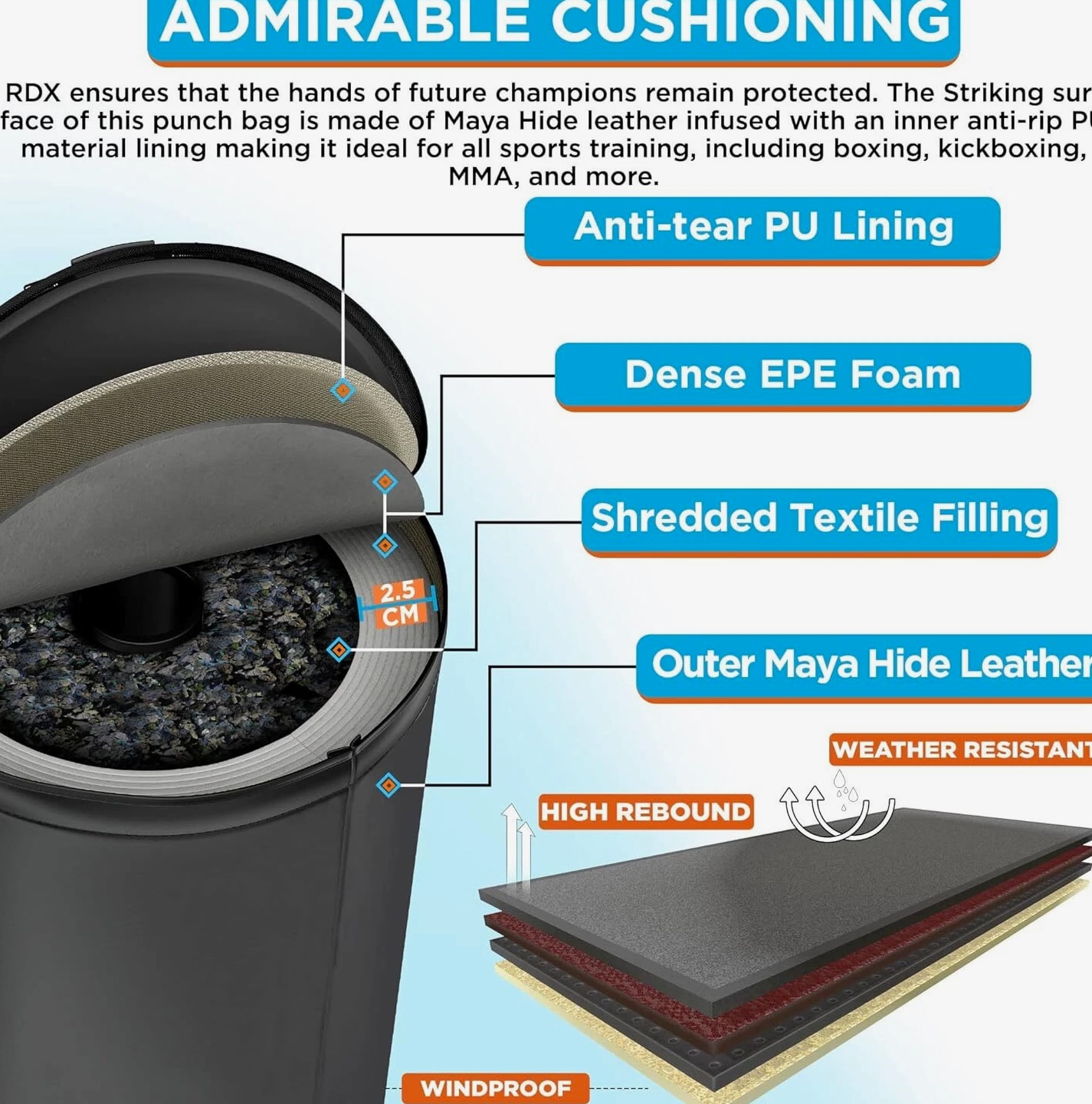 Product Features: MULTI-LAYERED MAYA HIDE LEATHER offers career-lasting durability. Top of the line high-density foam filling for a complete training experience at an early stage. Ideal for Boxing, Muay Thai, MMA, Kickboxing, training while building stamina, endurance, footwork and more. HYBRID DESIGN (PATENT PENDING) Ronin Junior bag comes with precision numbered mapping to help your kids increase hand-eye coordination. It is tailor made for early coordination training. Anti-tear nylon lining for enhanced toughness. 4FT RESILIENCE offers maximum force dispersion and balance. Easy to assemble junior bag base can be filled through the wide opening on the side with both water and sand without having to remove the bag or connector from the base. When filled with water, the weight is around 50kg and with sand, it varies from 65kg to 70kg. VACUUM LOCK BASE with 12 suction cups for high level stability and unprecedented grip. State of the art connector is densely padded and helps prevent the bag from swaying and tilting excessively. HIGH DENSITY FOAM COLLAR protector at the base to increase striking area and enhanced stability. Extra thick cushioning provides ultimate protection for feet kicks and Quick EZ Hook and Loop closure of the collar pad provides a secure fit. (Due to size of the item, punch bag base and bag itself will be shipped in two separate parcels)