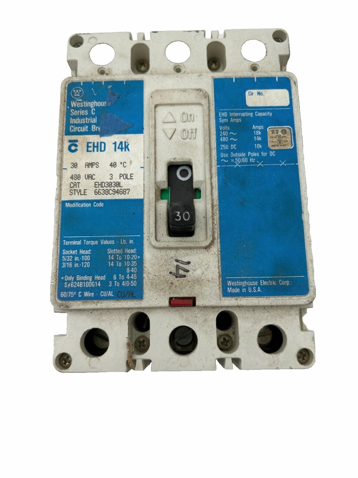 Westinghouse EHD3030L Circuit Breaker EHD 14K, 30A, 3 Pole, 480 VAC—Industrial