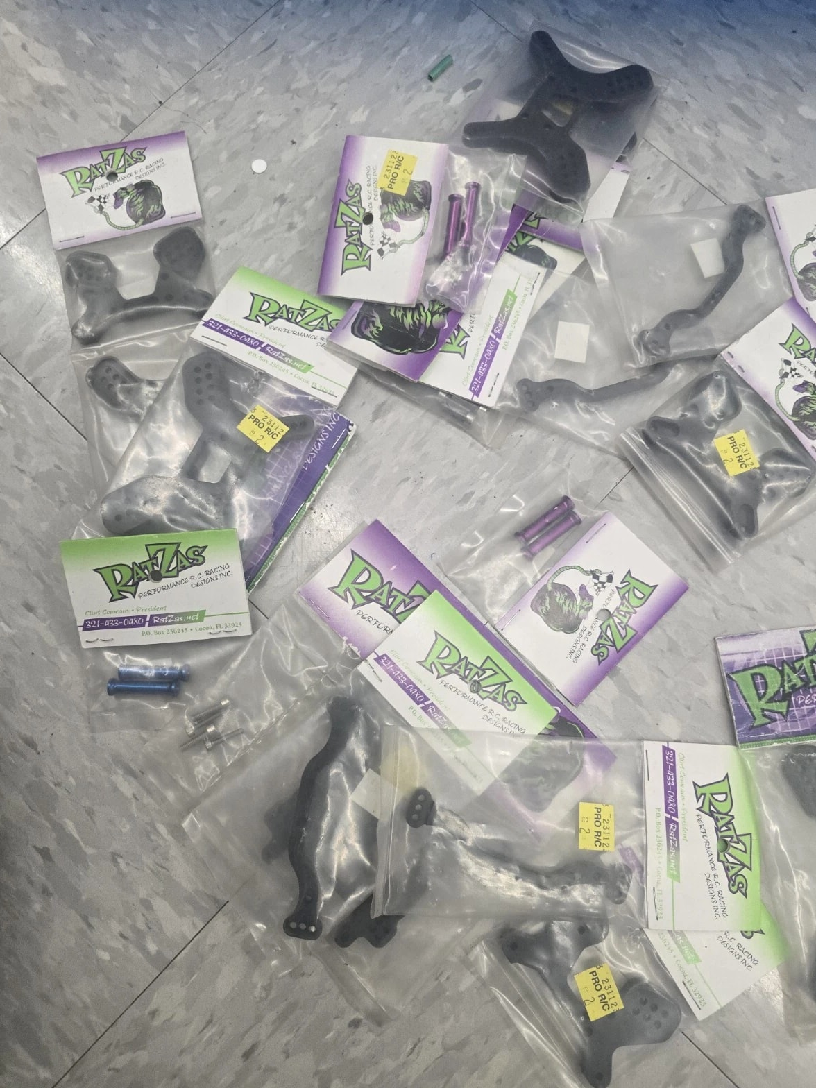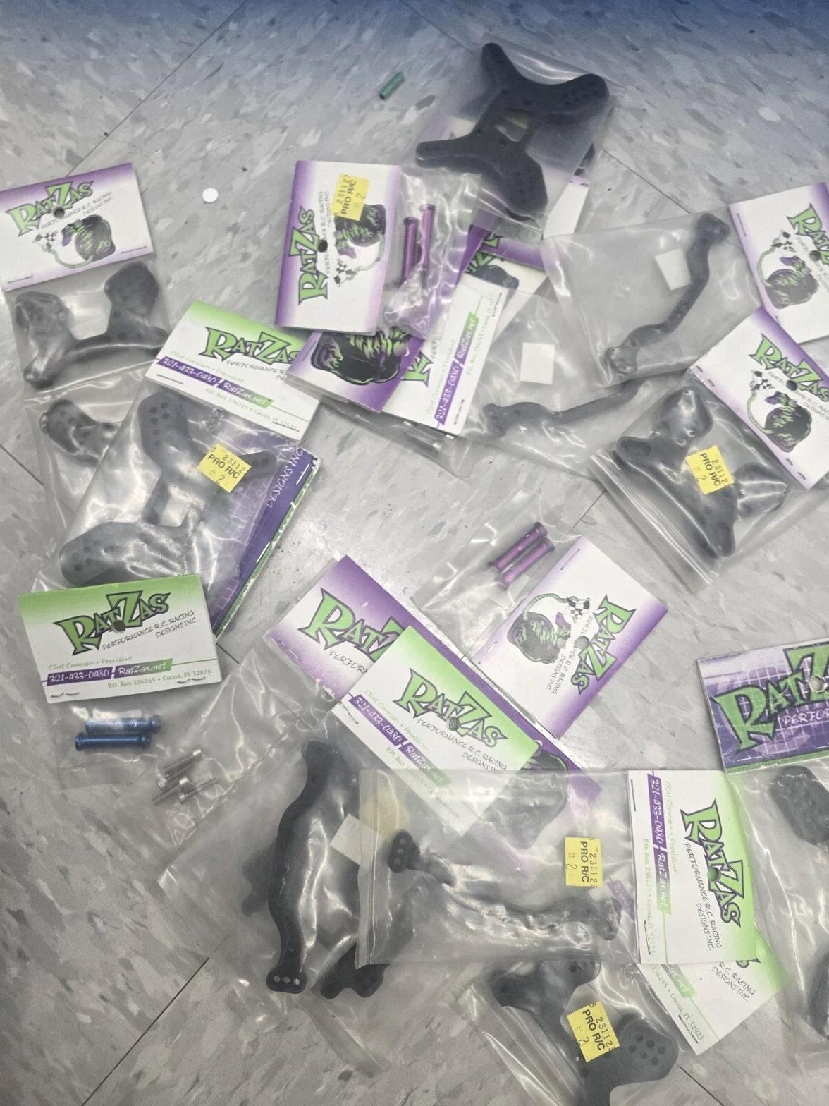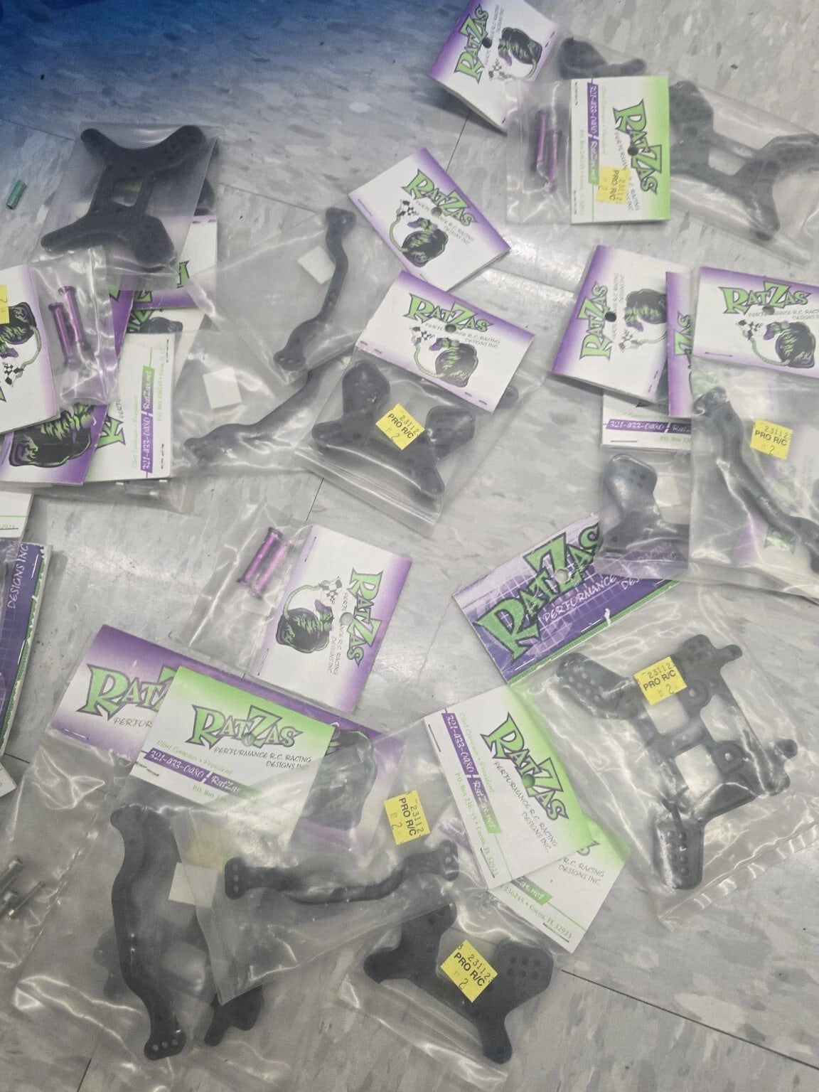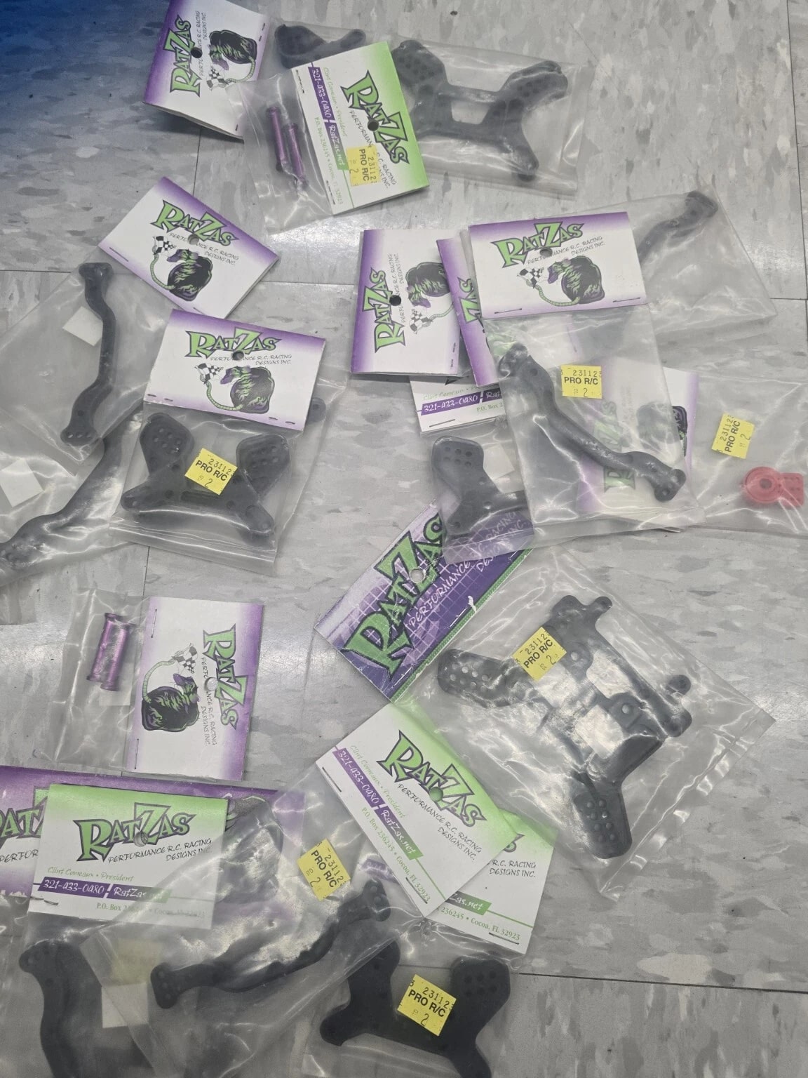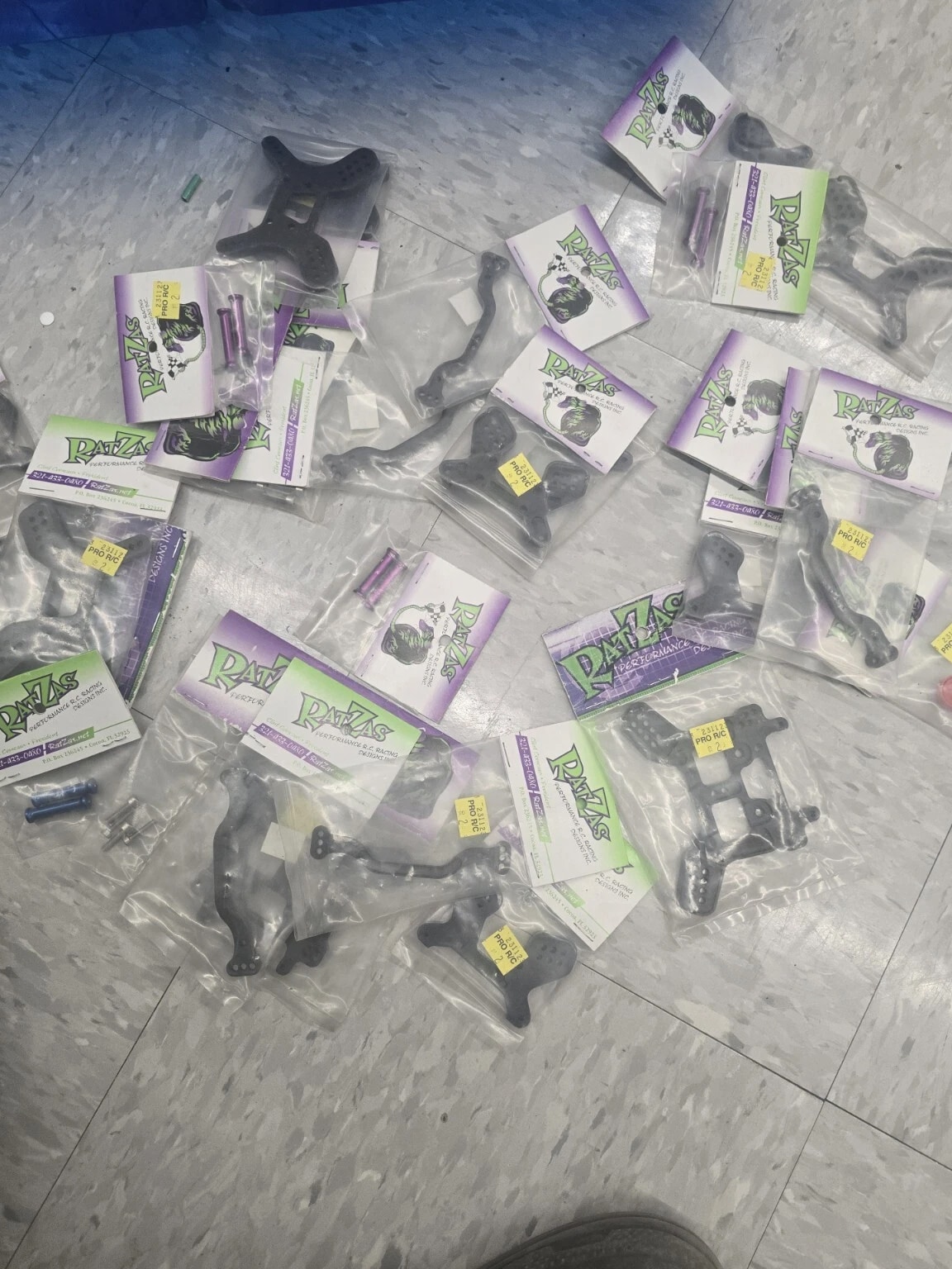 This lot includes many parts of the RatZas Front Shock Tower, as well as other compatible parts for Team Losi Racing and Losi vehicles. The tower is designed for the XXX-S model and is made by the trusted brand Losi. These parts are perfect for those interested in radio control and control line toys and hobbies, and specifically for those looking for replacements or additional parts for their collection. The lot falls under the categories of Toys & Hobbies, Radio Control & Control Line, and RC Model Vehicle Parts & Accs. Don't miss out on this opportunity to add to your collection! Huge parts lot wholesale deal