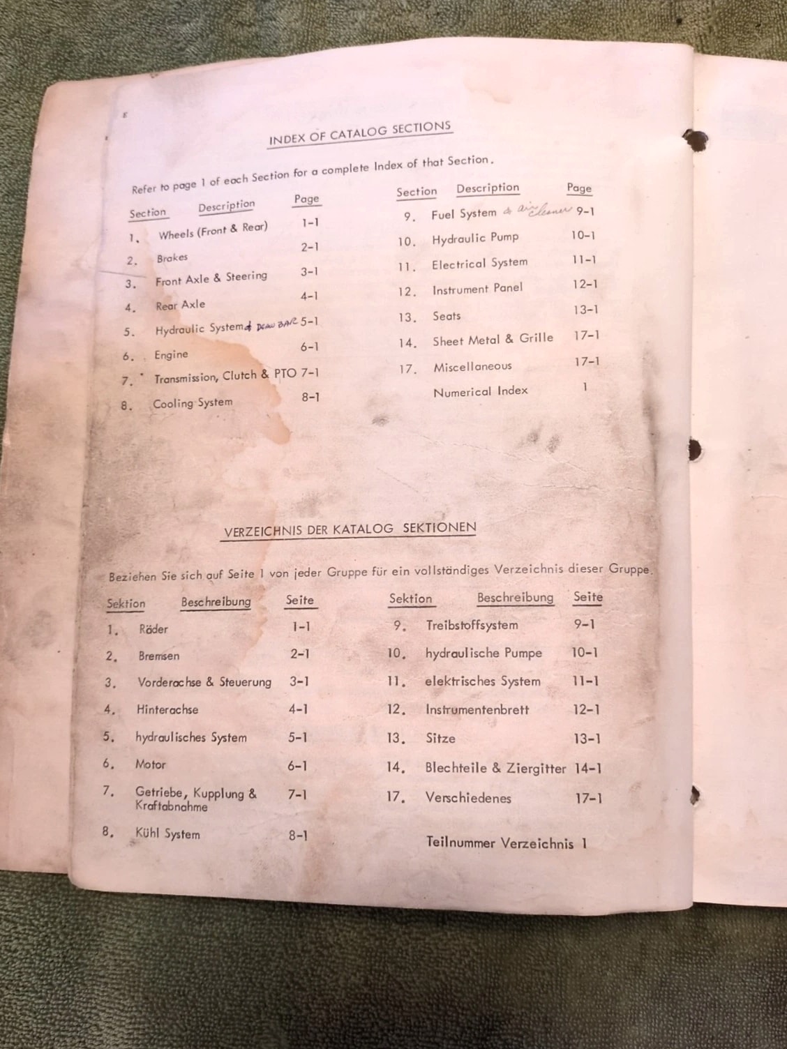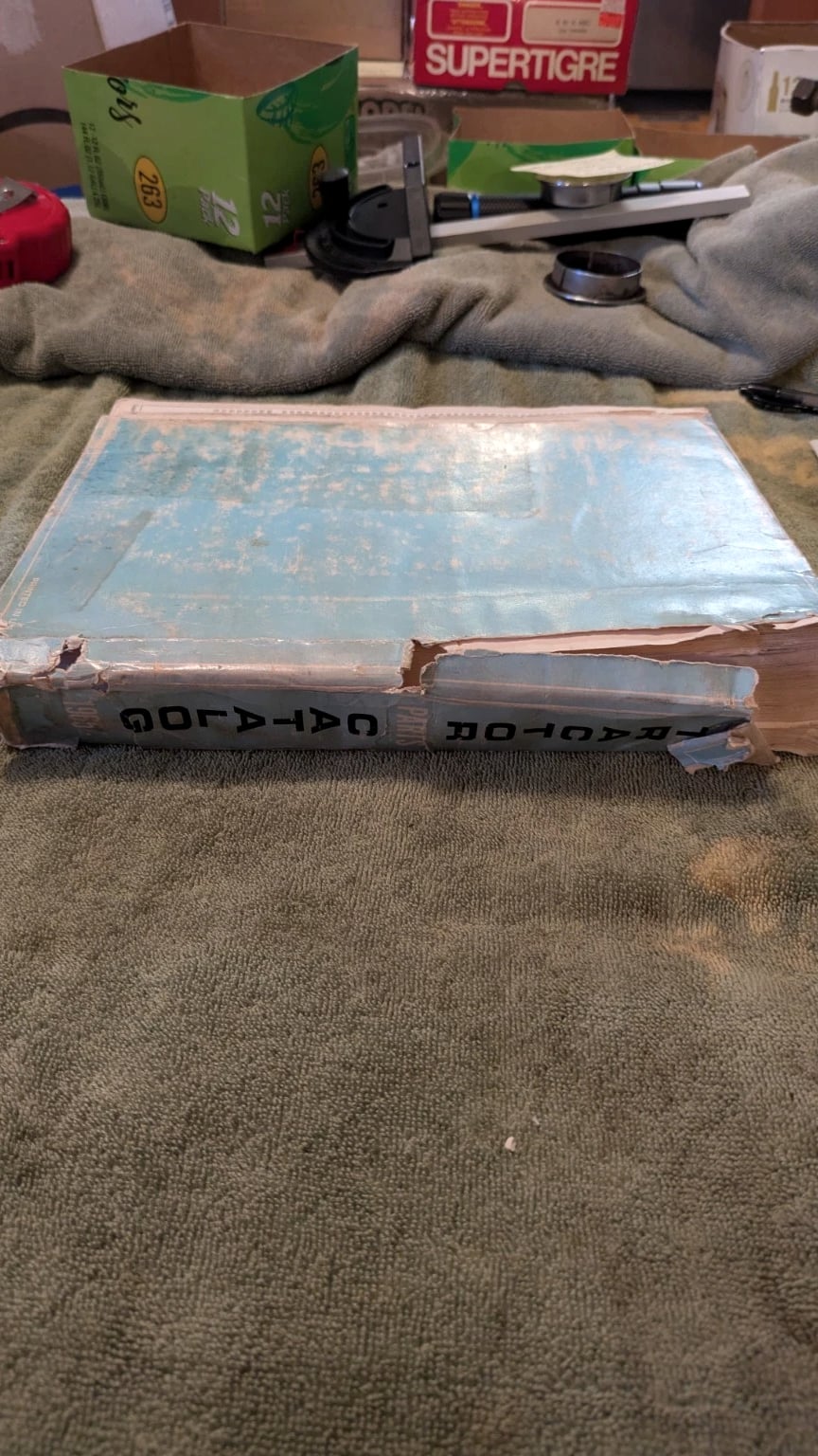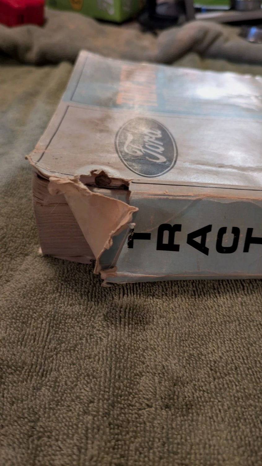 This catalog has some writing on pages, grease and torn cover. There are no missing pages. It's a well used shop manual with plenty of life left in its pages. This original Dealership copy has the original staple binding intact, but the cover is torn.