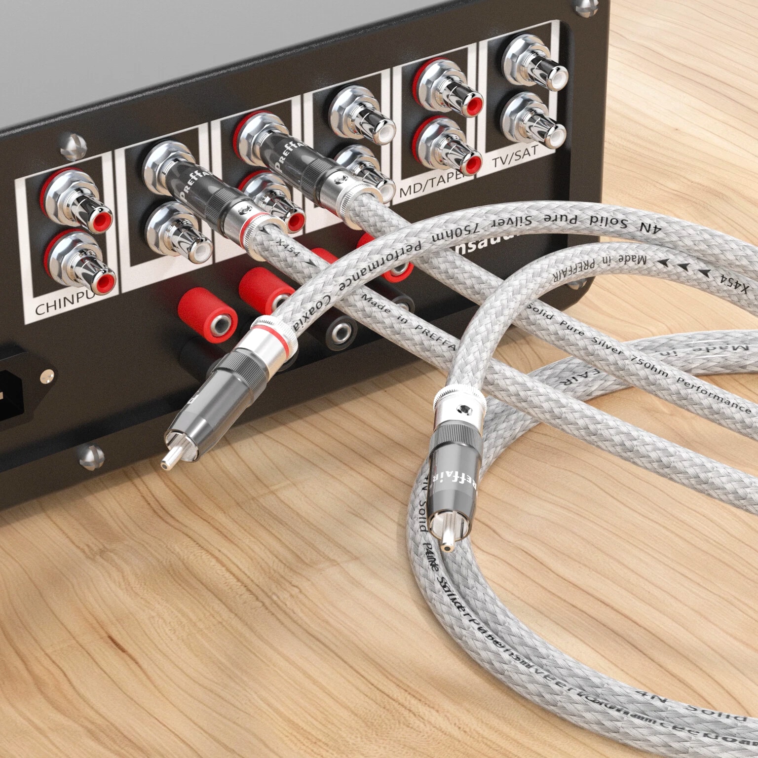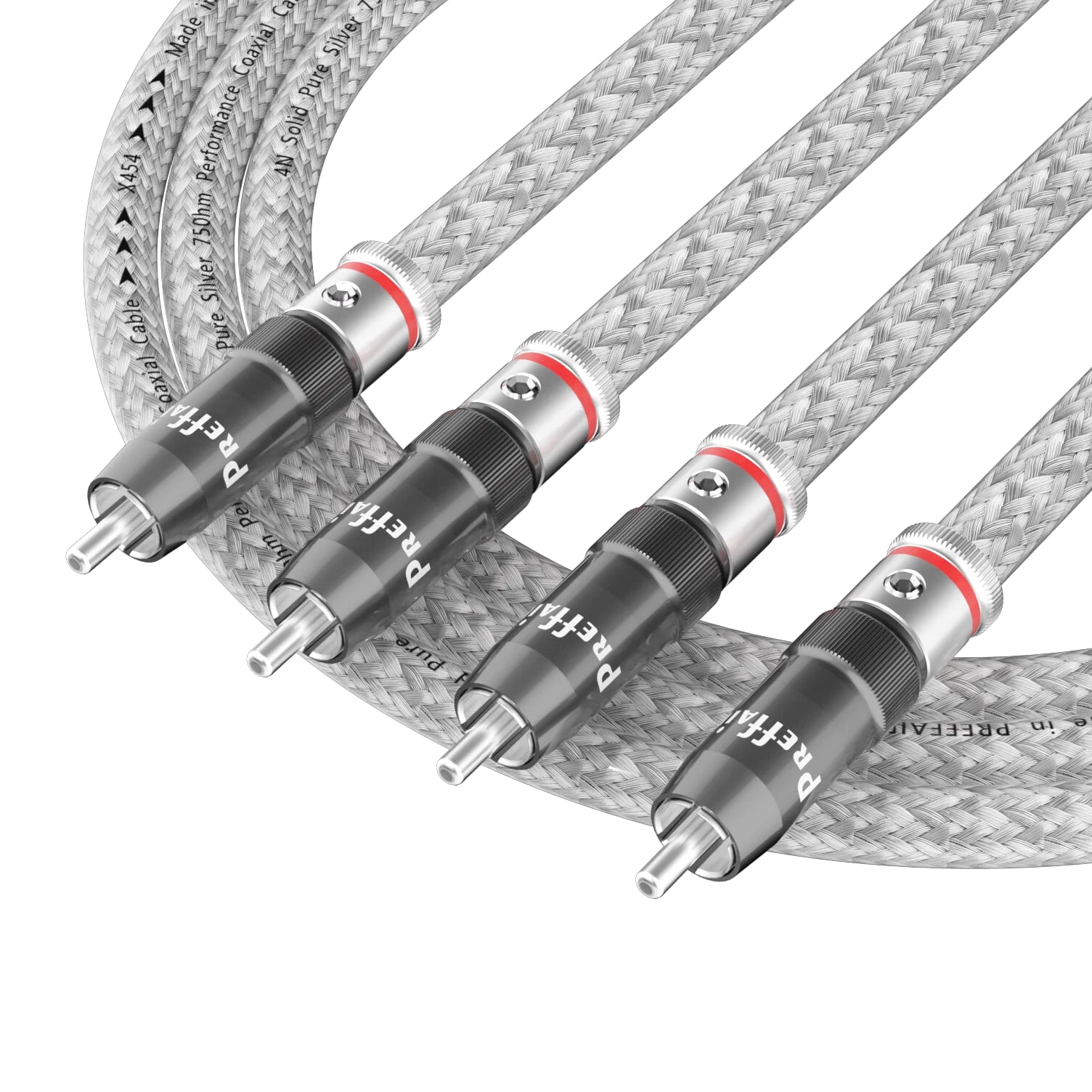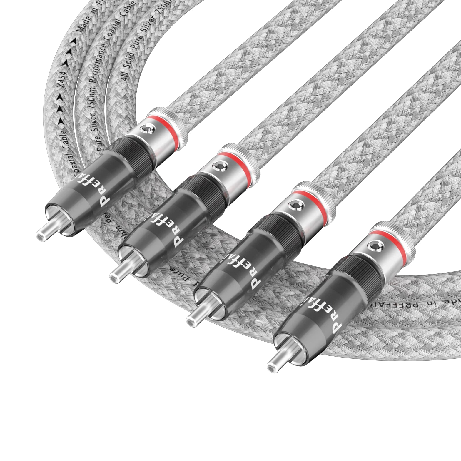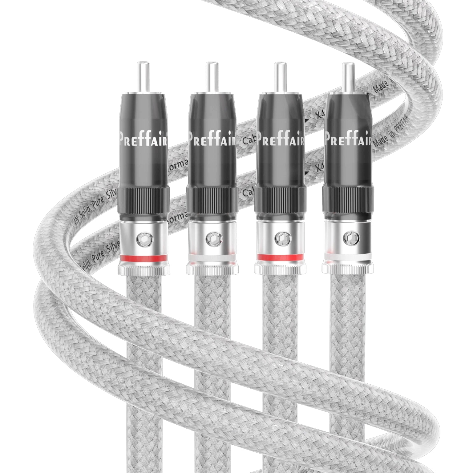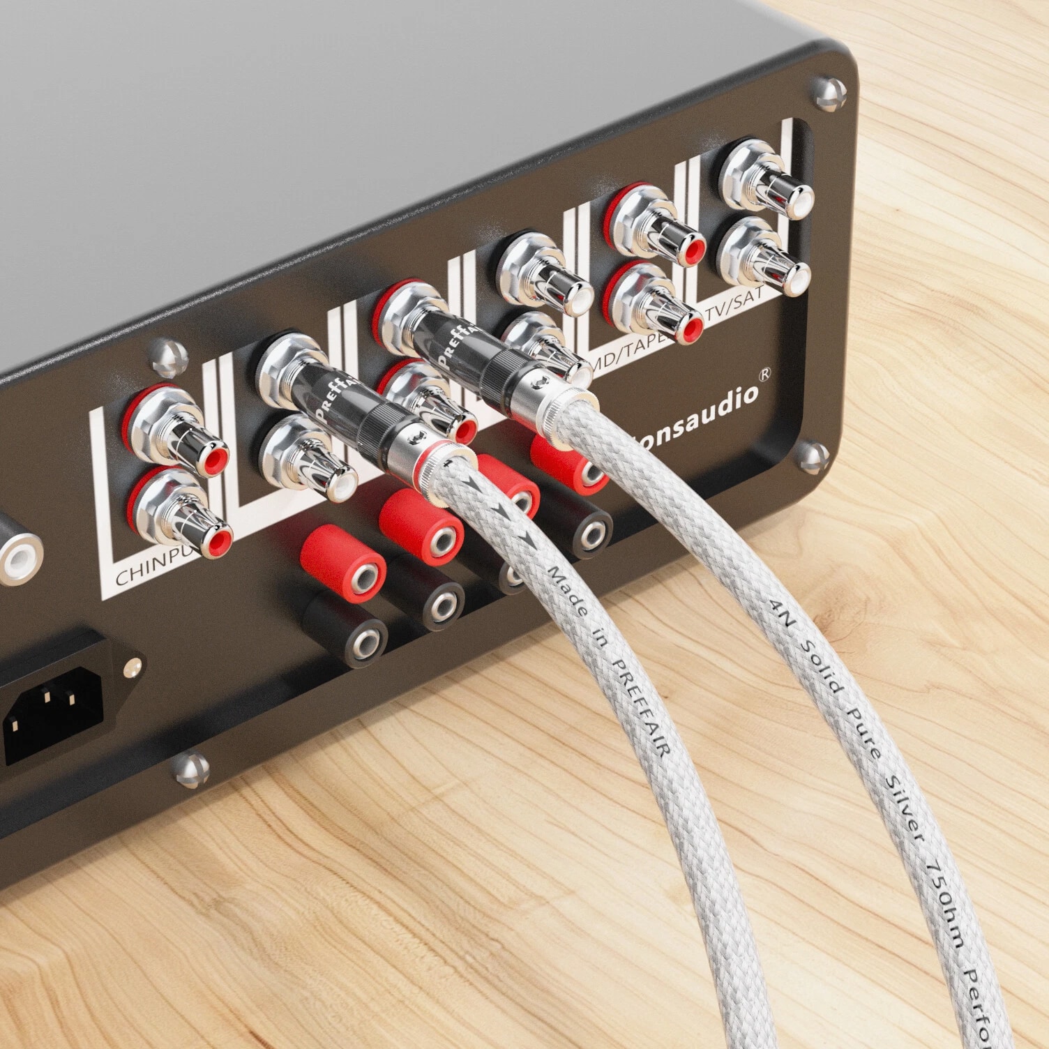 Pair 5N Pure Solid Silver RCA to RCA Cable HiFi Audio Cable Interconnect