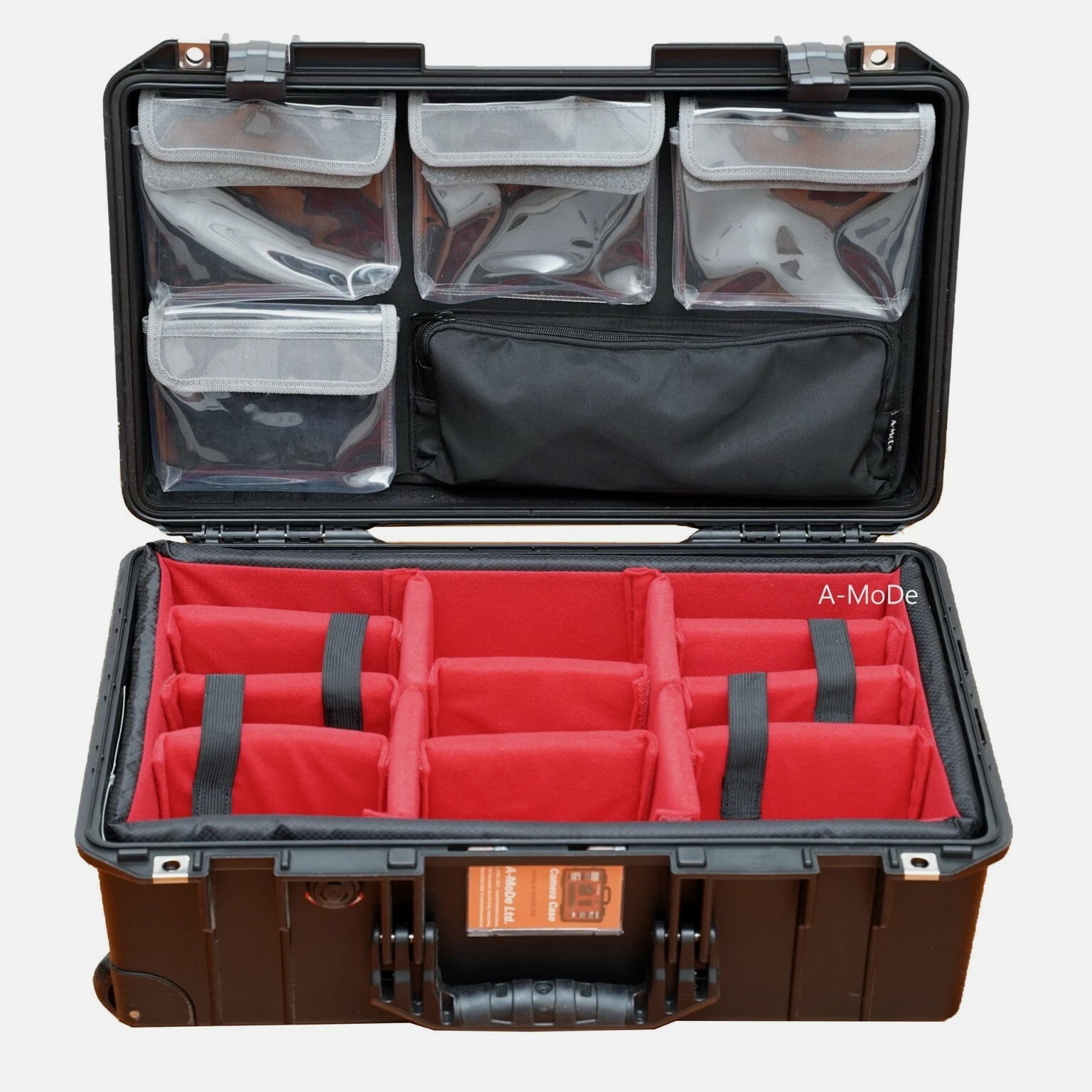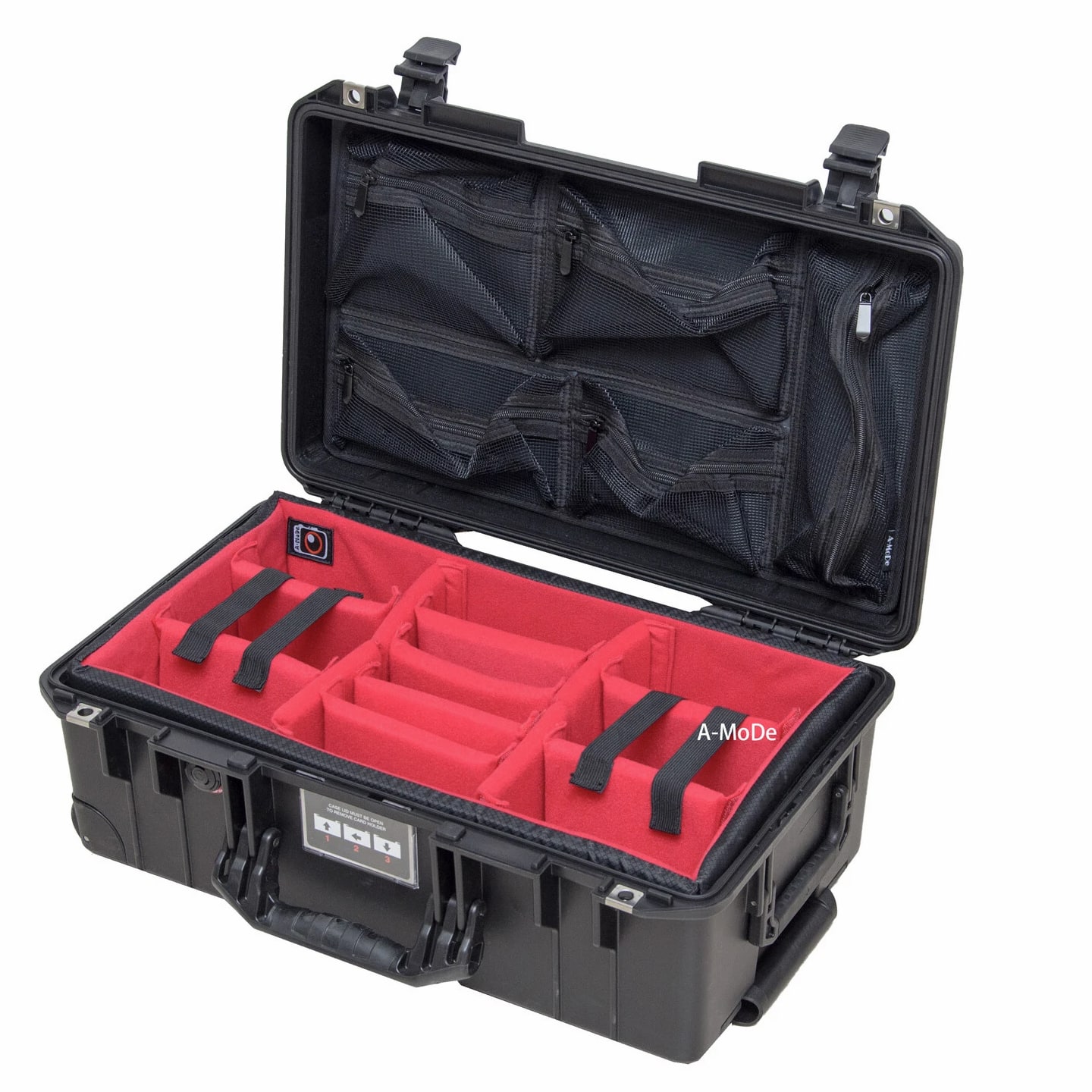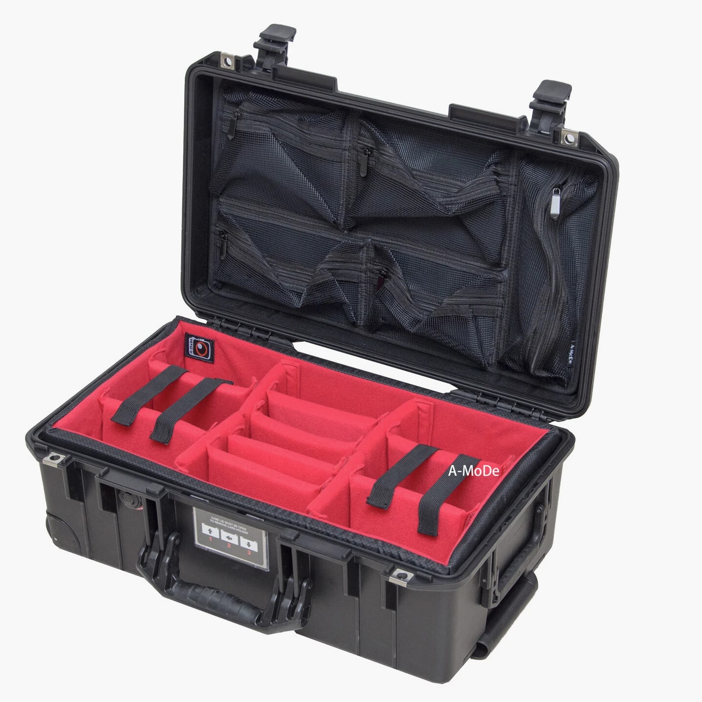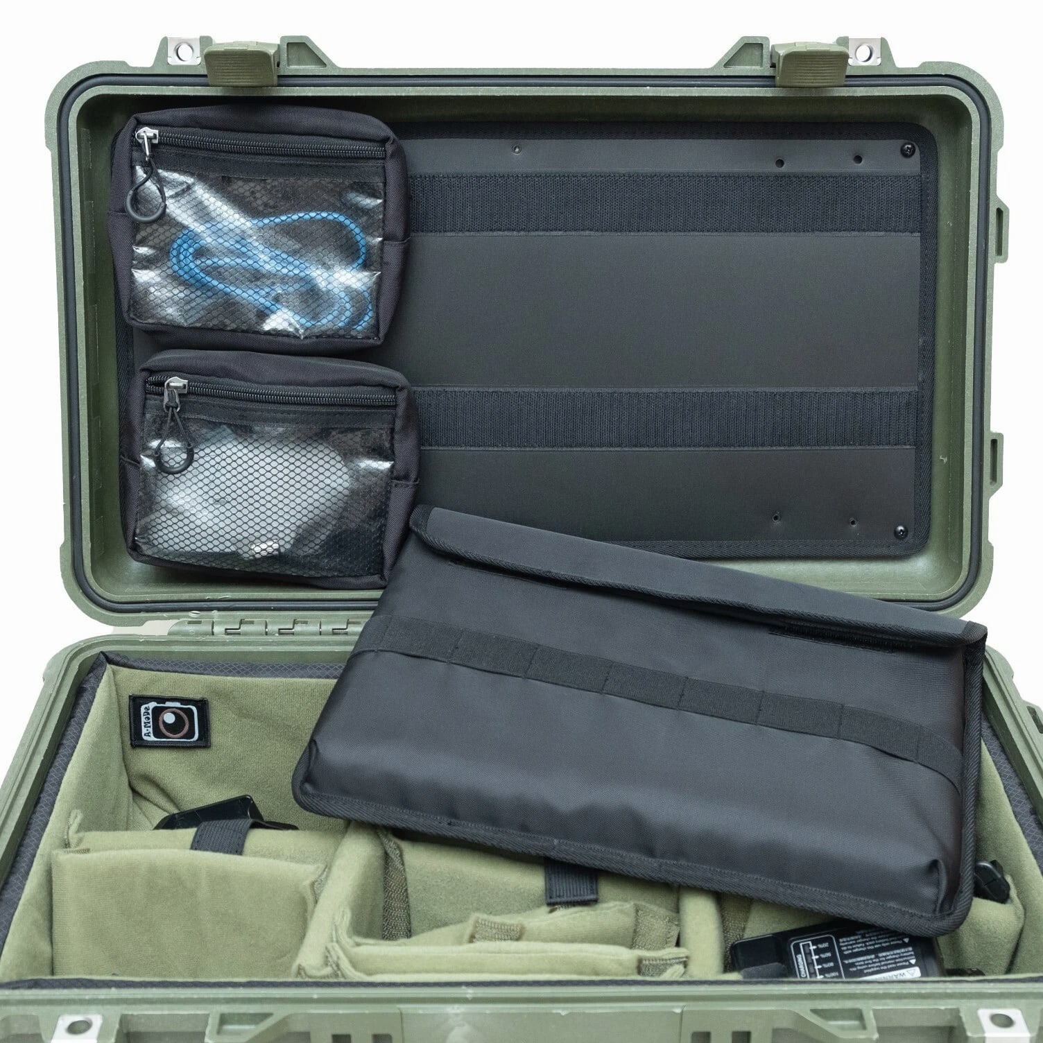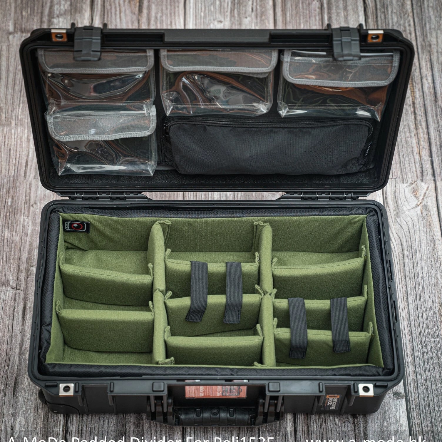 A-MoDe LID1519SC Lid Organizer l 2 in 1 protection: Waterproof laptop/iPad/netbook sleeve and accessories pouch l 1 pocket, 15 16 inch (36.5 x 27cm, 14.3 x 10.6 x 1.7) laptop and iPad mini. **macbook pro 16" size 35.57 x 24.81 x 1.68 ** l Laptop sleeve padded: 2mm EPE, made of durable 400D waterproof nylon l Includes 6 easy to install screws into pre-drilled holes. l Includes 1 flat padded attachment to the Pelican lid, easily exchangeable with Lid1510A or B l Designed to fit only Pelican 1510 1535 Nanuk 935 IM2500 safety box l Dimensions: 51.5 x 28cm (20.27 x 11") LID1519A Product Highlights •4 clear pockets, 1 zipper pocket with hidden zipper head. •Made of durable 600D nylon and clear TPU pockets for visibility. •Adds more 1/3 storage to organize your equipment. •0.5mm thick TPU, anti-static wear-resistant TPU material (not subject to temperature changes) •Includes 6 easy to install screws into pre-drilled holes. •Includes 1 flat padded attachment to the Pelican lid, easily exchangeable with Lid1510B •Suitable for Pelican 1510 1535 IM2500 1519 1514 safety box A-MoDe LID1519MCB Laptop Lid Organizer 2 clear mesh film pockets, 13" 14" Macbook laptop (pocket size: 33 x 23 cm) and iPad mini. Material: 600D waterproof nylon, 0.6mm clear mesh film Weight: 0.45kg Includes 6 screws for easy installation into pre-drilled holes. Includes 1 flat pad that attaches to Pelican lid and can be easily replaced Applicable to Pelican 1510 1535 Nanuk 935 IM2500 1519 1514 safe Includes: 1 laptop pouch, 2 pockets, 1 mounting pad and screws (Apache 5800 and IM2500 or other safety shells need to be installed with double-sided tape.) A-MoDe LID1519F Lid Organizer 4 clear zipper pockets with hidden zipper head (removable design) Made of durable 600D nylon and clear pockets for visibility. Adds more 1/3 storage to organize your equipment. 0.5mm thick TPU, anti-static wear-resistant TPU material (not subject to temperature changes) Includes 6 easy to install screws into pre-drilled holes. Include