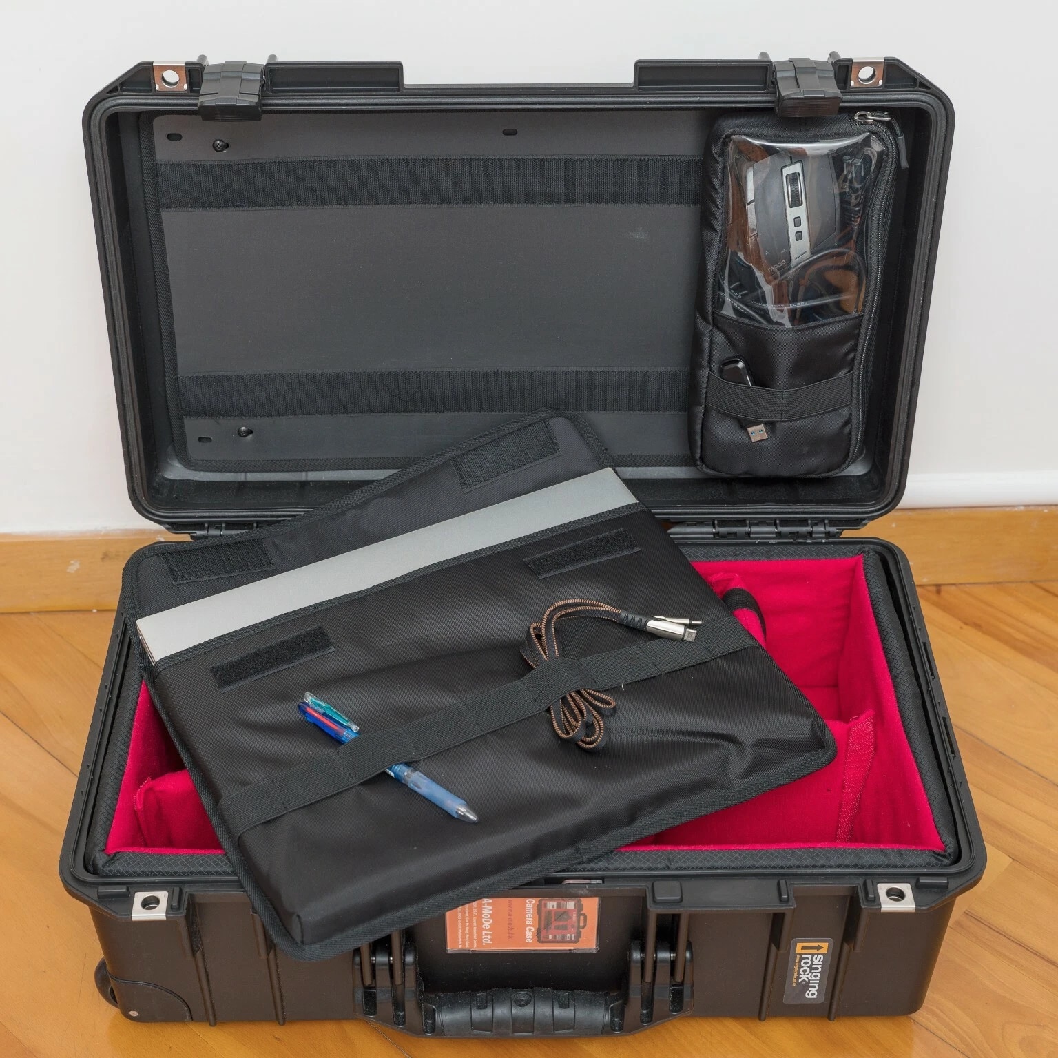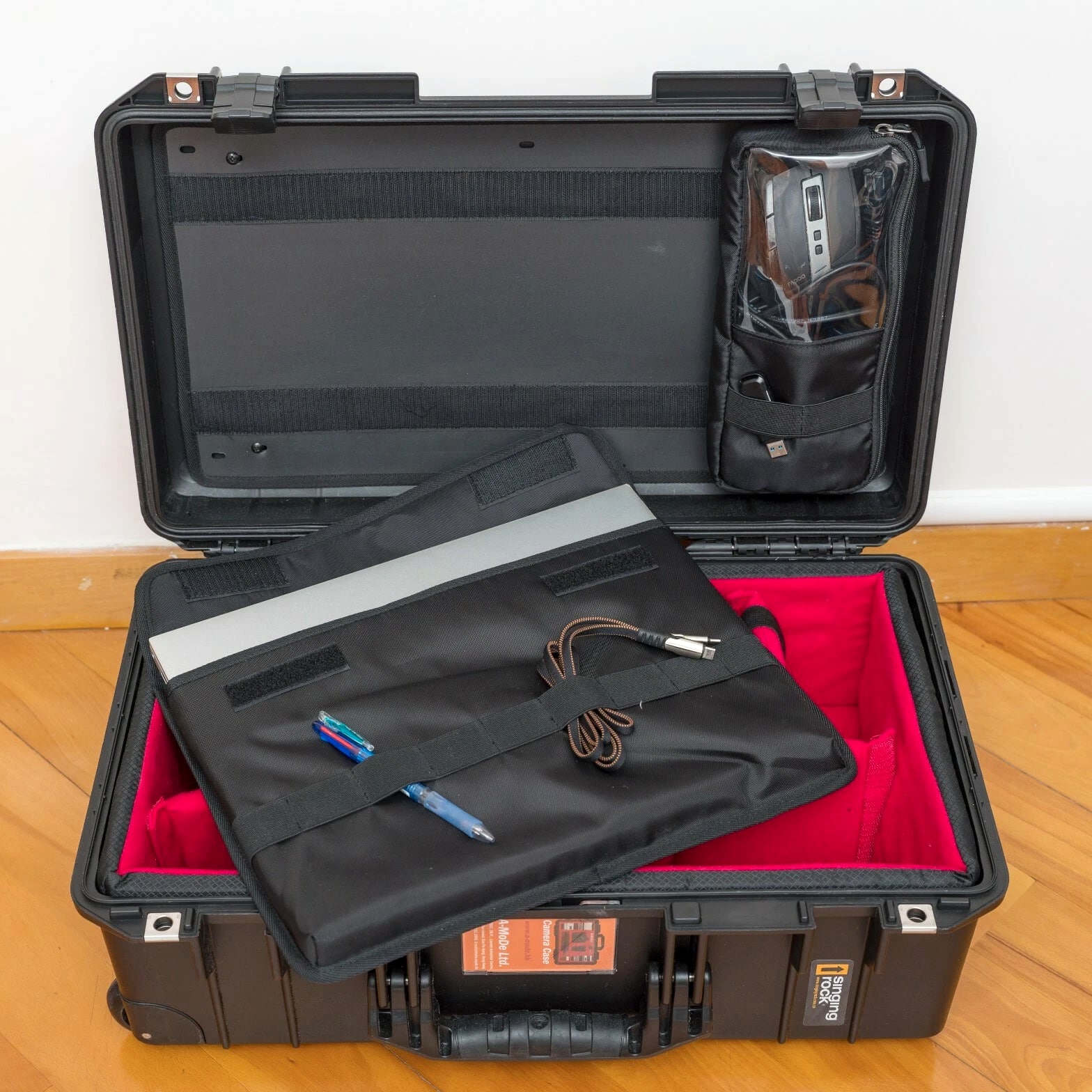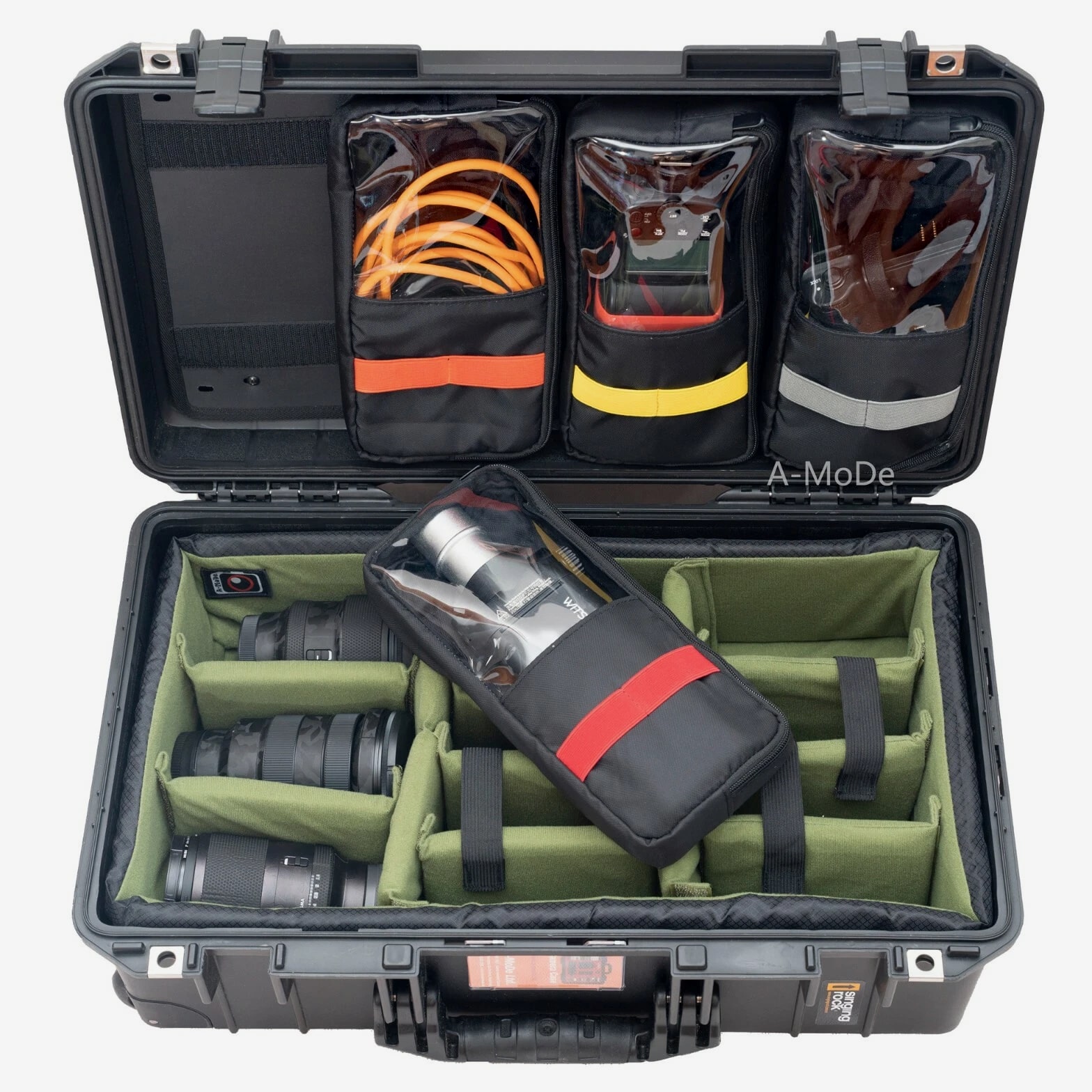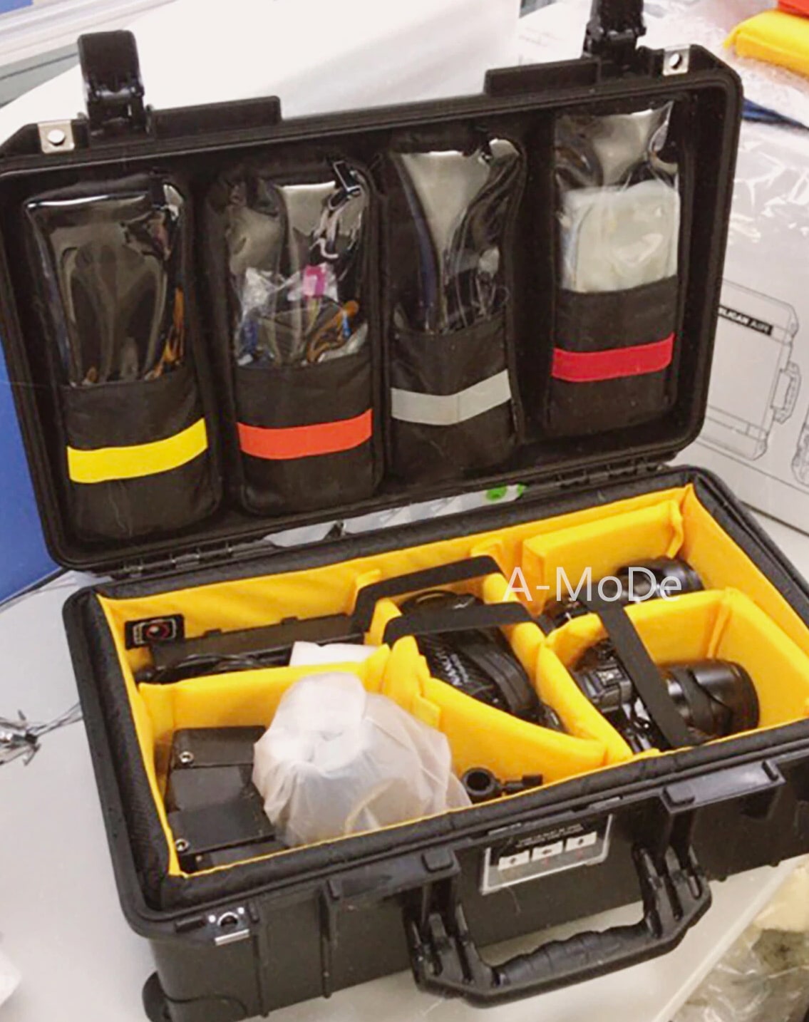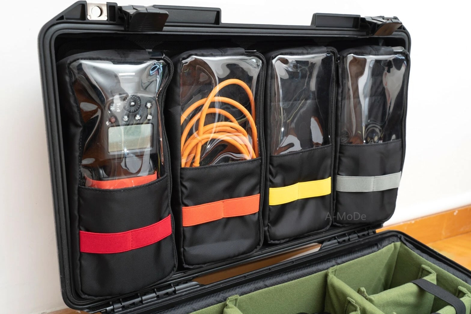 A-MoDe LID1519SC Lid Organizer l 2 in 1 protection: Waterproof laptop/iPad/netbook sleeve and accessories pouch l 1 pocket, 15 16 inch (36.5 x 27cm, 14.3 x 10.6 x 1.7) laptop and iPad mini. **macbook pro 16" size 35.57 x 24.81 x 1.68 ** l Laptop sleeve padded: 2mm EPE, made of durable 400D waterproof nylon l Includes 6 easy to install screws into pre-drilled holes. l Includes 1 flat padded attachment to the Pelican lid, easily exchangeable with Lid1510A or B l Designed to fit only Pelican 1510 1535 Nanuk 935 IM2500 safety box l Dimensions: 51.5 x 28cm (20.27 x 11") LID1519A Product Highlights •4 clear pockets, 1 zipper pocket with hidden zipper head. •Made of durable 600D nylon and clear TPU pockets for visibility. •Adds more 1/3 storage to organize your equipment. •0.5mm thick TPU, anti-static wear-resistant TPU material (not subject to temperature changes) •Includes 6 easy to install screws into pre-drilled holes. •Includes 1 flat padded attachment to the Pelican lid, easily exchangeable with Lid1510B •Suitable for Pelican 1510 1535 IM2500 1519 1514 safety box A-MoDe LID1519MCB Laptop Lid Organizer 2 clear mesh film pockets, 13" 14" Macbook laptop (pocket size: 33 x 23 cm) and iPad mini. Material: 600D waterproof nylon, 0.6mm clear mesh film Weight: 0.45kg Includes 6 screws for easy installation into pre-drilled holes. Includes 1 flat pad that attaches to Pelican lid and can be easily replaced Applicable to Pelican 1510 1535 Nanuk 935 IM2500 1519 1514 safe Includes: 1 laptop pouch, 2 pockets, 1 mounting pad and screws (Apache 5800 and IM2500 or other safety shells need to be installed with double-sided tape.) A-MoDe LID1519F Lid Organizer 4 clear zipper pockets with hidden zipper head (removable design) Made of durable 600D nylon and clear pockets for visibility. Adds more 1/3 storage to organize your equipment. 0.5mm thick TPU, anti-static wear-resistant TPU material (not subject to temperature changes) Includes 6 easy to install screws into pre-drilled holes. Include