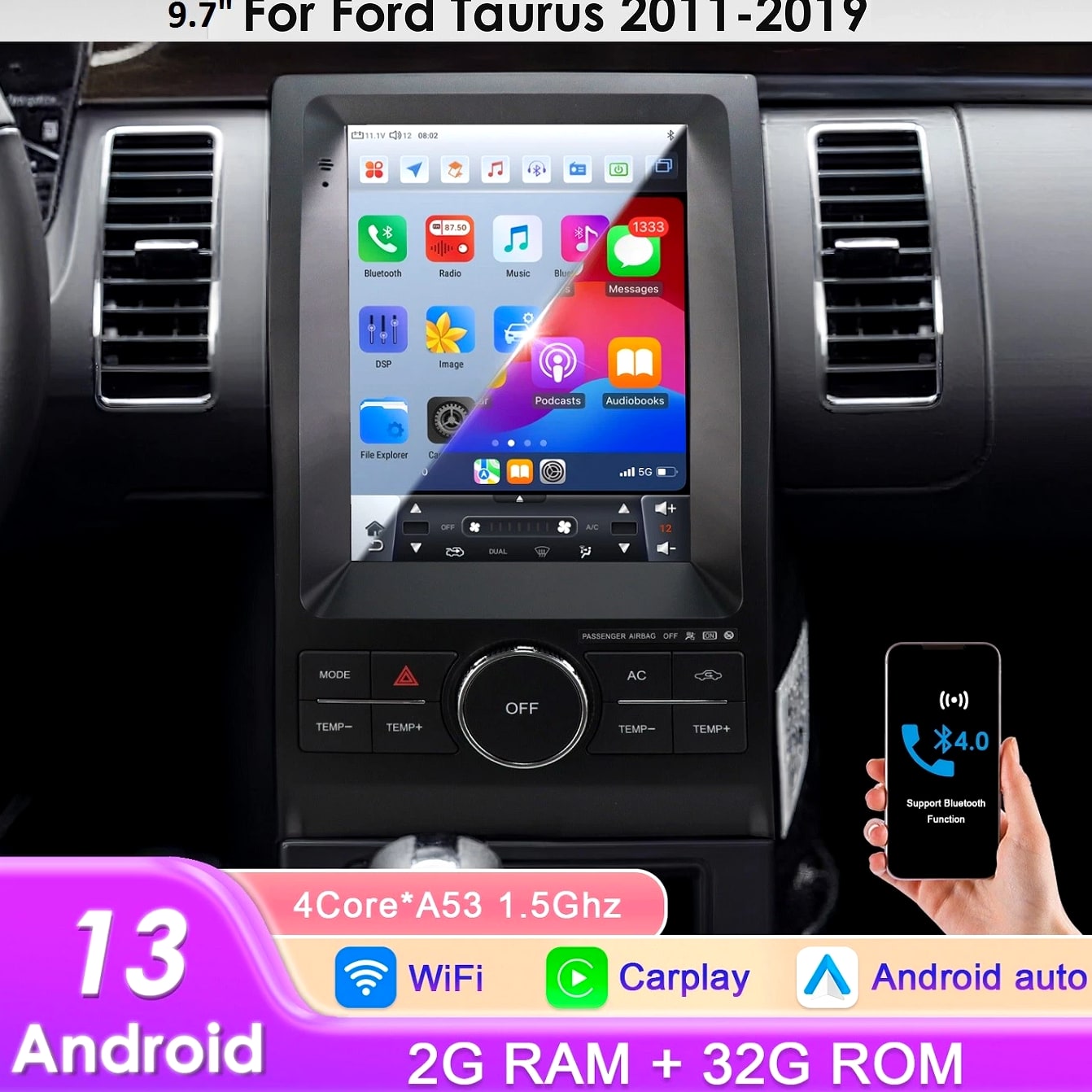 for Ford Taurus 2010-2018 Touch Screen 9.7" GPS WiFi BT CarPlay Radio Multimedia System