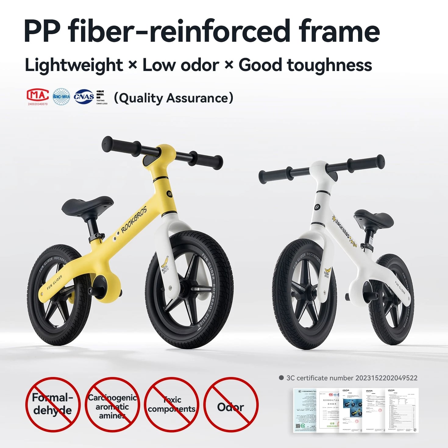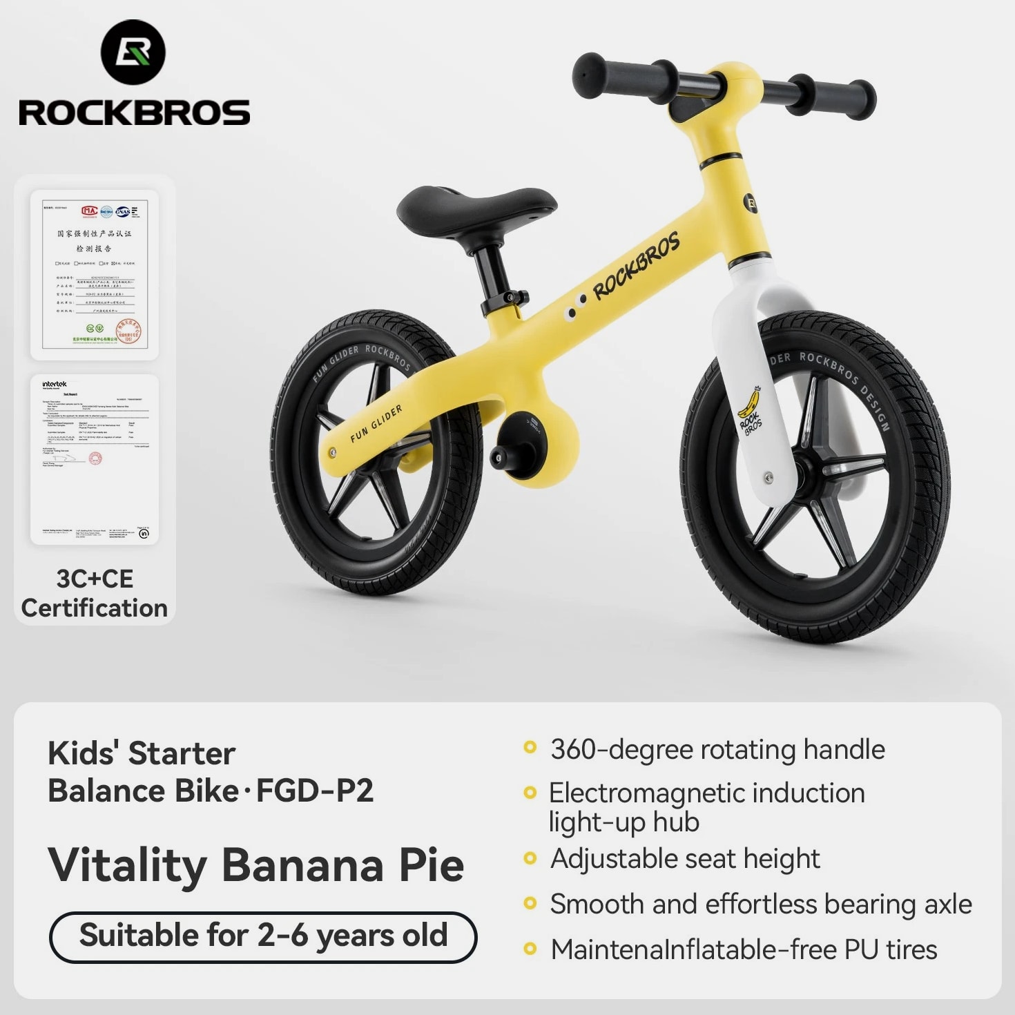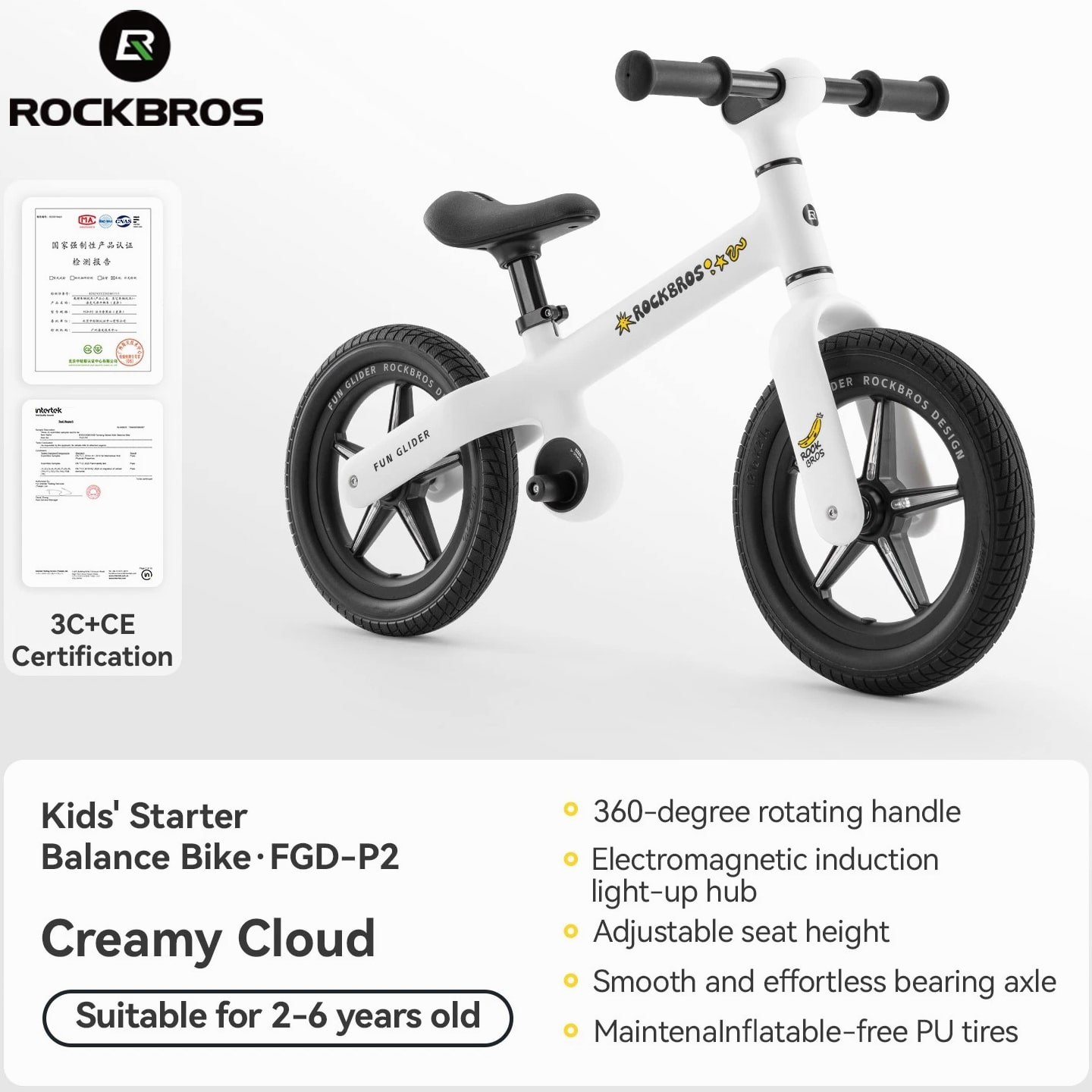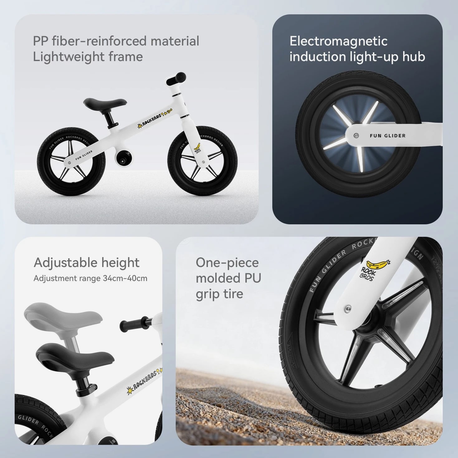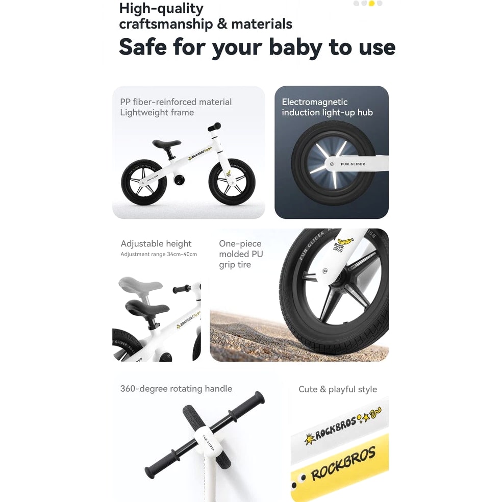 Product Features PP fiber-reinforced material; strong load-bearing and compression resistance Weighs only 3.2 KG; easy to handle Adjustable height; suitable for babies aged 2-6 years Free-turning handlebar Electromagnetic induction light-up hub