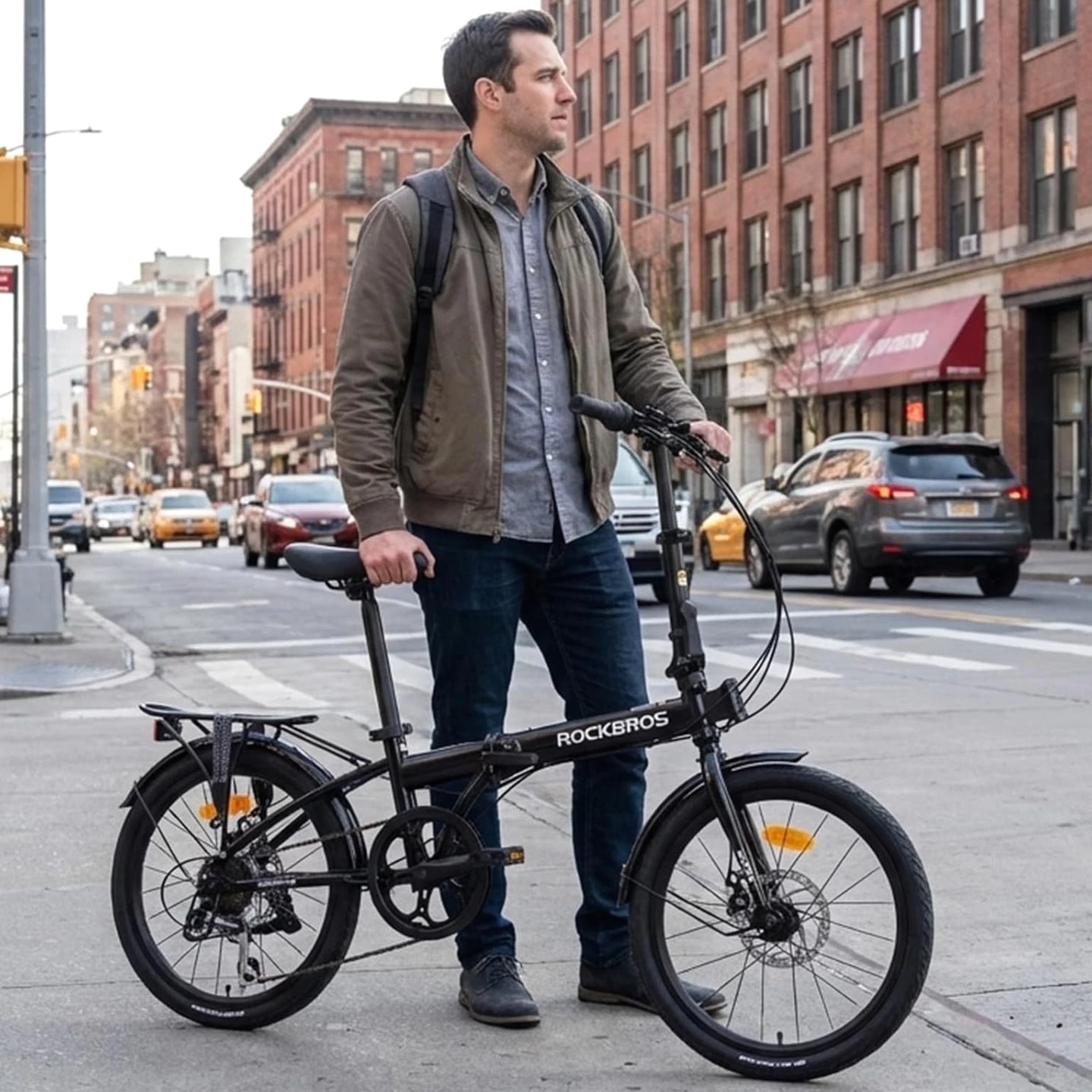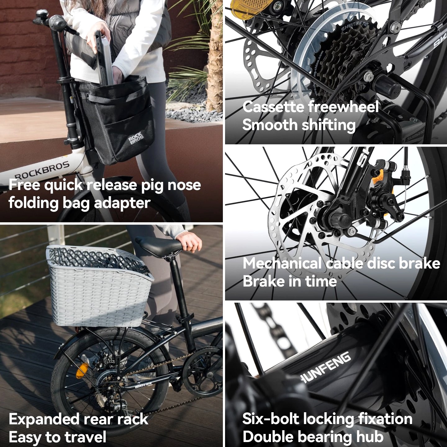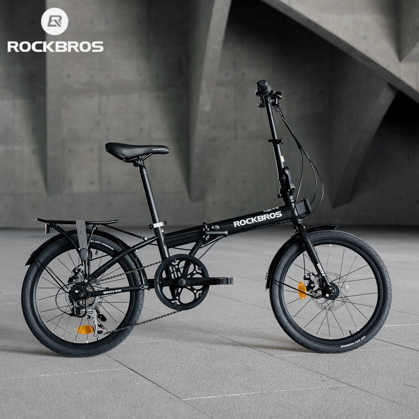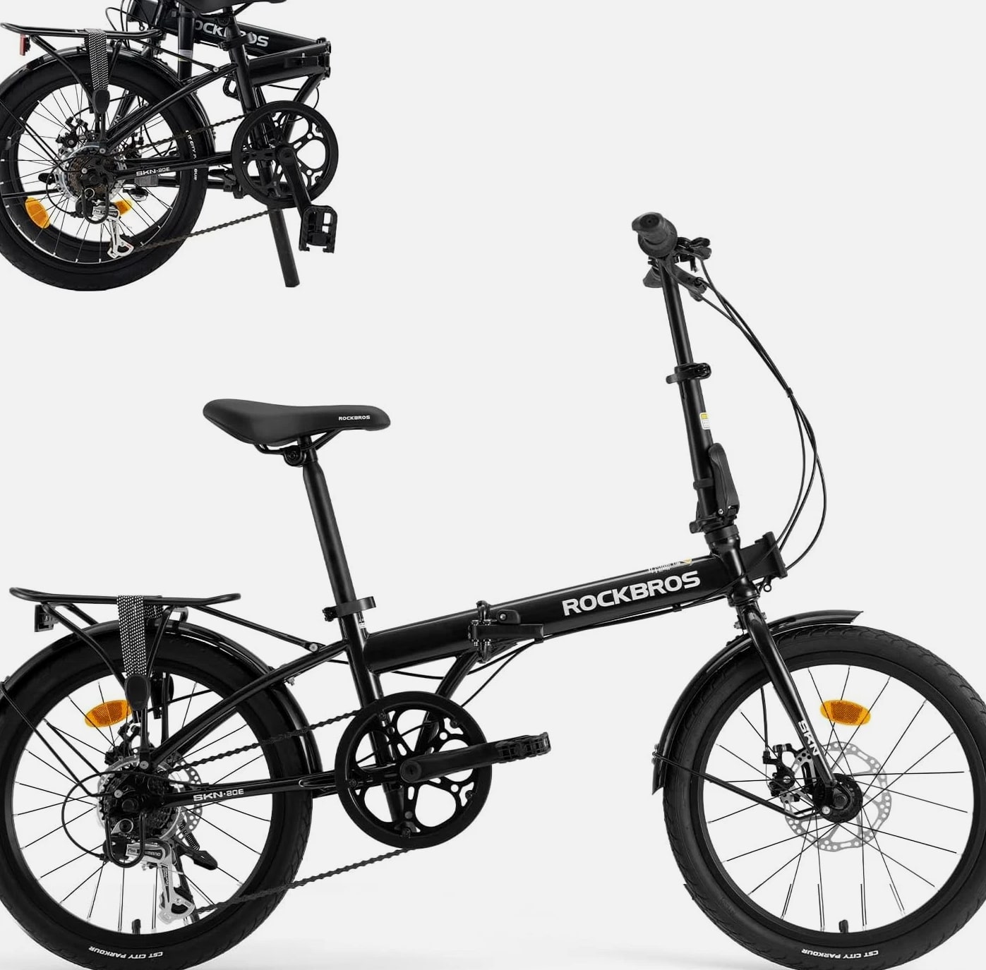 ROCKBROS SKN 20 Inch Folding City Bike Steel Frame Shimano 7 Speed Disc Brakes Black