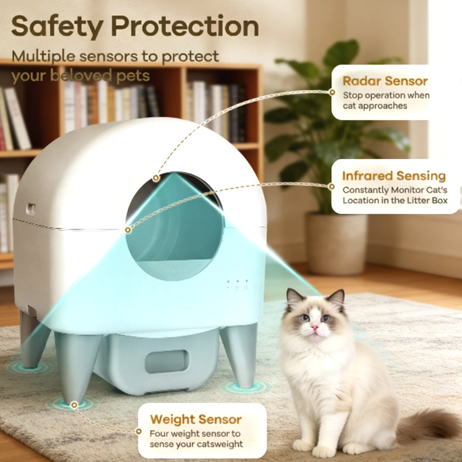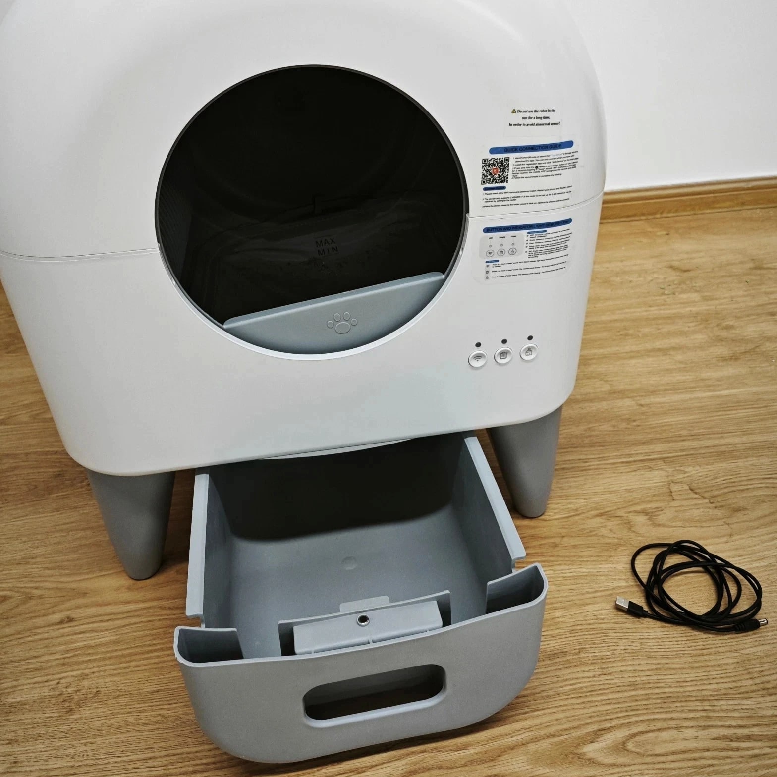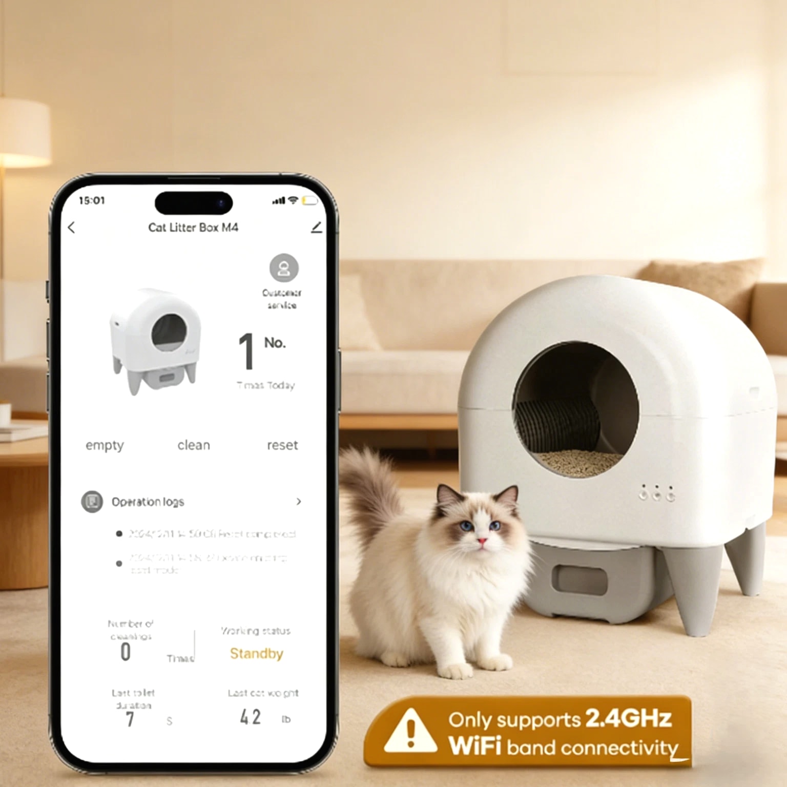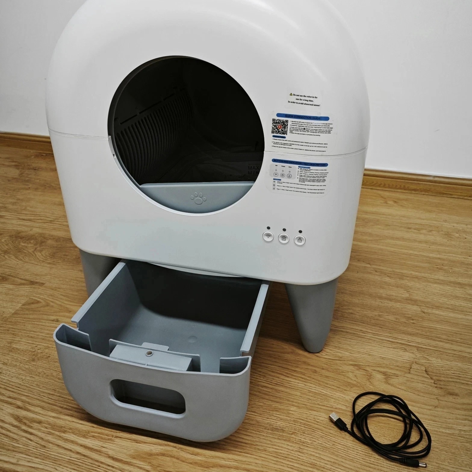 Please Note: It may show minor cosmetic imperfections consistent with previous use, such as light scratches or scuffs. If you prefer a brand new item in perfect cosmetic condition, we advise against purchasing this refurbished unit. Our Commitment: Your satisfaction is important to us. If you have any questions or concerns upon receiving the item, please contact us first before leaving feedback. We are here to help and will work to resolve any issues promptly. Thank you for considering this eco-friendly option! Self Cleaning Litter Box, 95L Automatic Cat Litter Box Self Cleaning Large Capacity for Multiple Cats, App-Controlled with Safety Sensors, Removable Washable Liner, 2 Rolls Garbage Bags About this item Advanced Safety Protection: Infrared motion sensors pause cleaning immediately upon detecting your cat's presence; enhanced safety design prioritizes pet security even during remote monitoring High-Capacity Efficiency: 95L litter drum accommodates multiple cats; 15L sealed waste compartment supports extended use for busy households or travel; compatible with clumping and silica-based litters Smart App Integration: Control auto-cleaning cycles, schedule waste disposal, track litter usage via the app; real-time alerts for full bins and WiFi compatibility (2.4G network required) Leak-Proof & Reusable Design: Reinforced leak-proof edges and removable waste tray prevent spills; includes a washable liner for easy cleaning and repeated use, reducing waste and long-term costs Quiet Night Mode: Low-noise operation ensures minimal disruption; ideal for light sleepers and households with nocturnal pets How to Connect WiFi 1. First connection long press WiFi button for 3 seconds to discover WiFi, at the same time open the app to discover the device, you need to open the app's location and Bluetooth permission to search for the device 2. Enter the same WiFi name and password as the cellular connection, Note: the device only supports 2.4Ghz WiFi connection 3. Device is conn