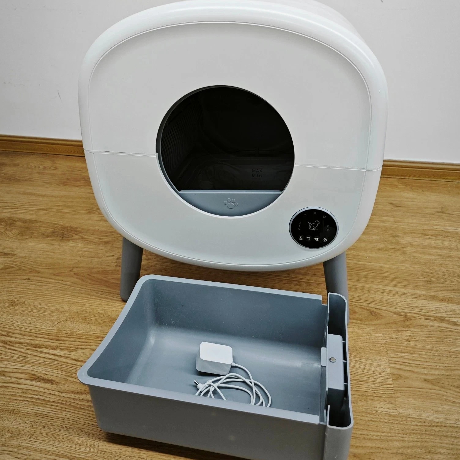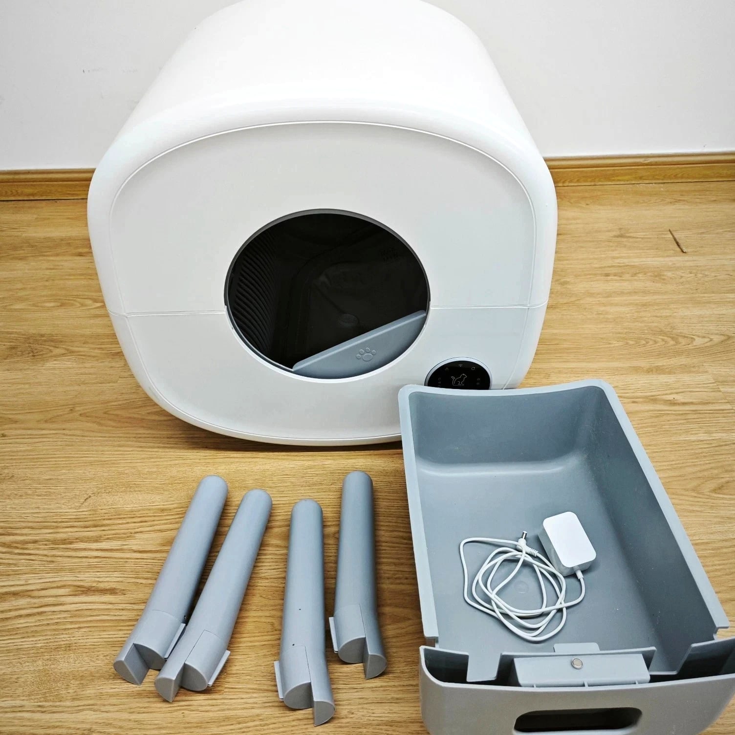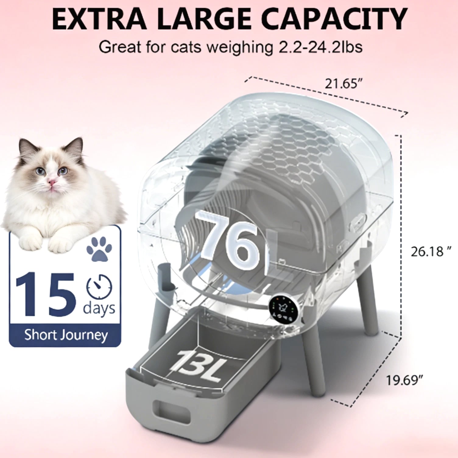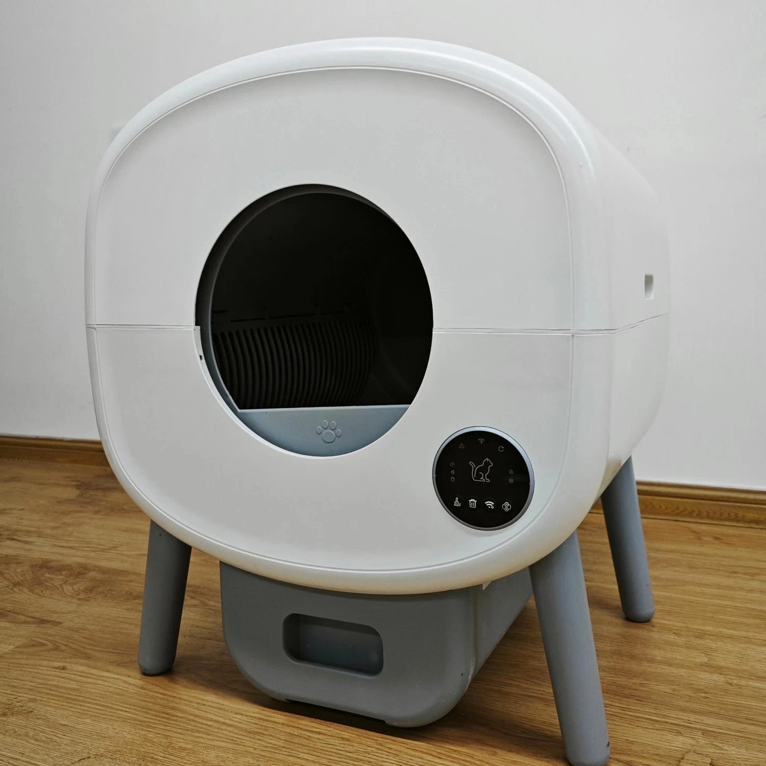 Please Note: It may show minor cosmetic imperfections consistent with previous use, such as light scratches or scuffs. If you prefer a brand new item in perfect cosmetic condition, we advise against purchasing this refurbished unit. Our Commitment: Your satisfaction is important to us. If you have any questions or concerns upon receiving the item, please contact us first before leaving feedback. We are here to help and will work to resolve any issues promptly. Thank you for considering this eco-friendly option! Self Cleaning Litter Box, Large Capacity Automatic Cat Litter Box Self Cleaning for Cats, App Control, Safety Protection, 2 Roll Garbage Bags, White & Grey About this item Cat Safety Priority: self cleaning cat litter box uses advanced sensors to detect your cat's presence, pausing cleaning cycles for their safety. This ensures your feline friend remains secure and undisturbed, giving you peace of mind Large Drum Capacity: The automatic cat litter box features a 95L roller capacity for cats 2.2 to 33 lbs. Its 15L waste bin lasts up to 15 days, making it ideal for long trips, and is compatible with clump litter types for single or multiple cats Quieter Operation: our automatic litter box maintains a peaceful environment in your home, day and night. Its whisper-quiet performance allows both you and your cat to enjoy undisturbed rest, even during those late night visits Effortless Cleanup, Odor Control: Our cat litter box is engineered for simple and quick cleaning. Featuring a deodorizing design that prevents any leakage and odor, it ensures your living space remains pristine and fresh Smart APP: Manage your cat's hygiene remotely with the Tuya Smart APP. Enjoy automatic cleaning, one-touch waste disposal, litter changes, and health tracking. Get alerts for full litter boxes and irregularities. Compatible with 2.4G WiFi only